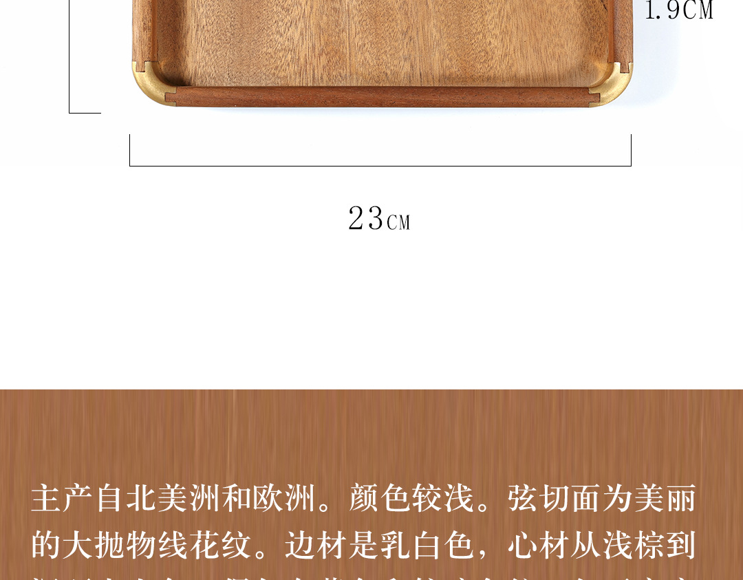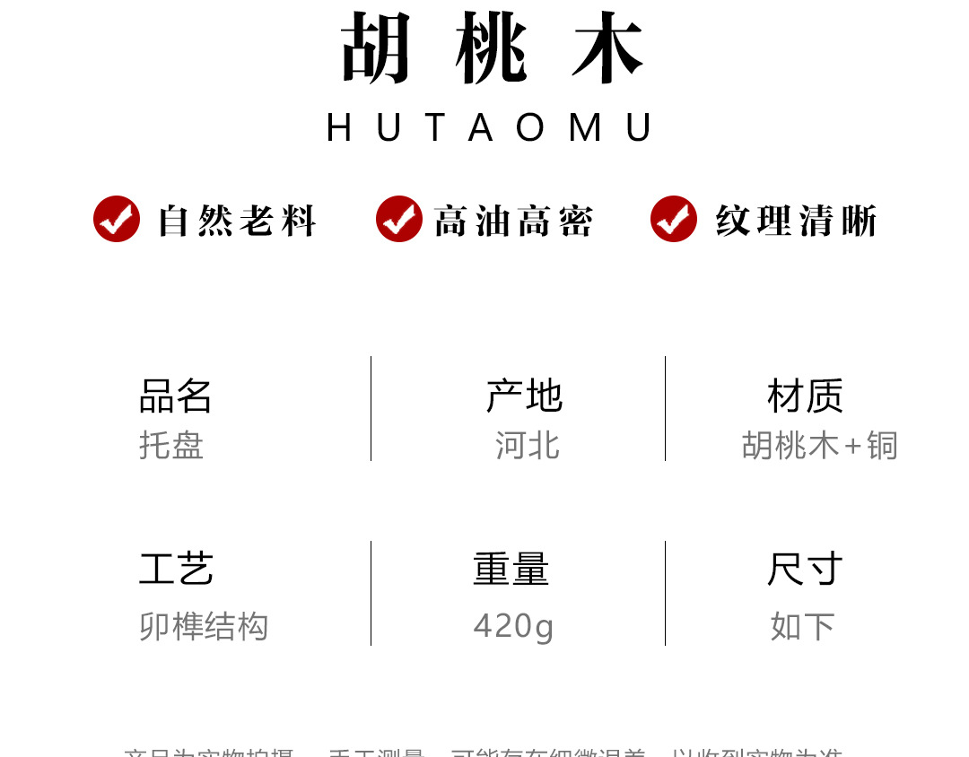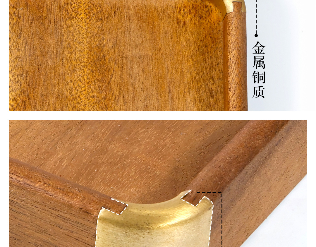 호두 트레이, 절묘한 가정용 간단한 찻잔, 구리 코너 보관함, 단단한 나무, 페인트가 없는 중국 과자 데스크탑 티 트레이