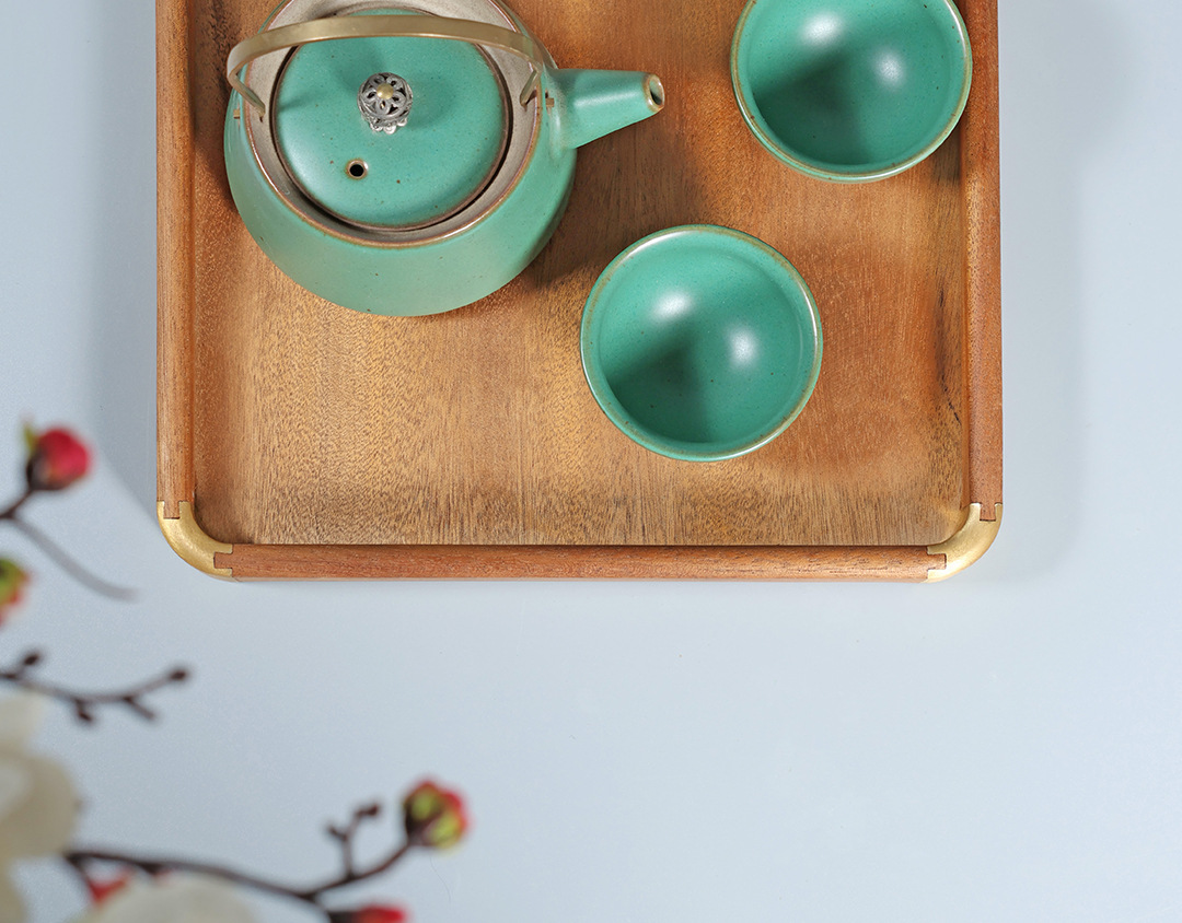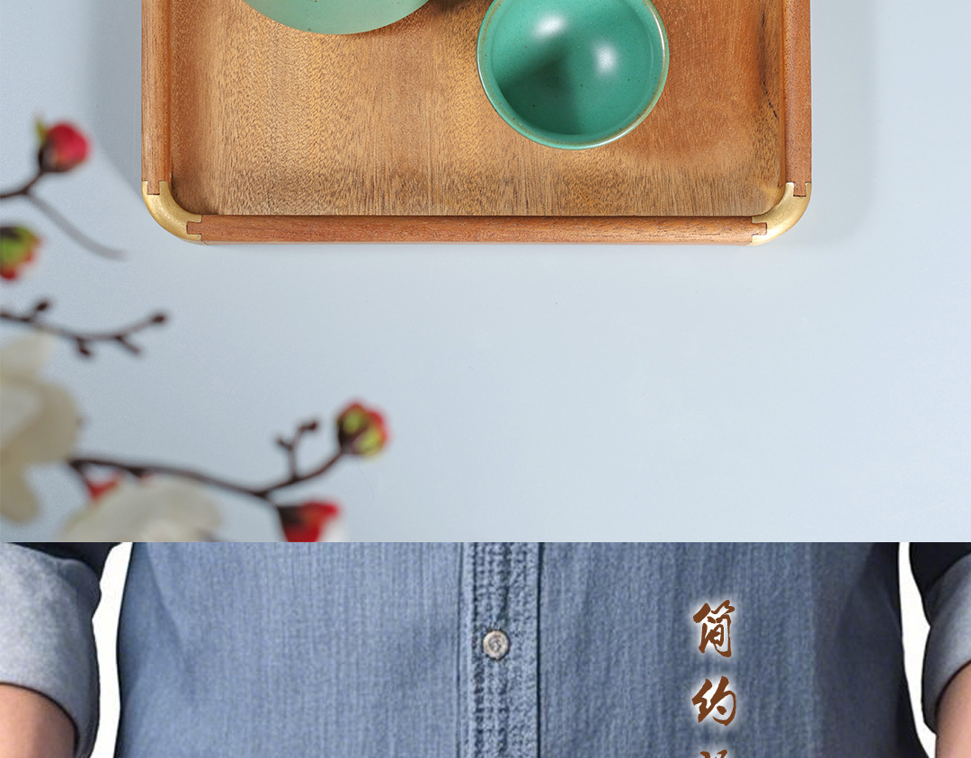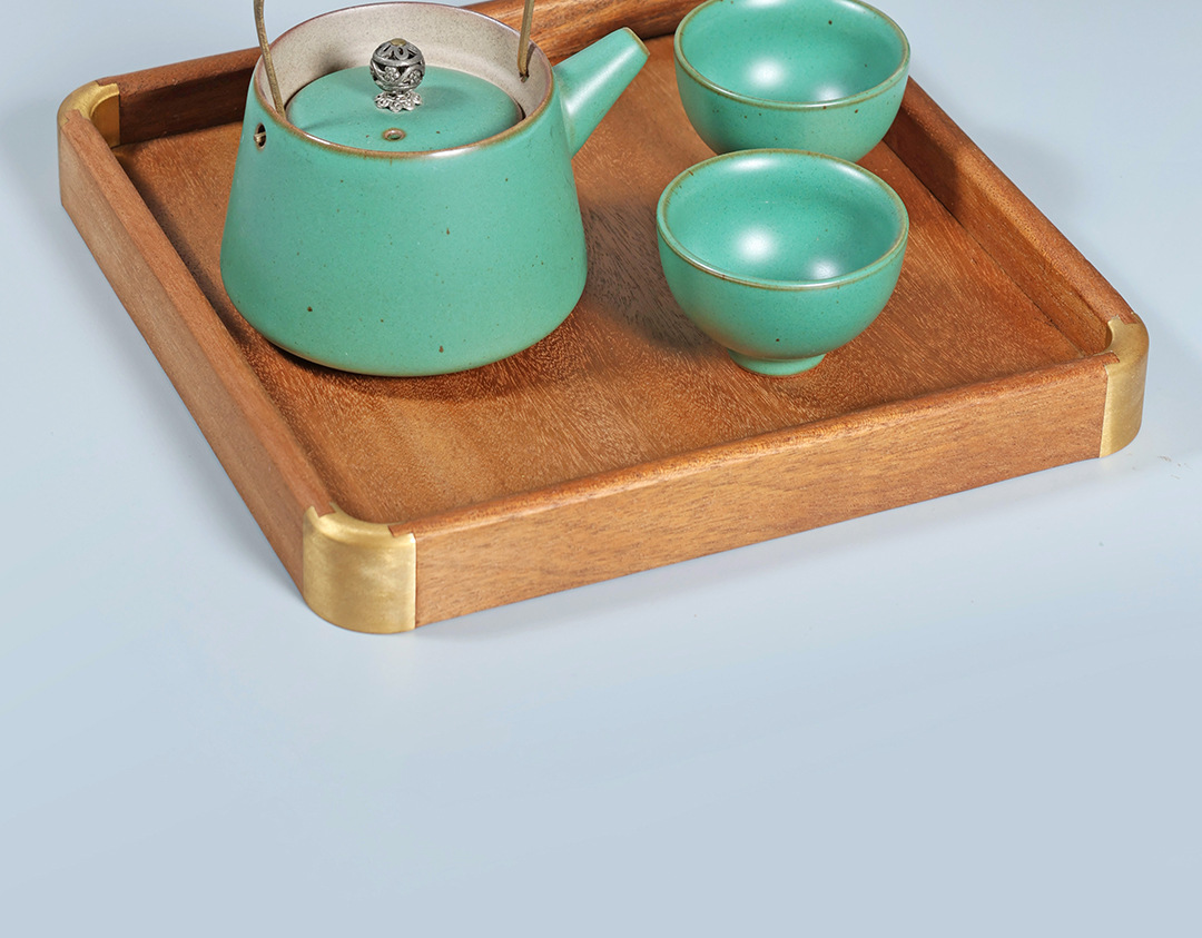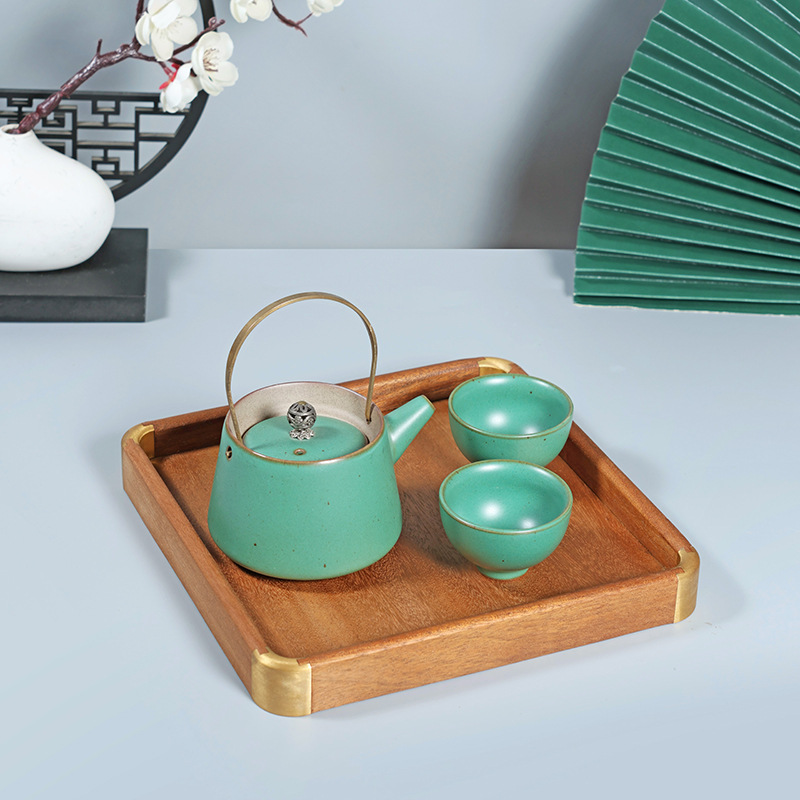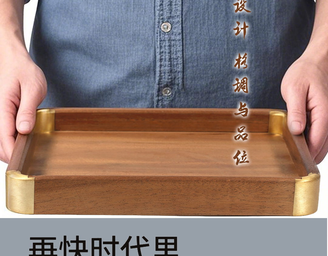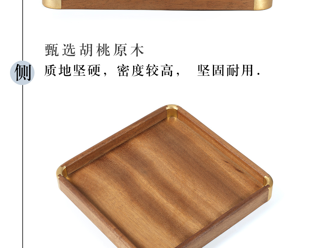 호두 트레이, 절묘한 가정용 간단한 찻잔, 구리 코너 보관함, 단단한 나무, 페인트가 없는 중국 과자 데스크탑 티 트레이스토어 가기
