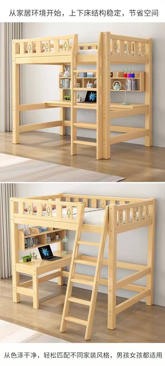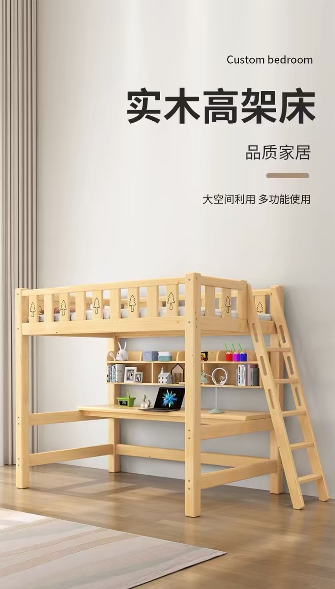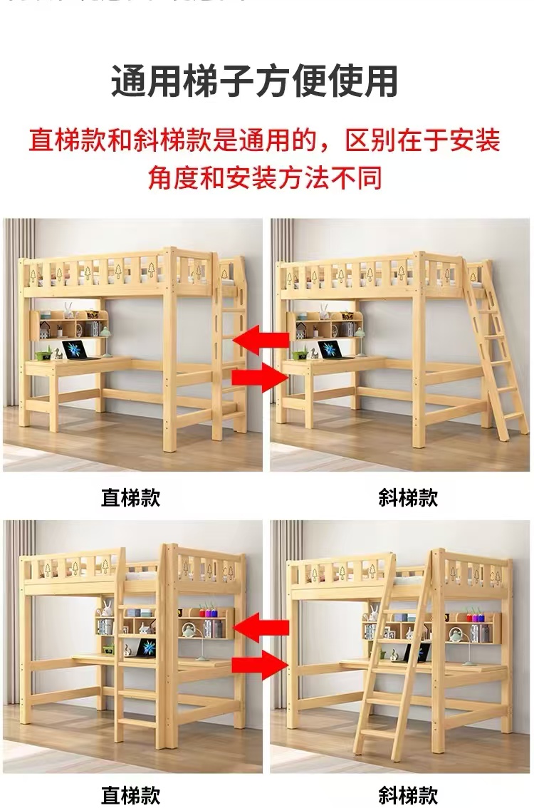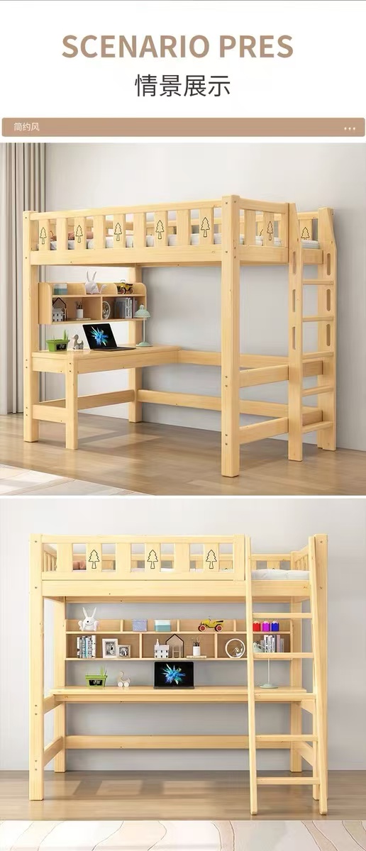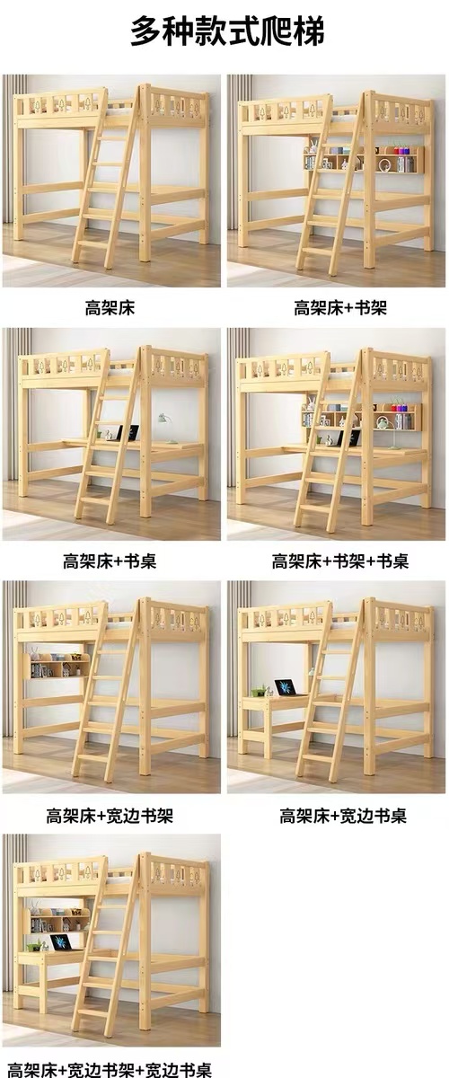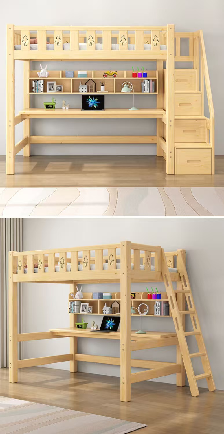 성인용 원목 로프트 침대, 어린이용 싱글 상단 침대, 책상이 있는 하이 로우 침대, 기숙사 다기능 조합 침대, 침대 아래 테이블스토어 가기