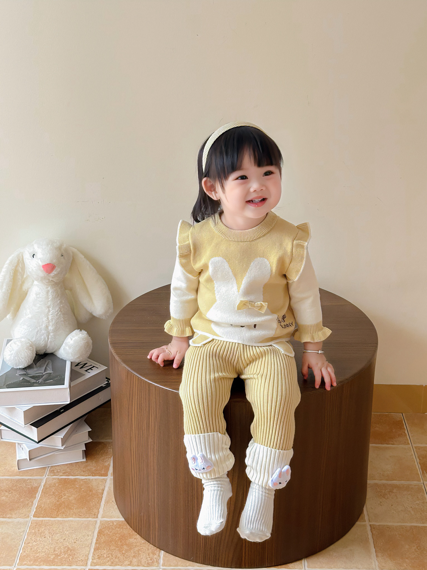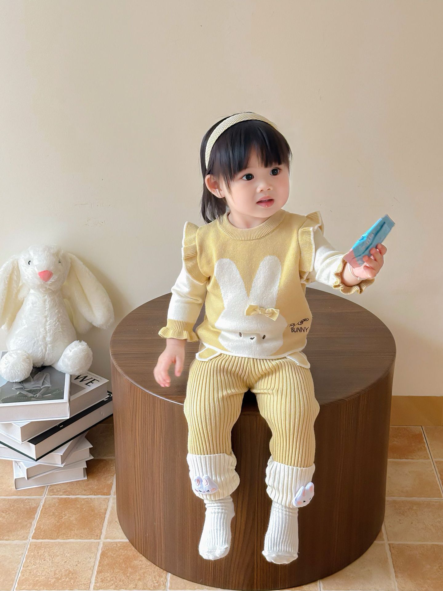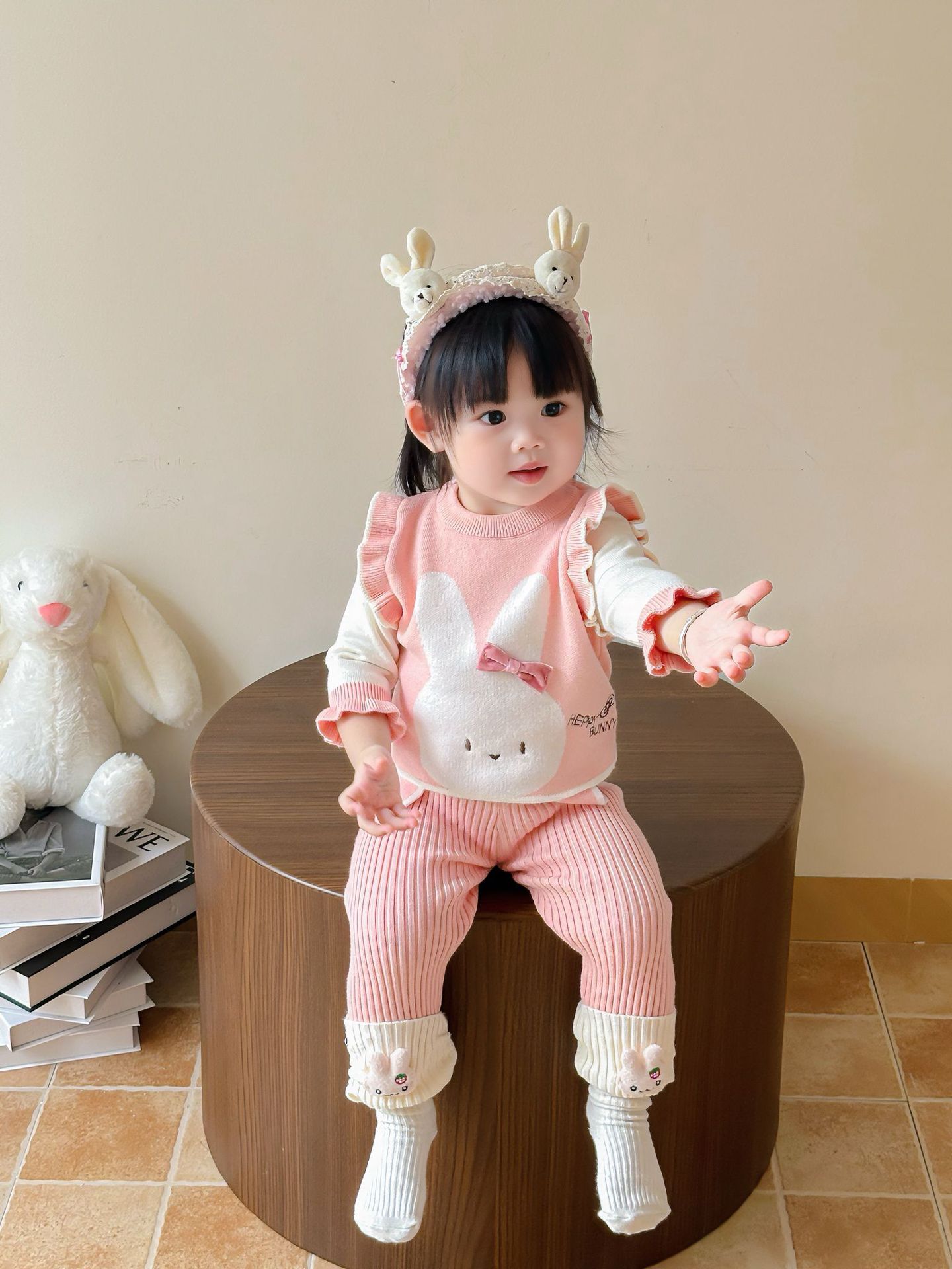 가을 아기 스웨터 정장, 귀여운 가짜 투피스 조끼, 니트 탑, 다용도 모직 바지, 가을 외출복스토어 가기