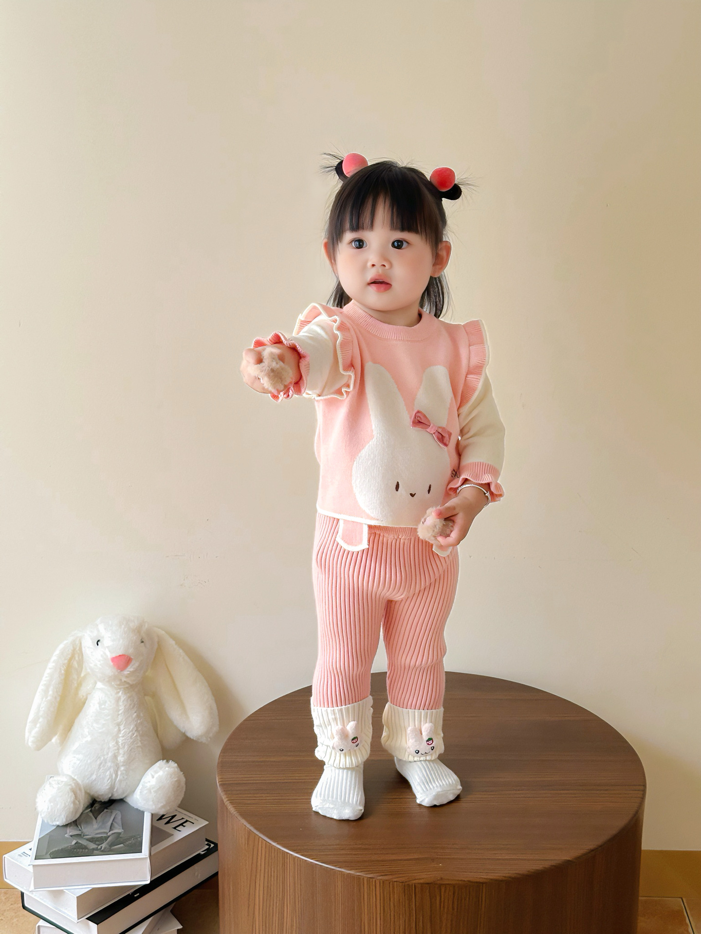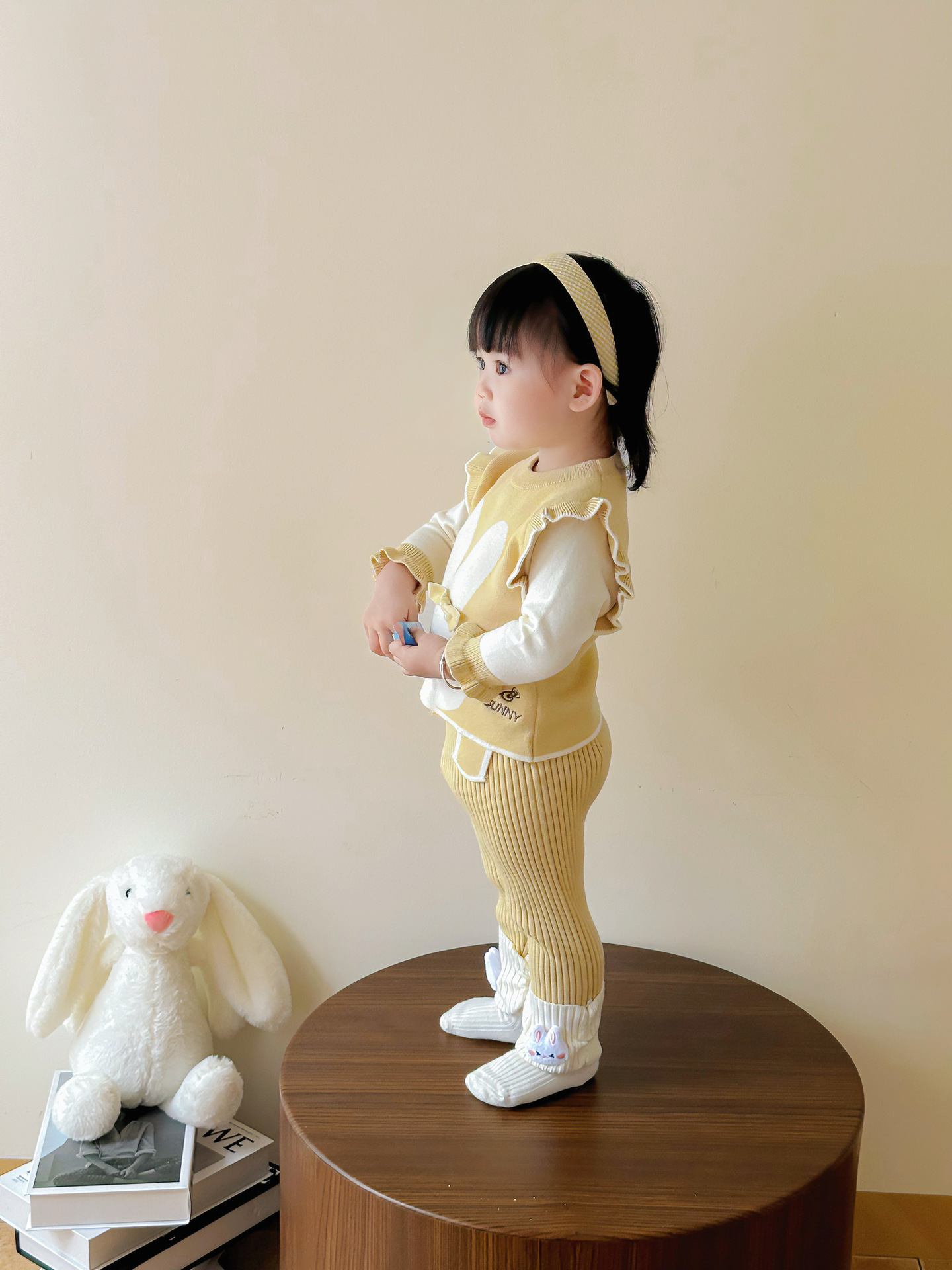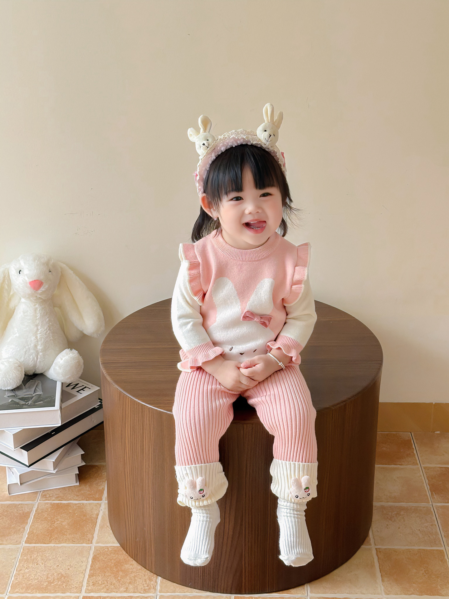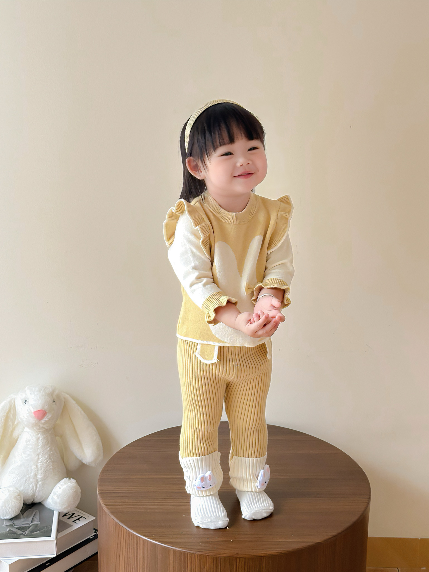 가을 아기 스웨터 정장, 귀여운 가짜 투피스 조끼, 니트 탑, 다용도 모직 바지, 가을 외출복스토어 가기
