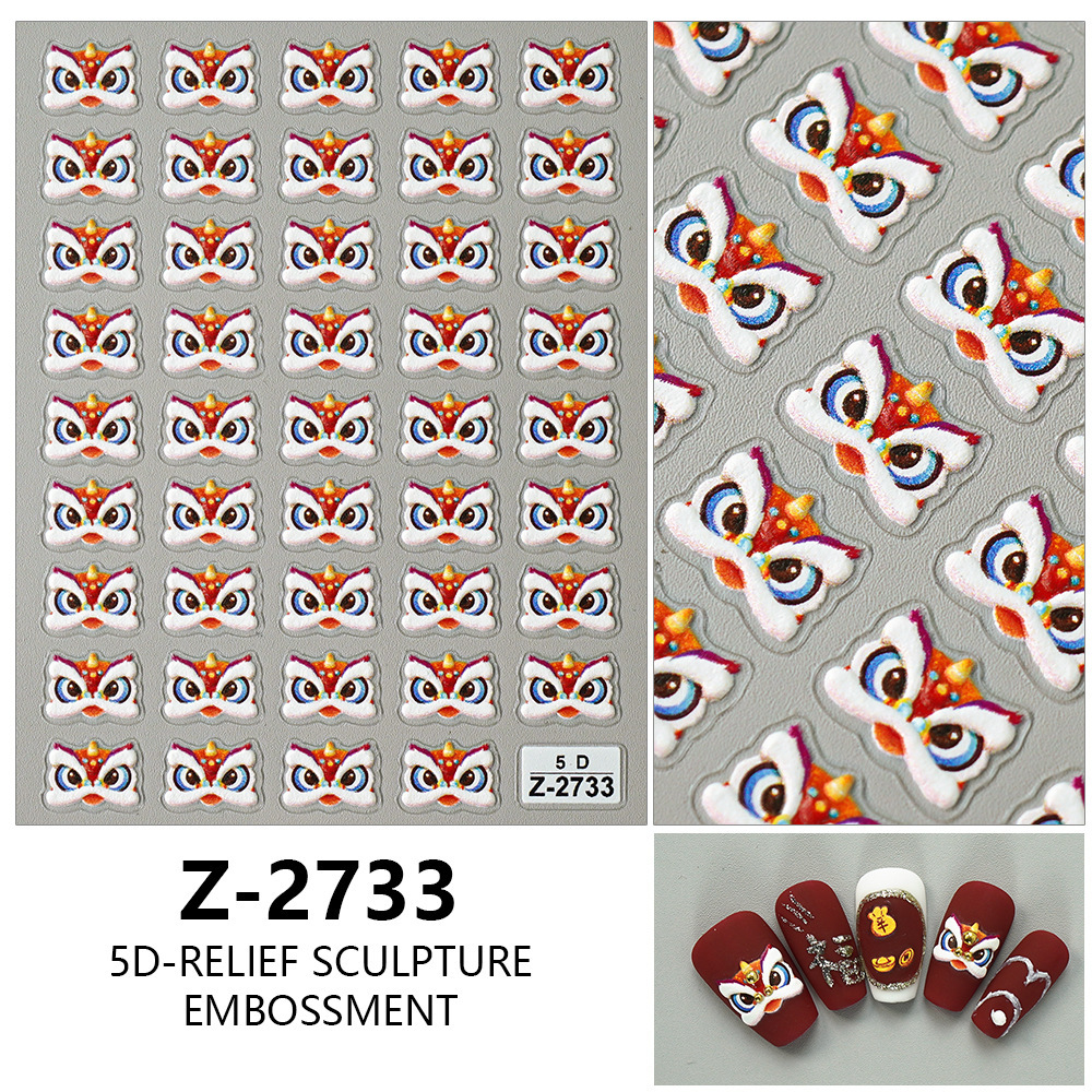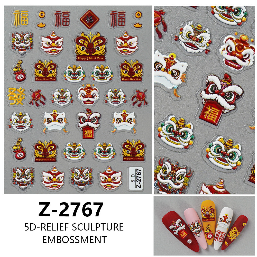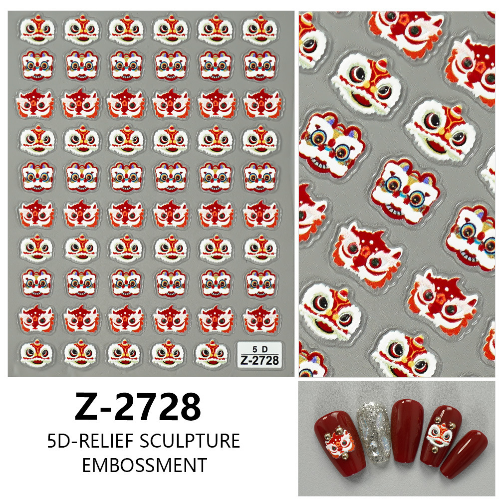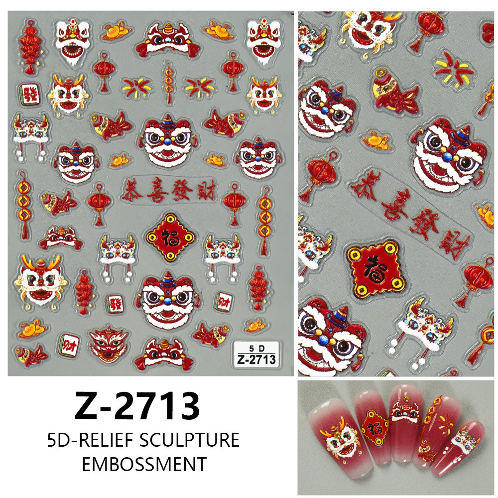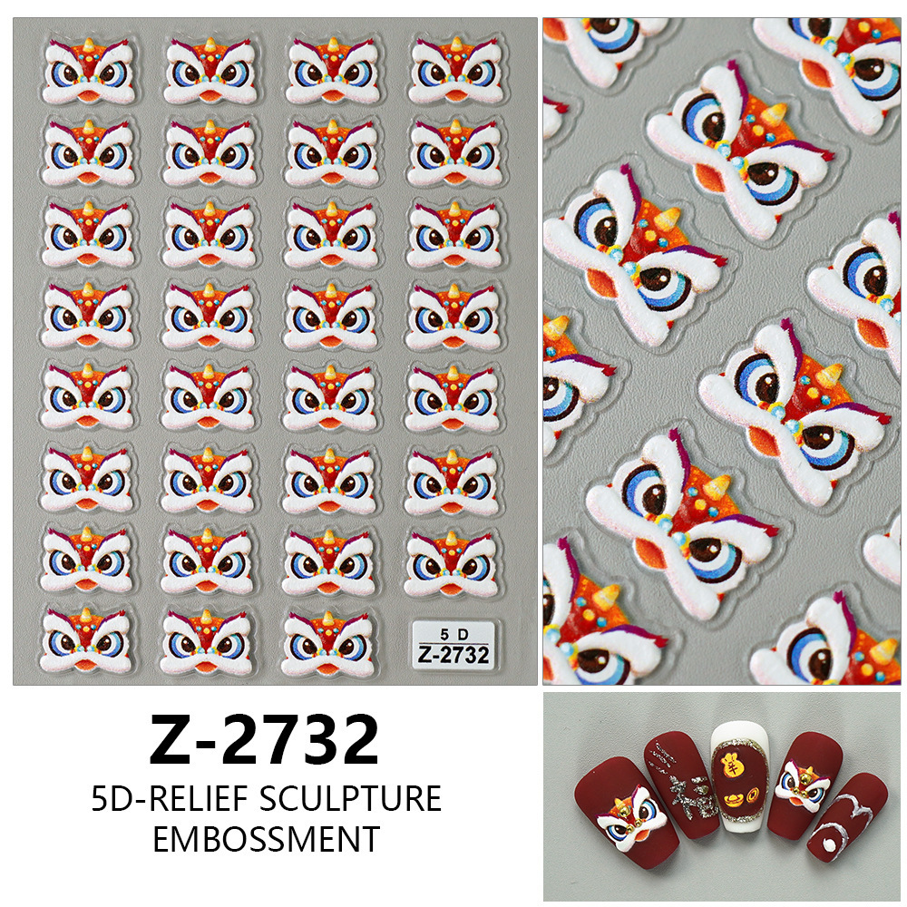 새로운 5D 양각 새해 행운의 사자 시리즈 네일 아트 스티커 3D 네일 데칼 Z-2728 만화스토어 가기