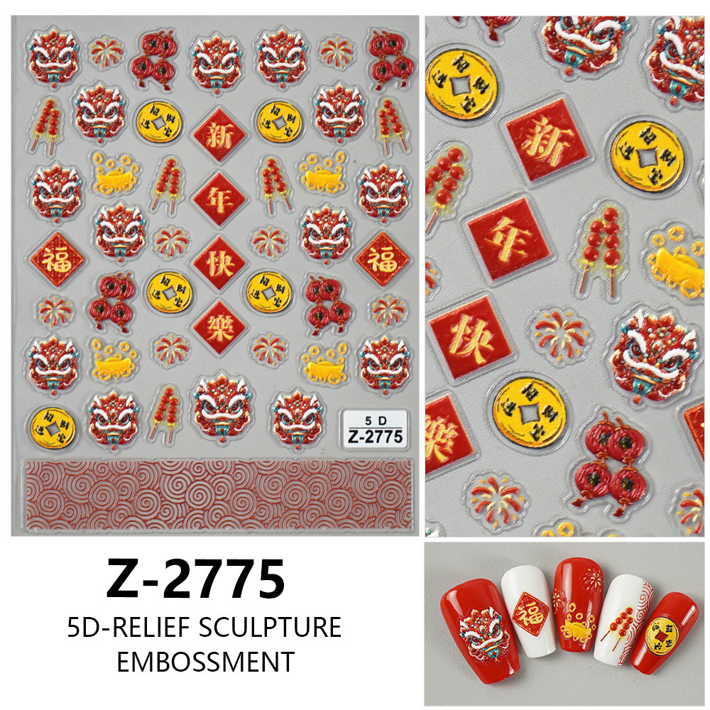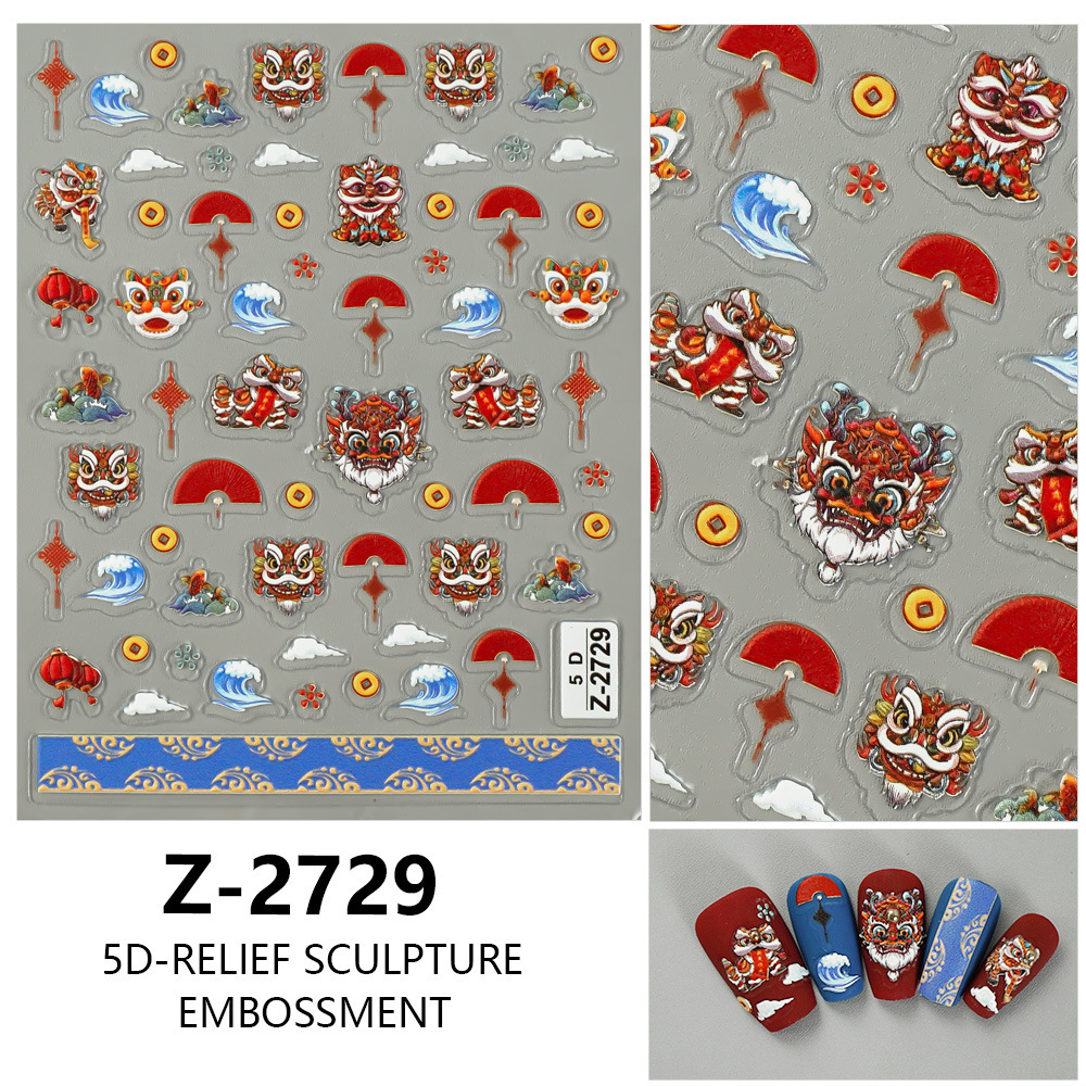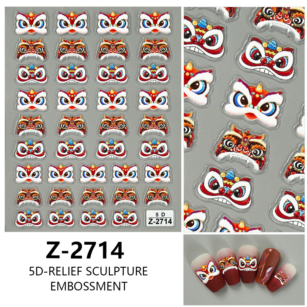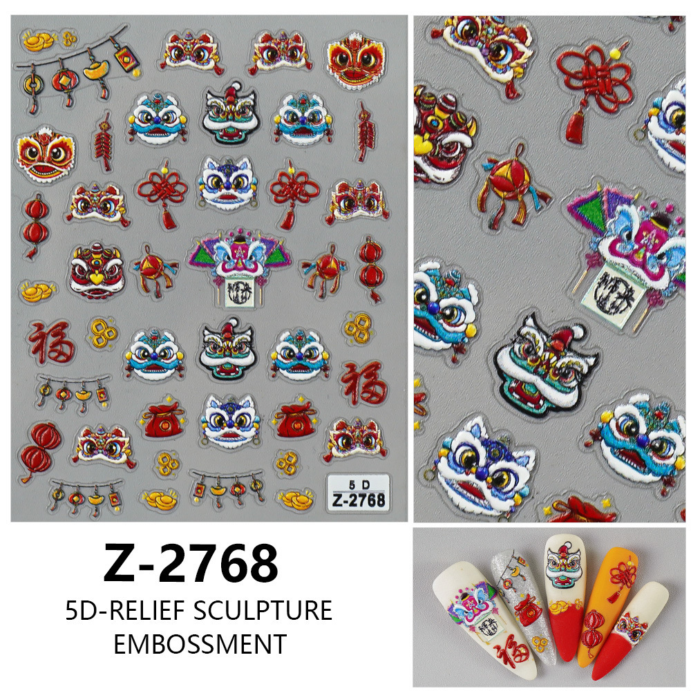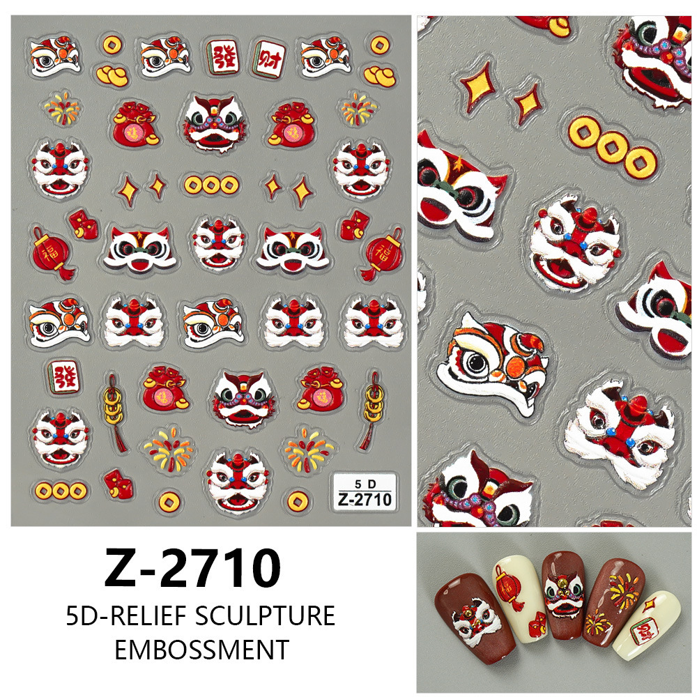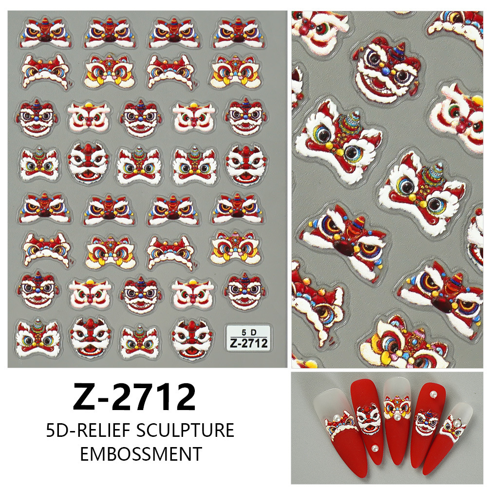 새로운 5D 양각 새해 행운의 사자 시리즈 네일 아트 스티커 3D 네일 데칼 Z-2728 만화스토어 가기