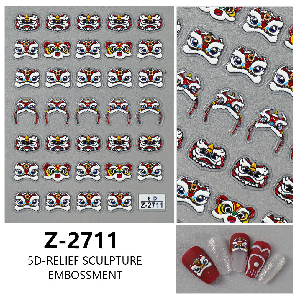 새로운 5D 양각 새해 행운의 사자 시리즈 네일 아트 스티커 3D 네일 데칼 Z-2728 만화