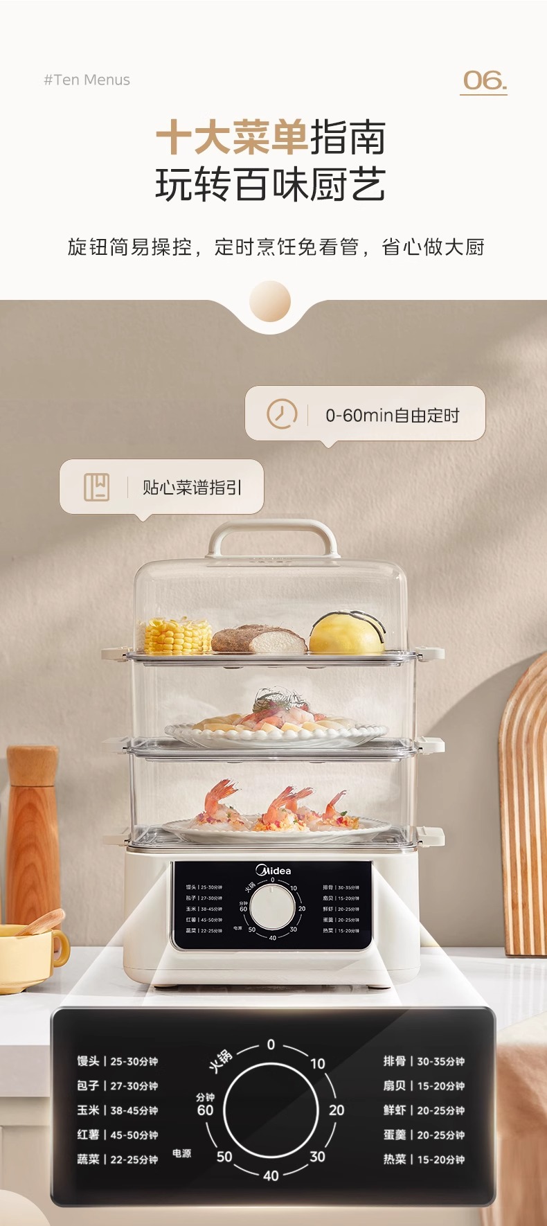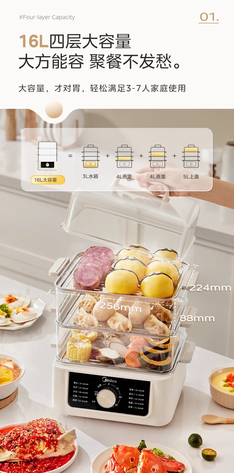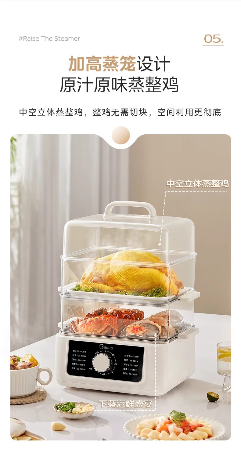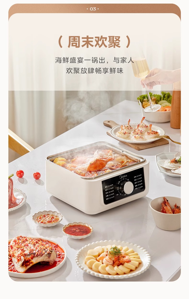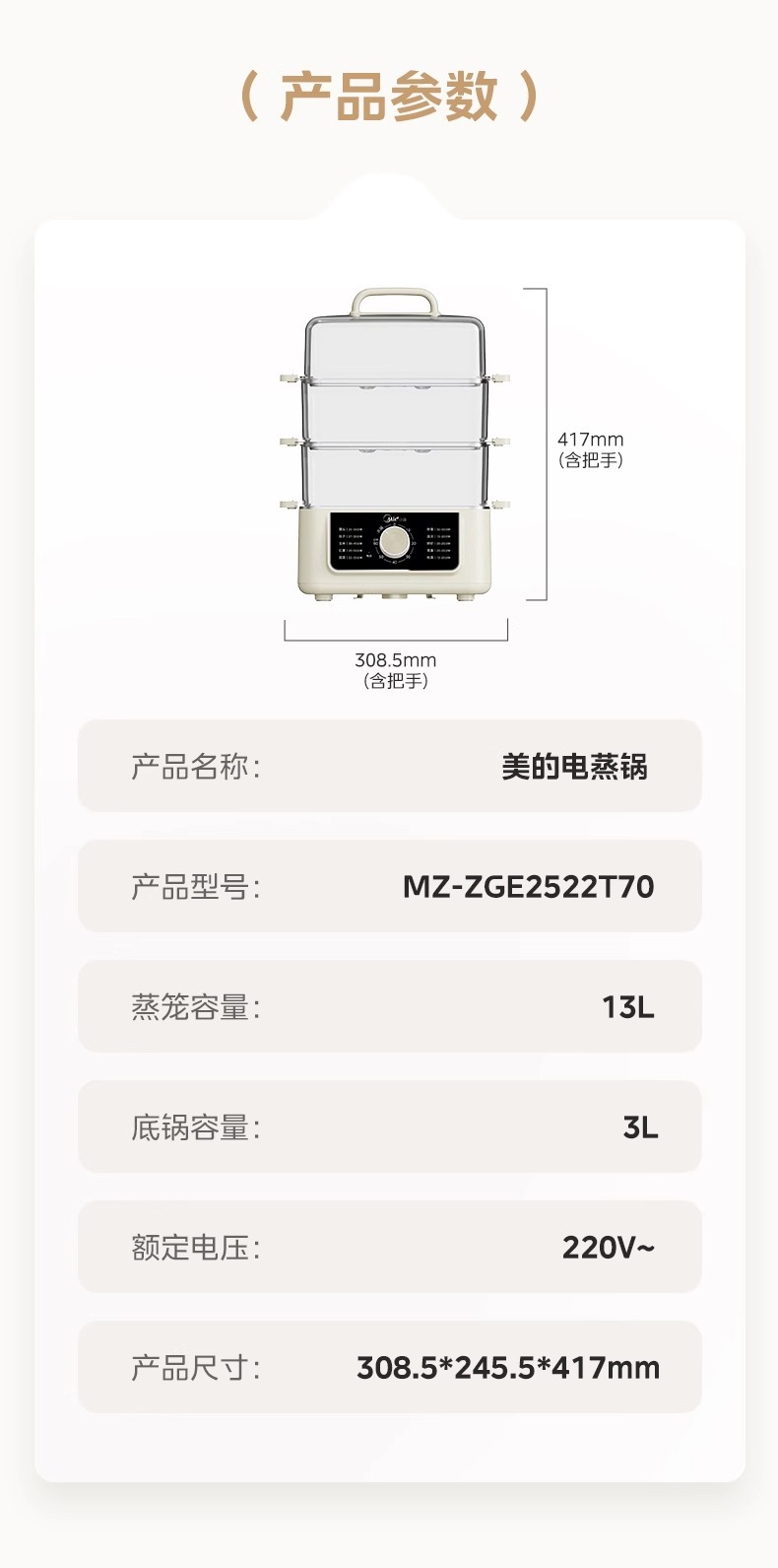 Midea 전기 찜통 다기능 스테인레스 스틸 가정용 3 층 대용량 지능형 찜 및 요리 올인원 냄비 ZGE2522T70