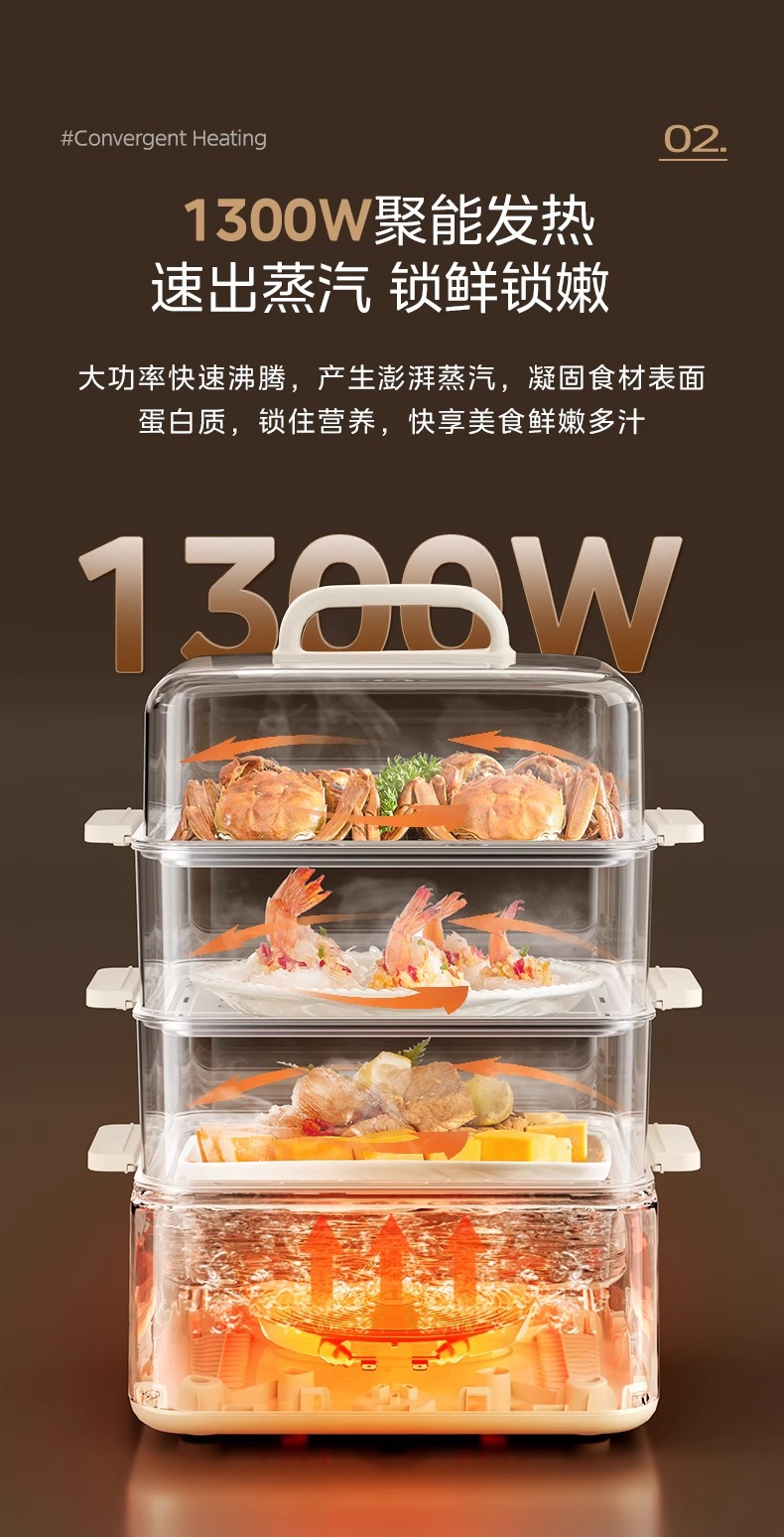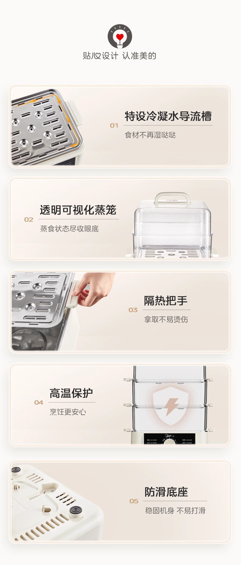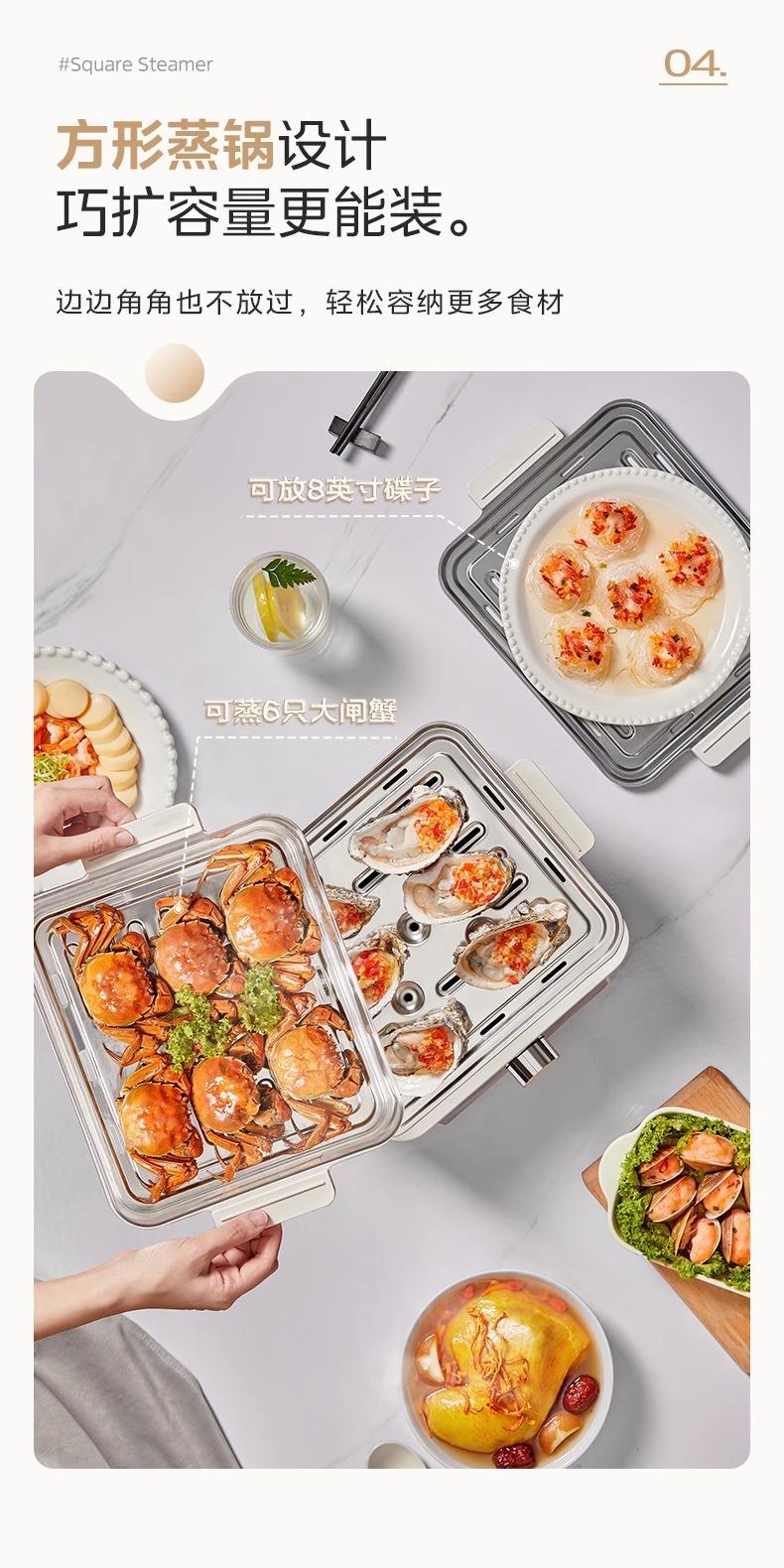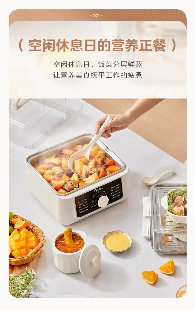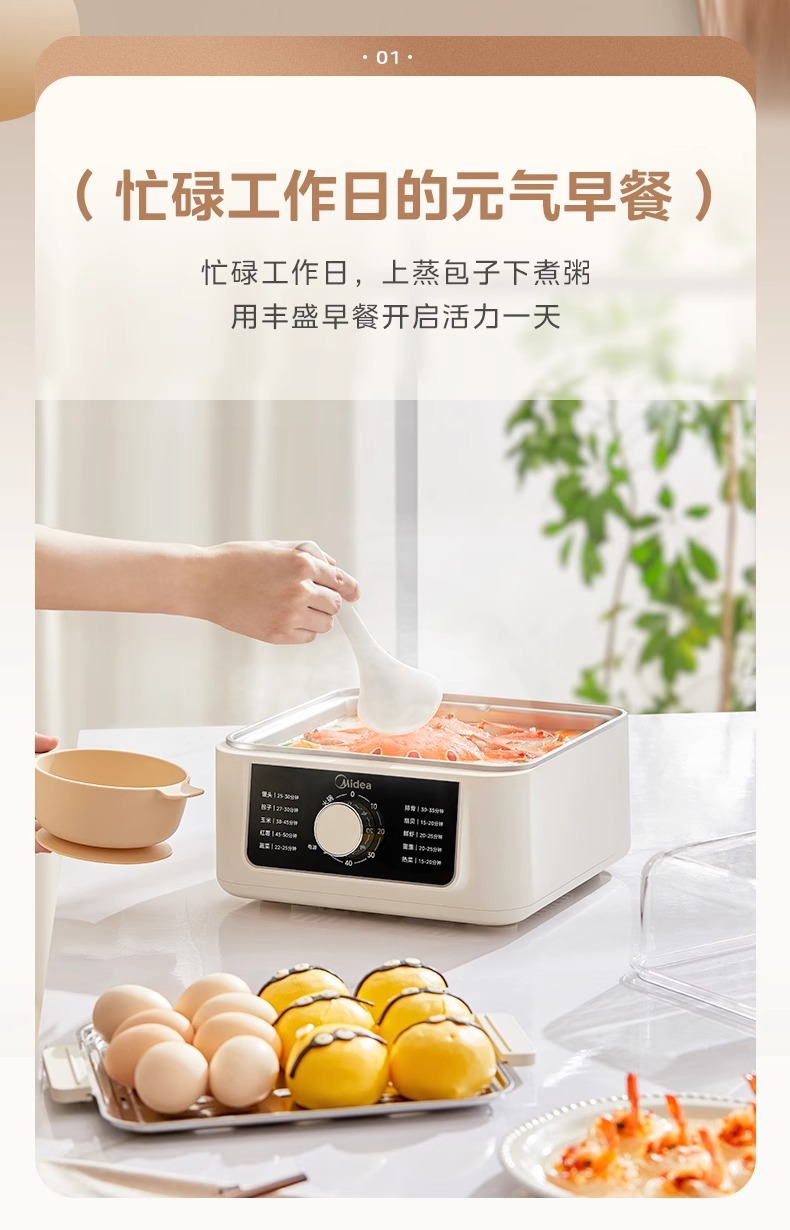 Midea 전기 찜통 다기능 스테인레스 스틸 가정용 3 층 대용량 지능형 찜 및 요리 올인원 냄비 ZGE2522T70