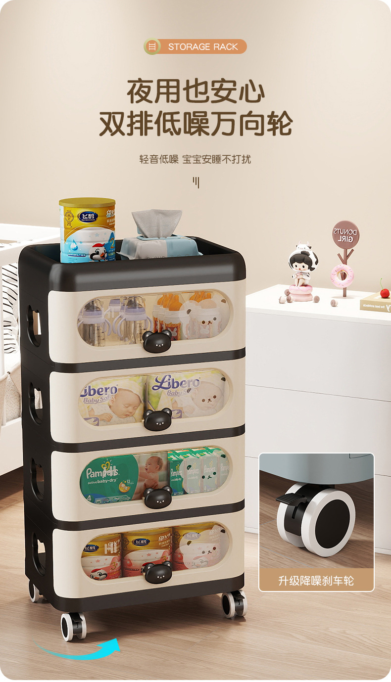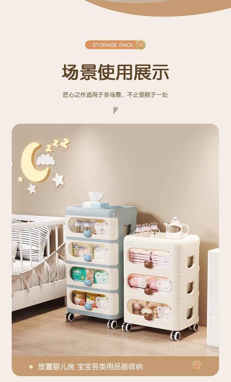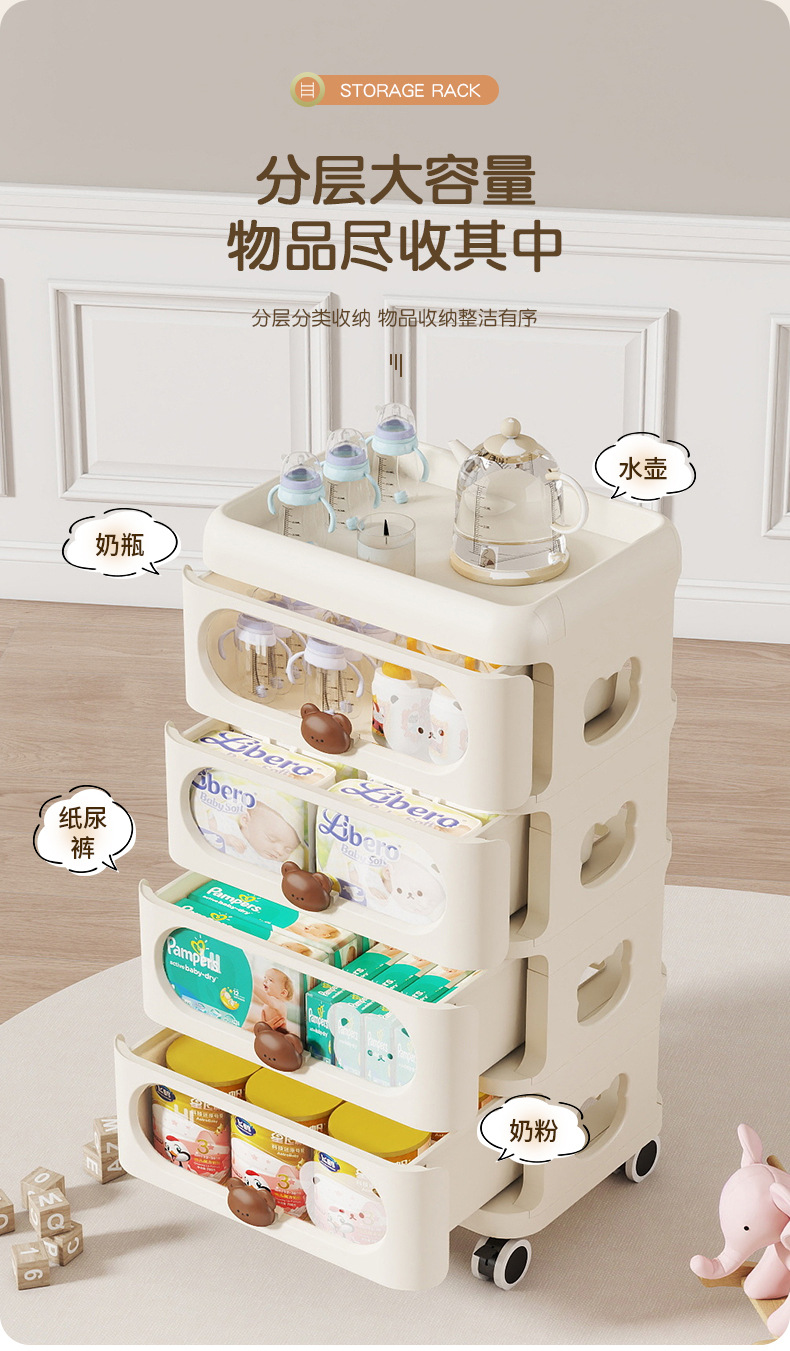 바퀴가 달린 수납 서랍장 거실 어린이 물건 간식 책 계층화 분류 및 정리 만화 수납 캐비닛 홈스토어 가기