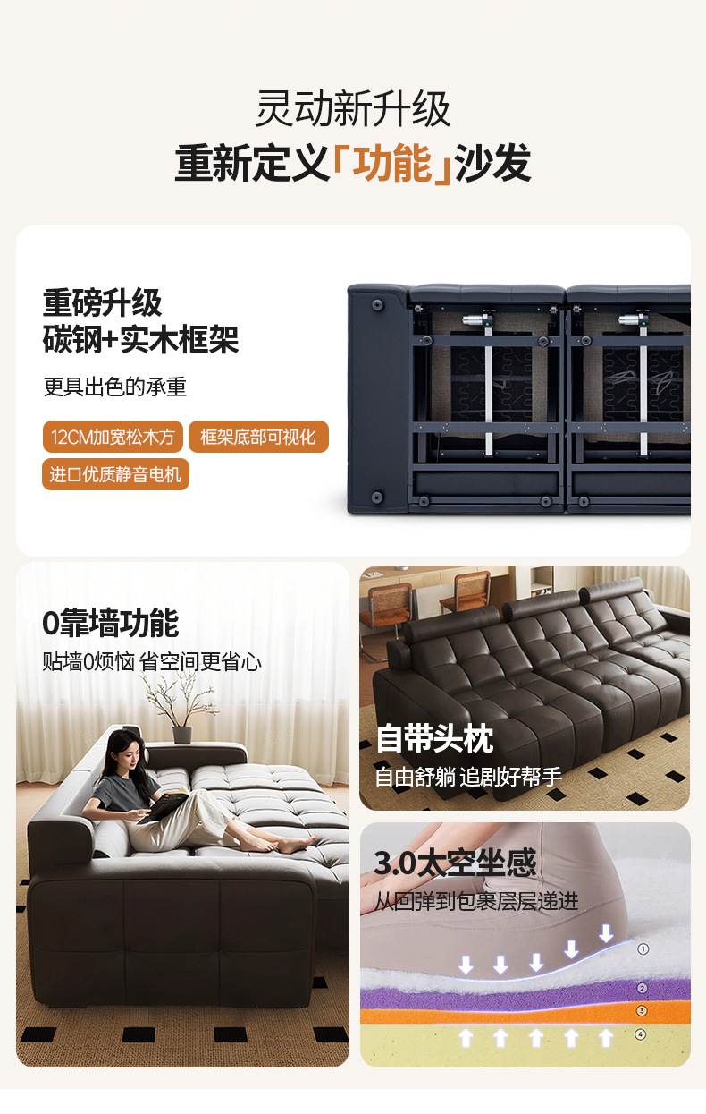 불산 소파 심플 전동 소파 거실용 이탈리아 스타일 미니멀리스트 3인용 기능성 소파베드 일체형스토어 가기