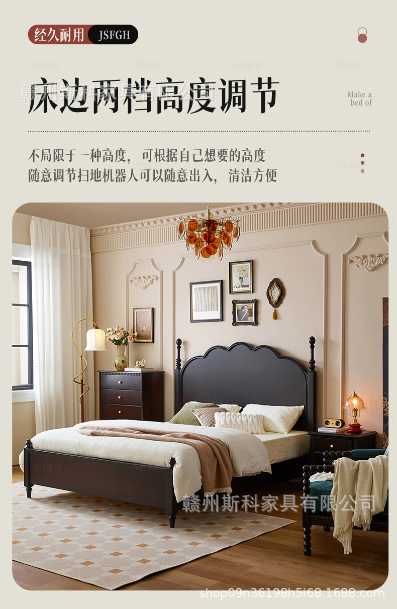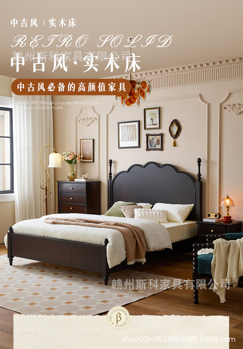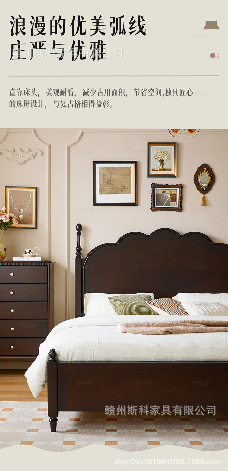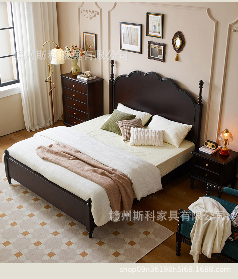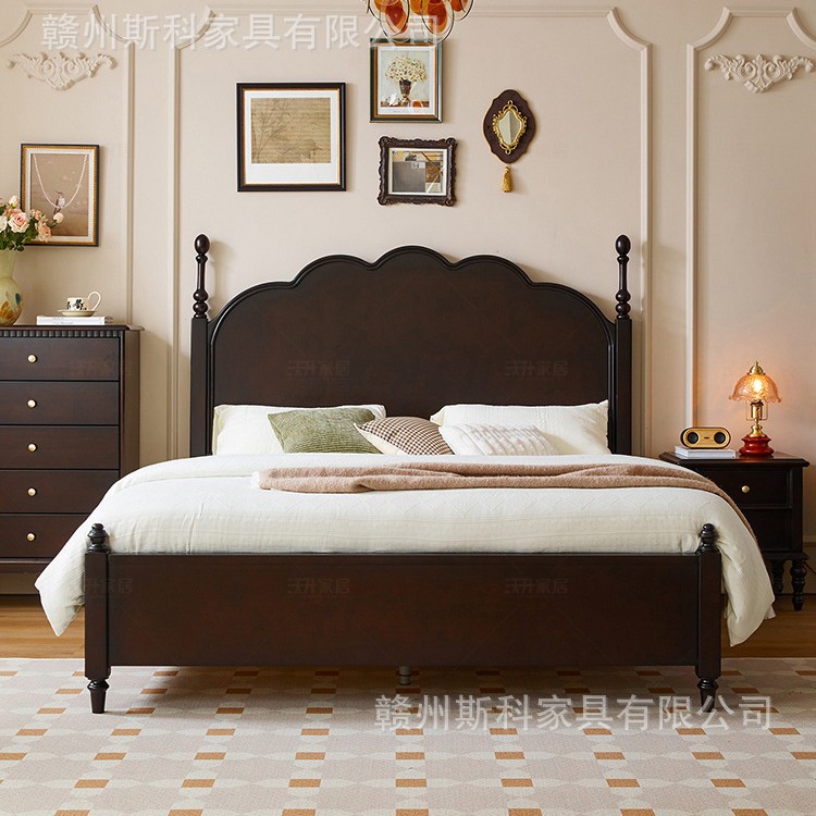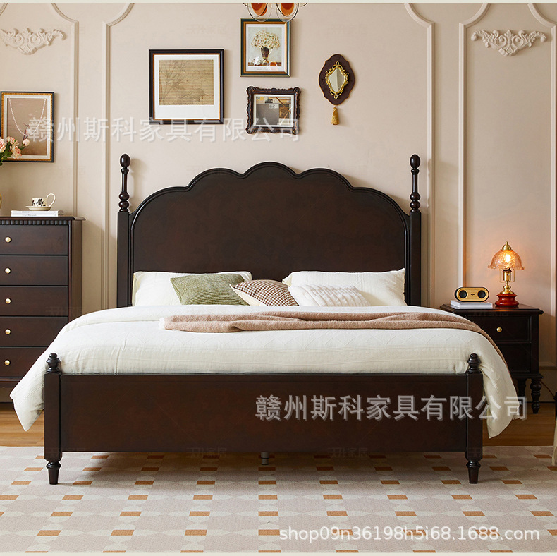 프랑스 복고풍 단단한 나무 침대, 고대 스타일의 마스터 침실, 미국식 더블 침대, 침실, 가벼운 럭셔리 대형 침대