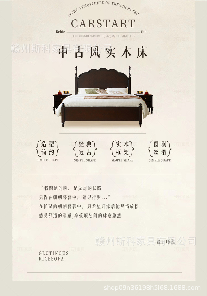 프랑스 복고풍 단단한 나무 침대, 고대 스타일의 마스터 침실, 미국식 더블 침대, 침실, 가벼운 럭셔리 대형 침대스토어 가기