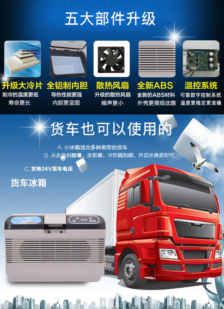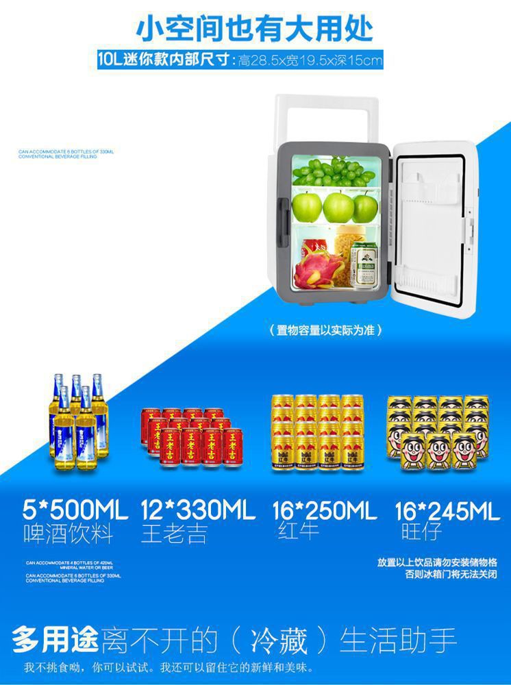 자동차 냉장고, 자동차 및 가정용 이중 목적 냉각 및 가열 12V/24V 대형 트럭 자동차 미니 소형 냉장 및 가열 상자