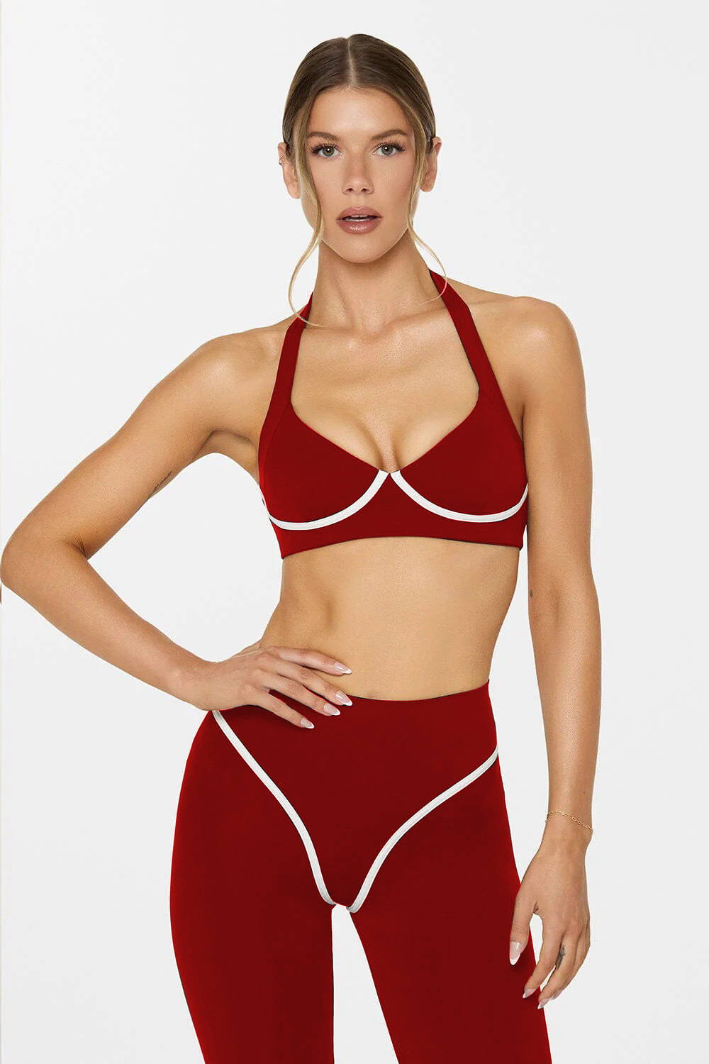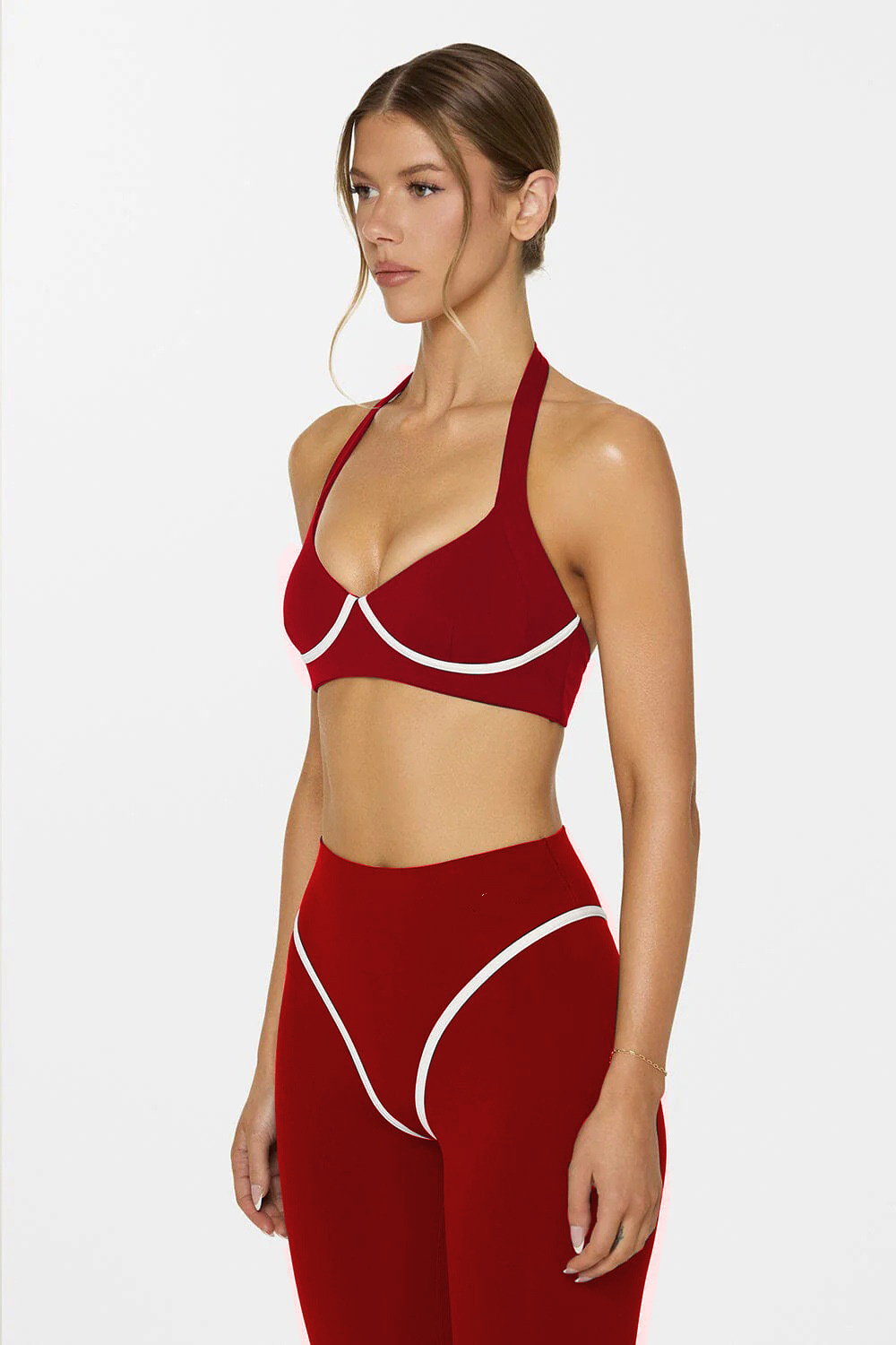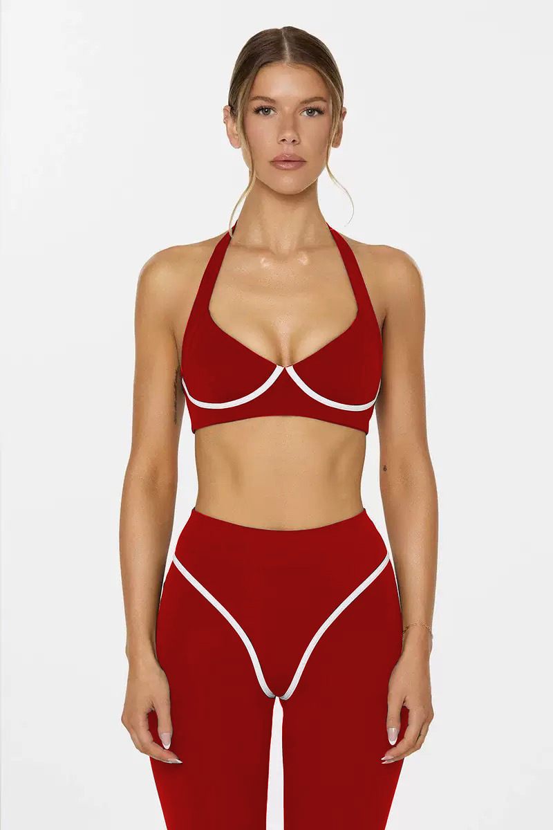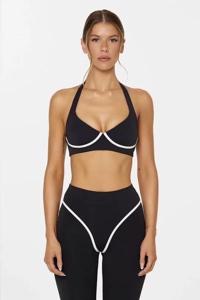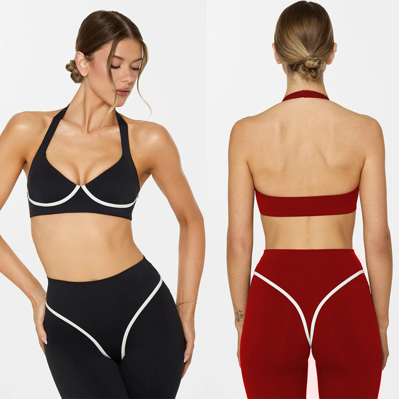 대외 무역 크로스보더 요가 조끼 배색 홀터넥 가슴 패드가 있는 여성용 스포츠 브라 신축성 있는 속건성 러닝 트레이닝 팬츠