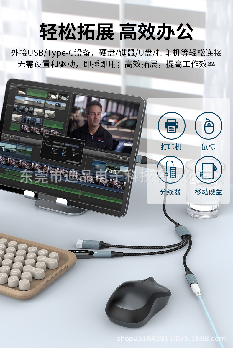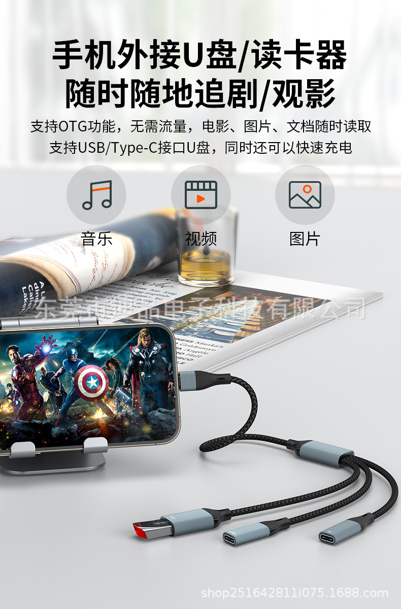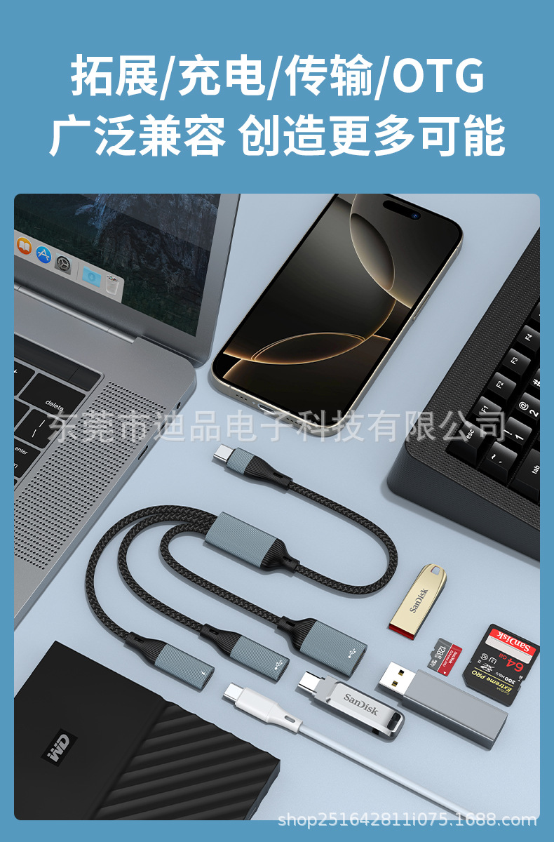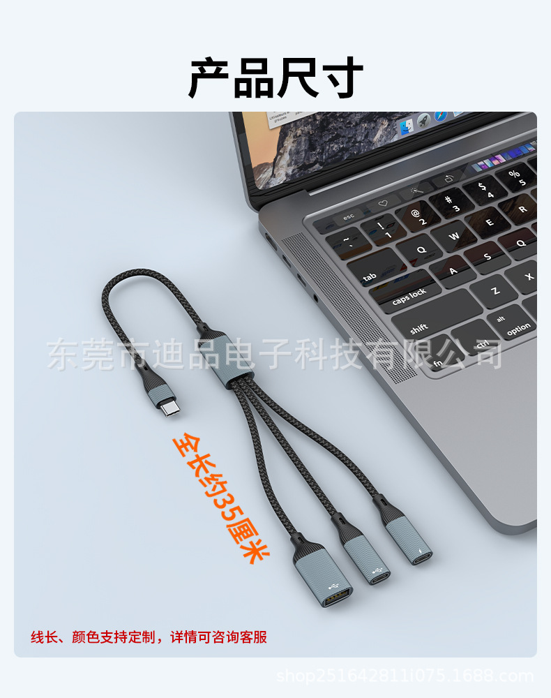 USB 1대3 듀얼 C 타입 여성 포트 허브 분배기 타입-C 확장 어댑터 USB 플래시 드라이브 키보드 마우스 하드디스크 휴대폰스토어 가기