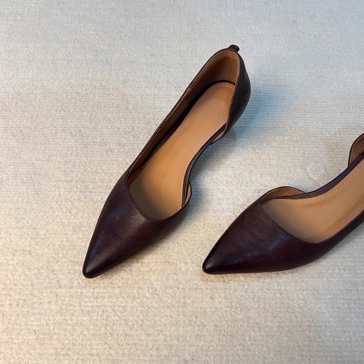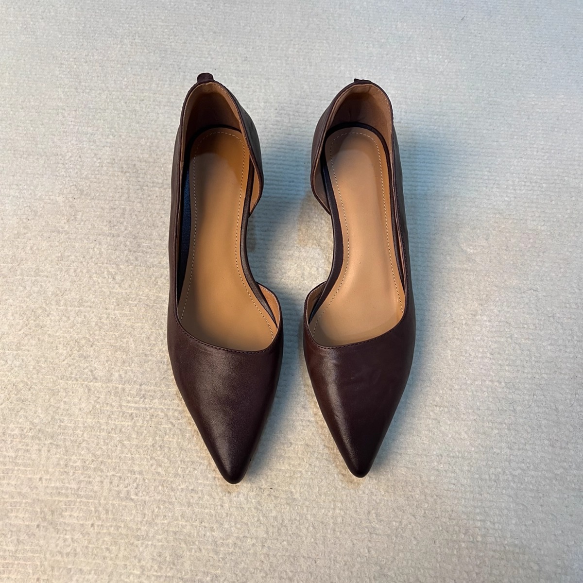 양가죽 버전~프렌치 포인티드 토 하이힐, 통근용 슬립온, 두꺼운 굽 싱글 슈즈, 여성용 얕은 입구 중공 작업화