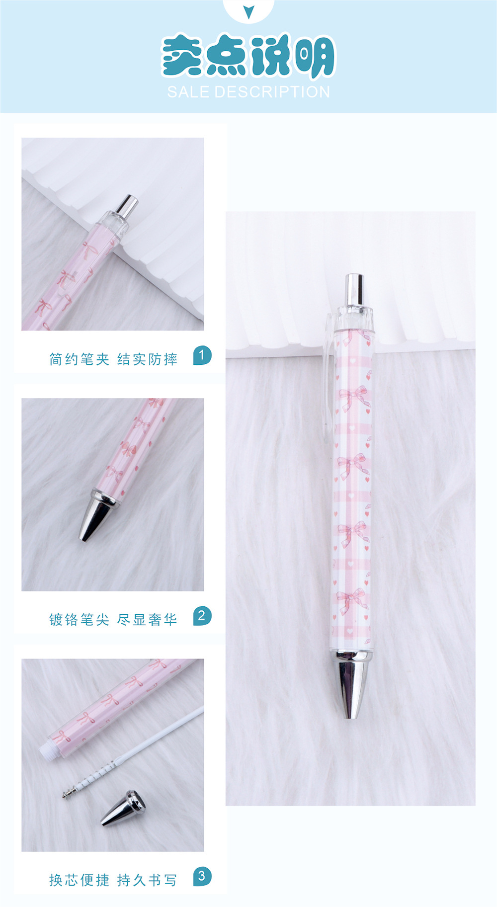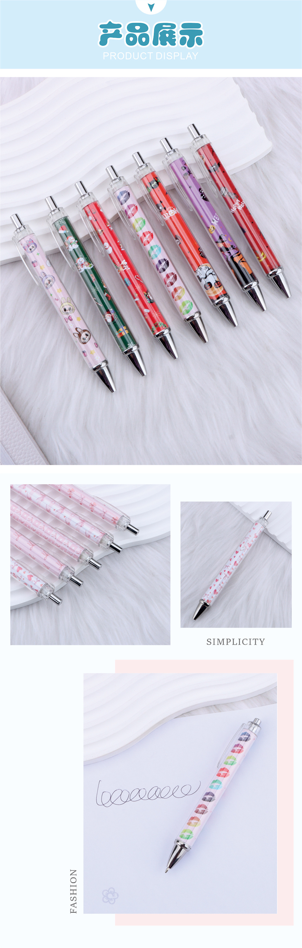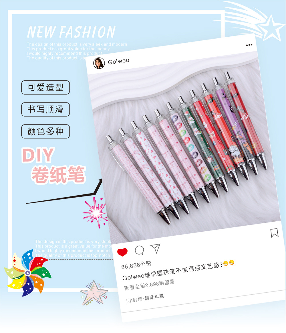 국경을 넘나드는 핑크 리본 롤링 펜 러브 발렌타인 데이 할로윈 크리스마스 선물 볼펜 재고 있음