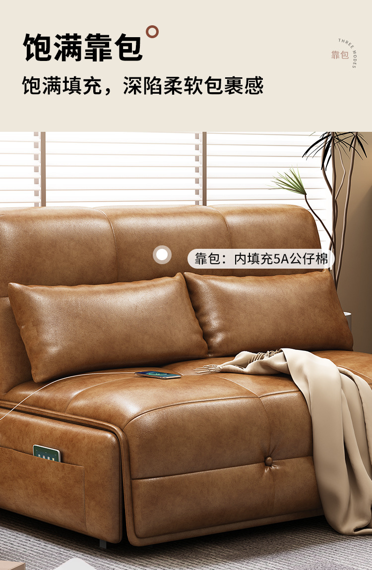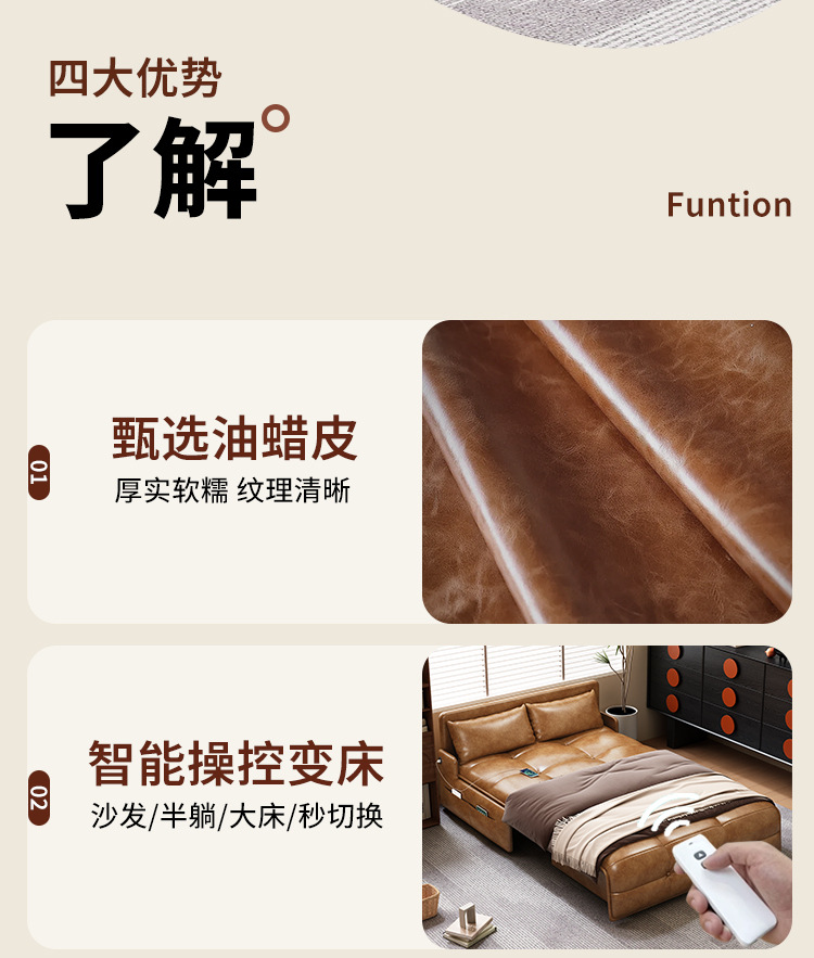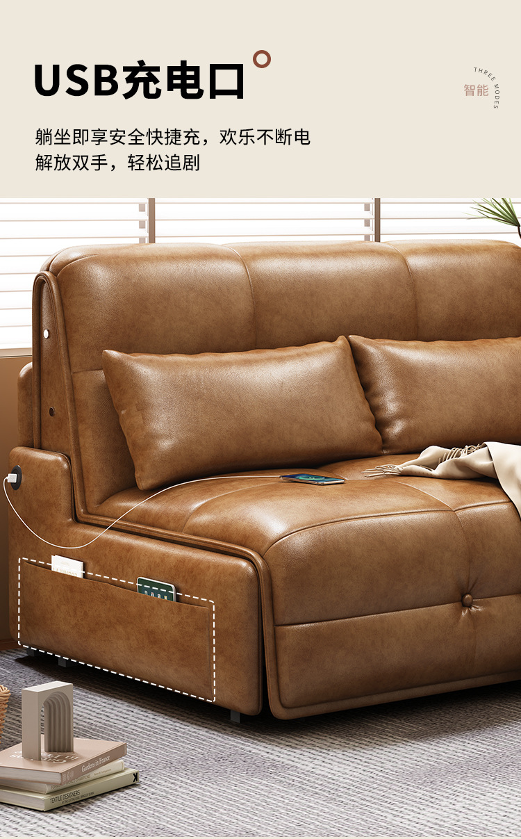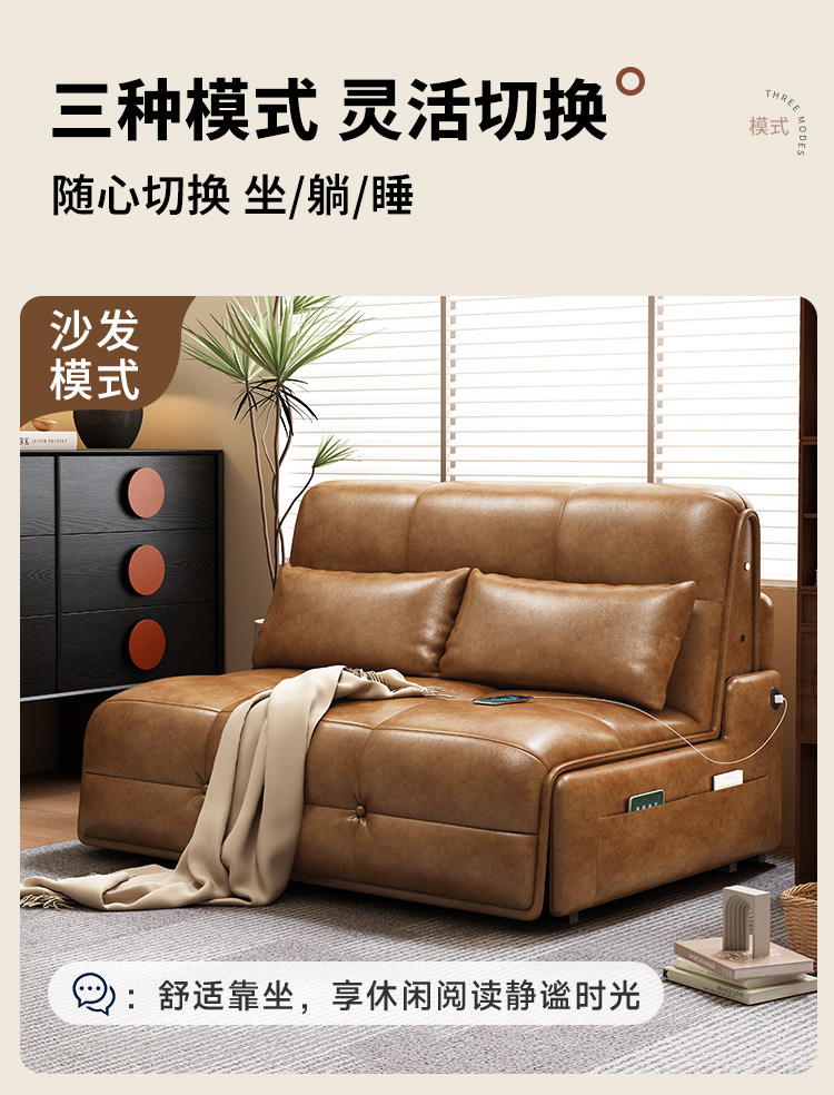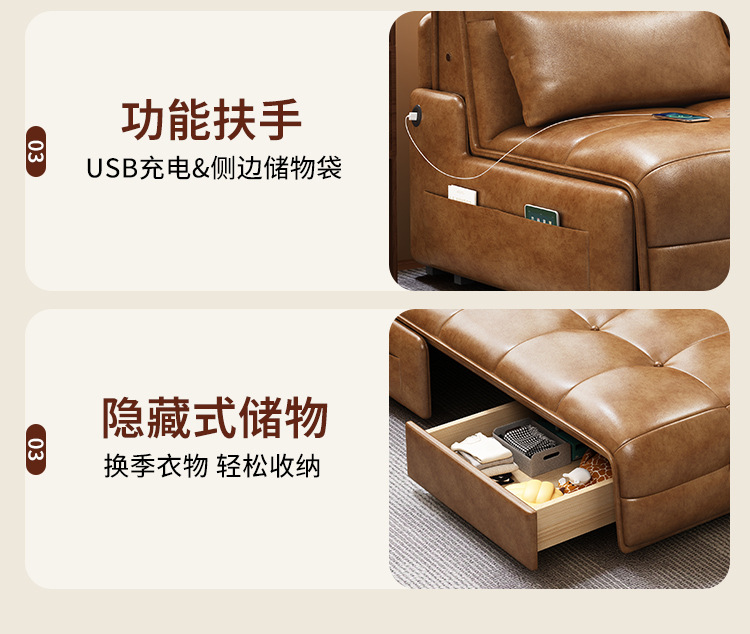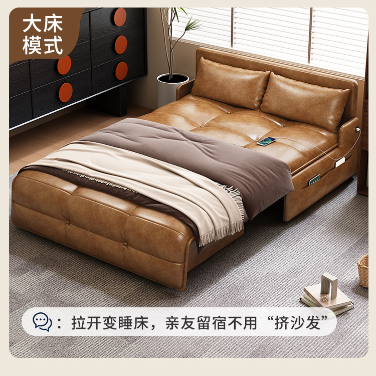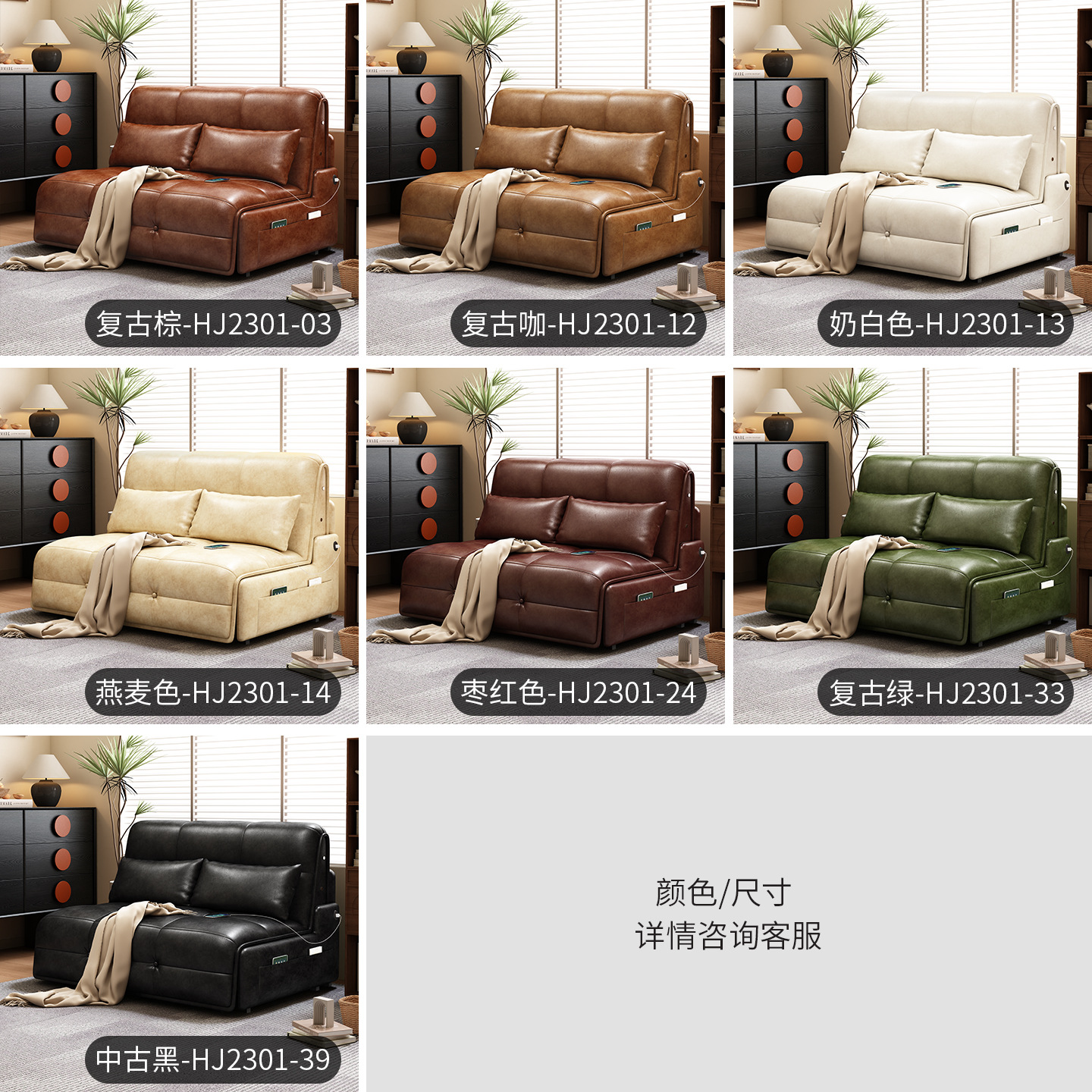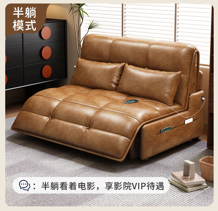 레트로 오일 왁스 가죽 중세 스타일 소파 베드 전기 개폐식 지능형 원격 제어 올인원 이중 목적 하이 엔드 스토리지 소파 베드