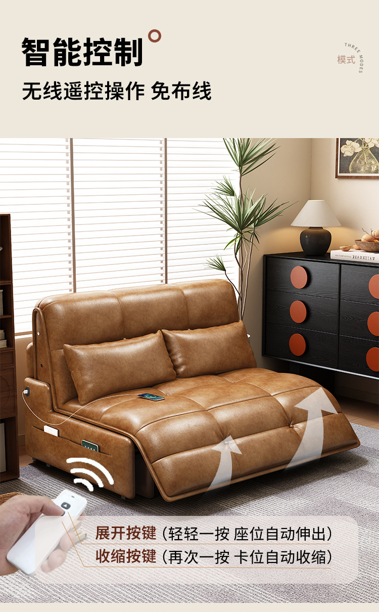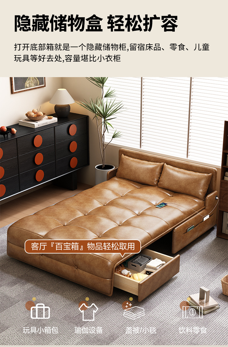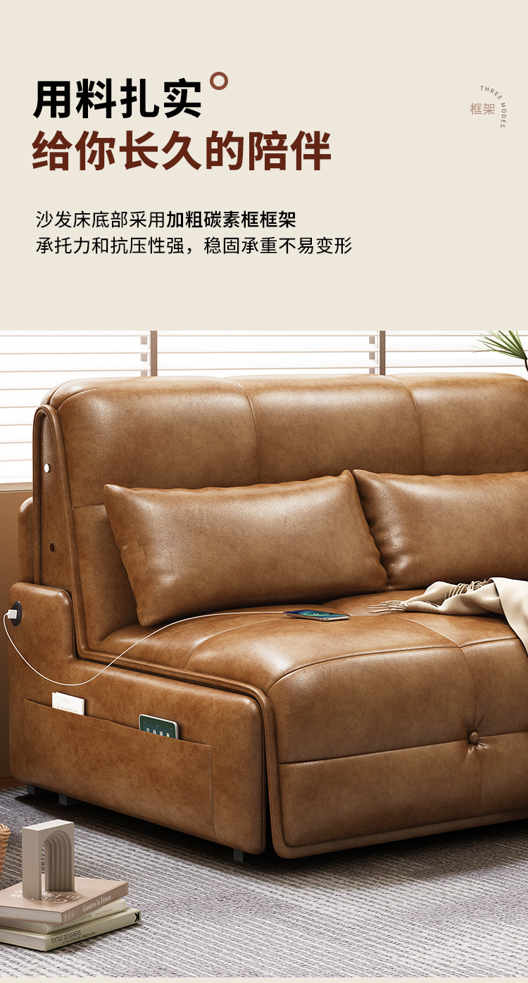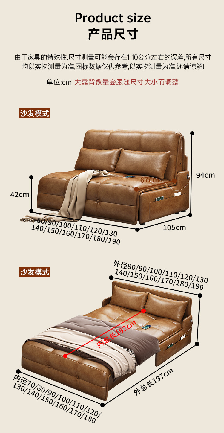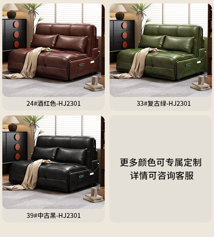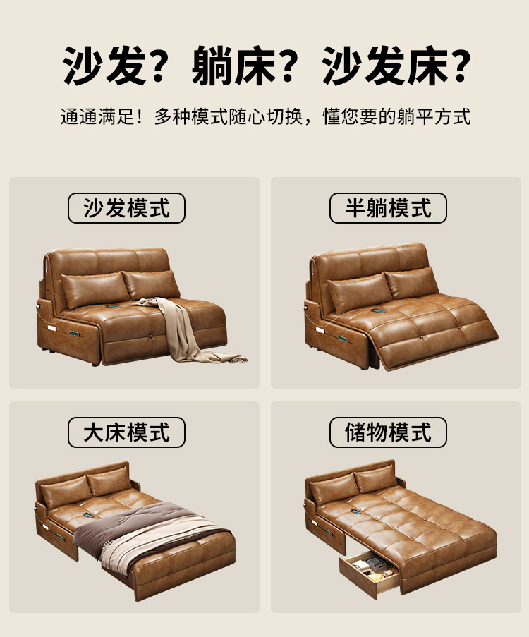 레트로 오일 왁스 가죽 중세 스타일 소파 베드 전기 개폐식 지능형 원격 제어 올인원 이중 목적 하이 엔드 스토리지 소파 베드