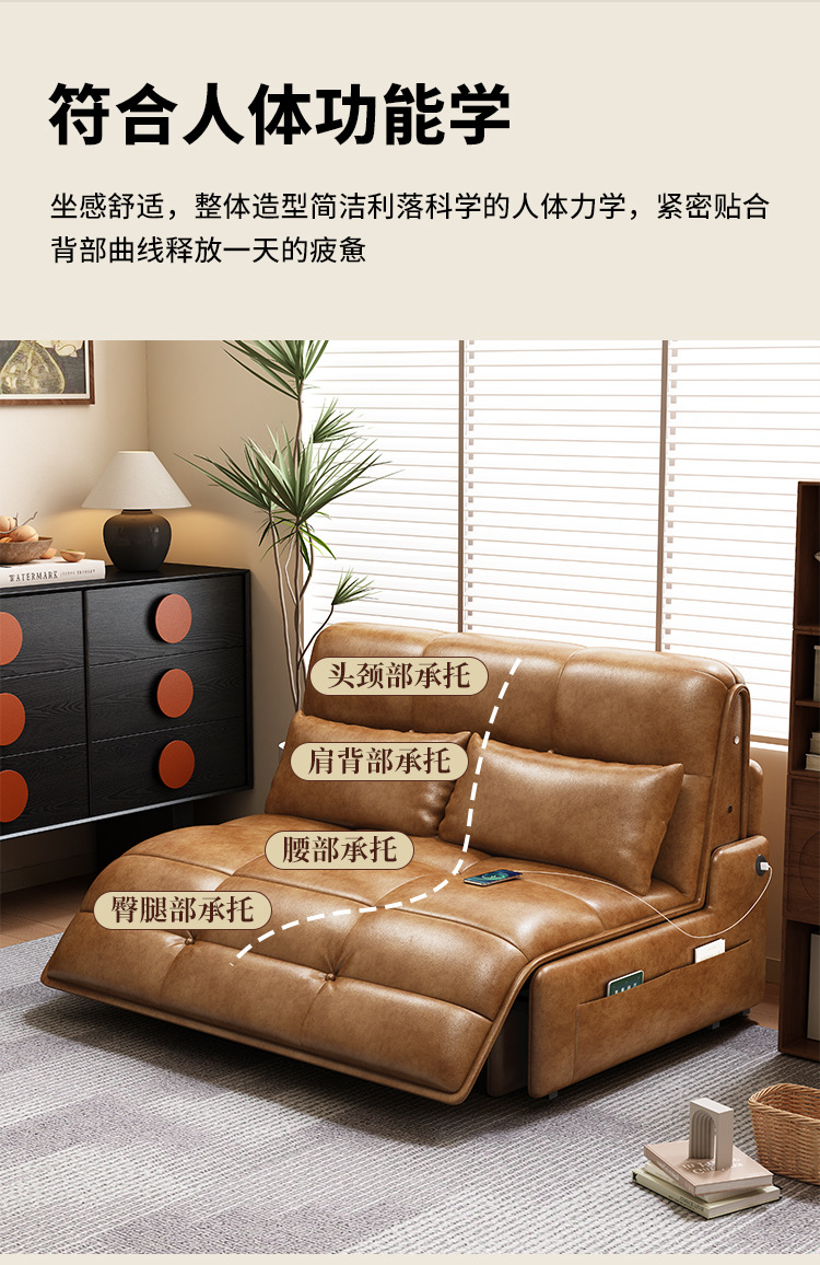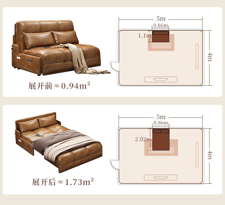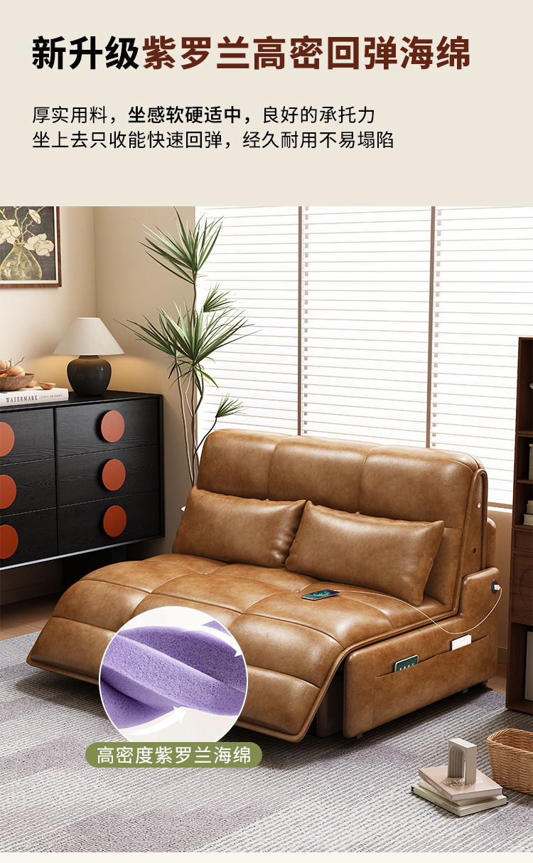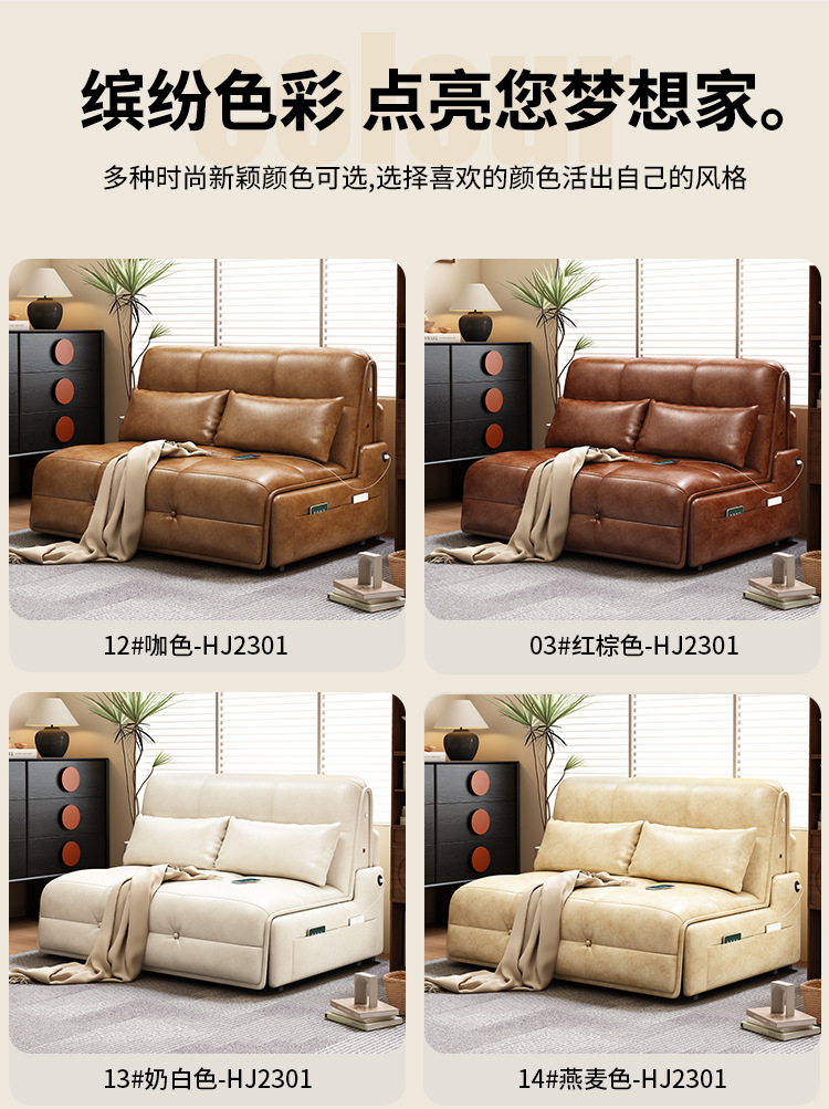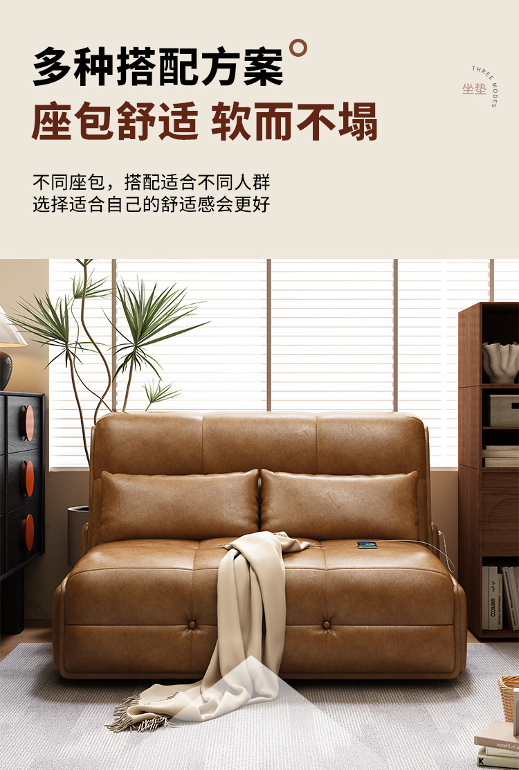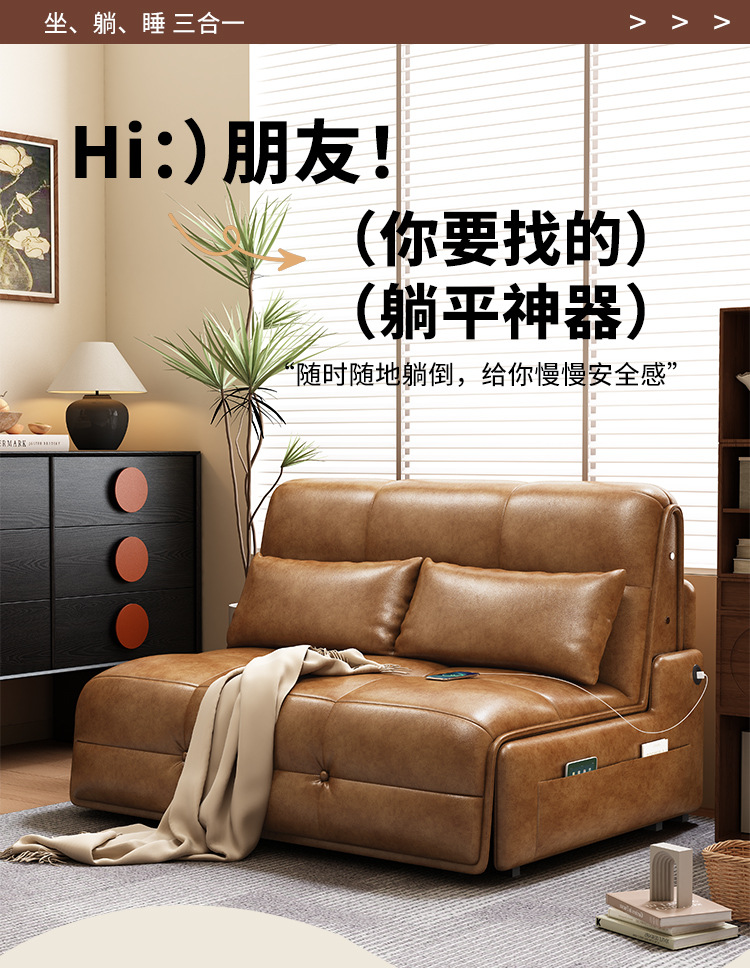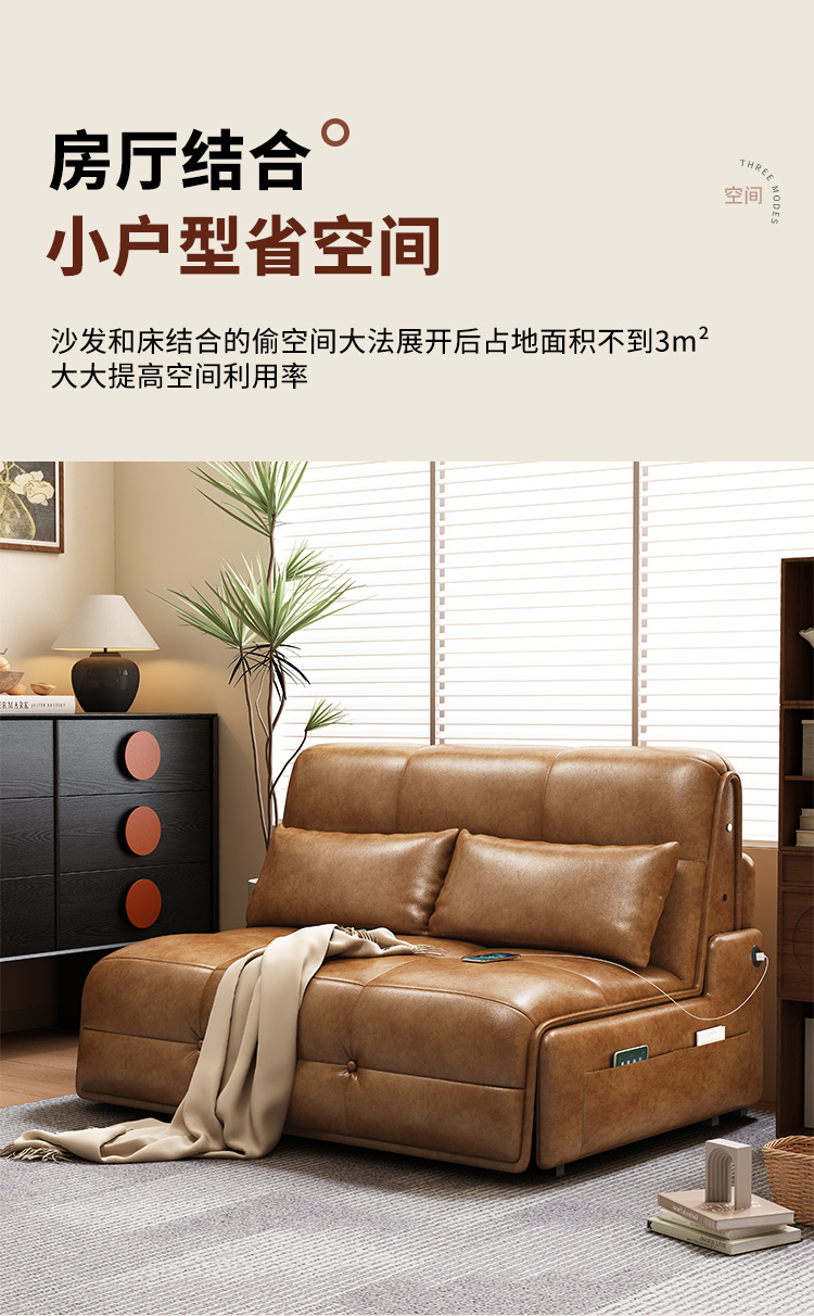레트로 오일 왁스 가죽 중세 스타일 소파 베드 전기 개폐식 지능형 원격 제어 올인원 이중 목적 하이 엔드 스토리지 소파 베드