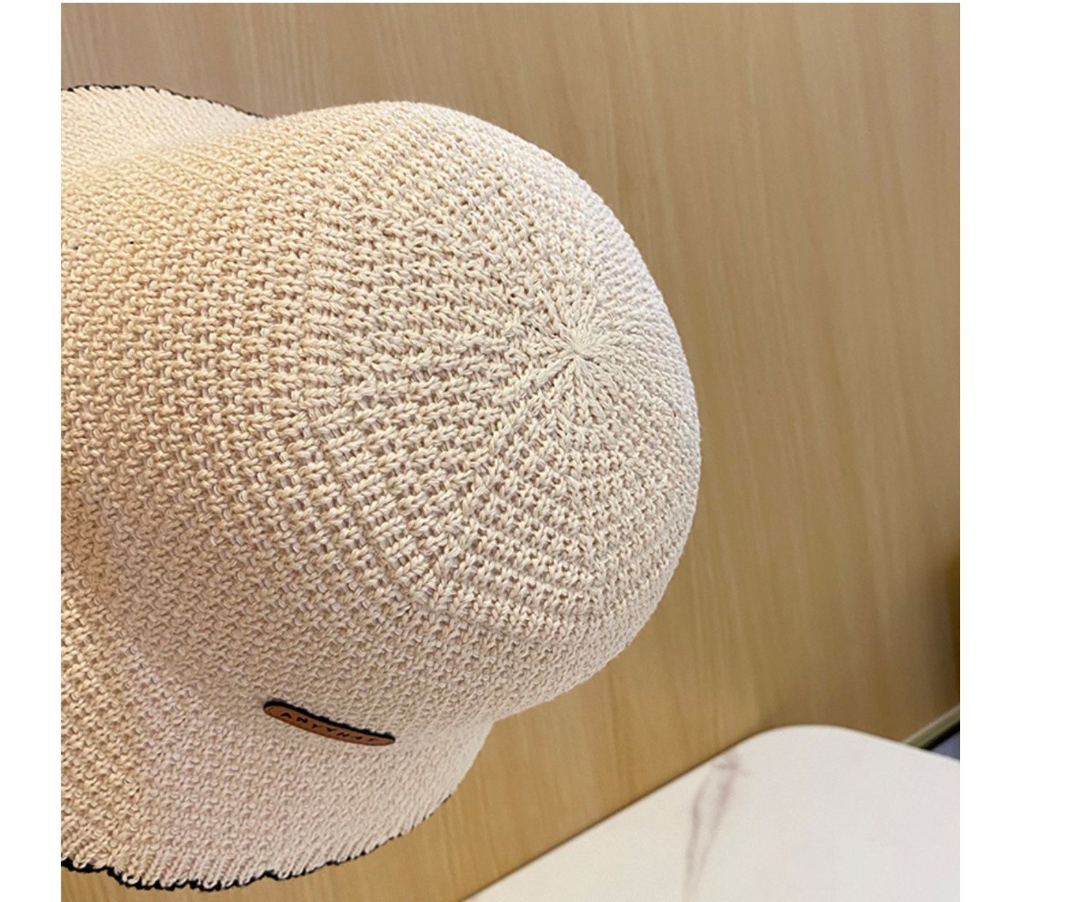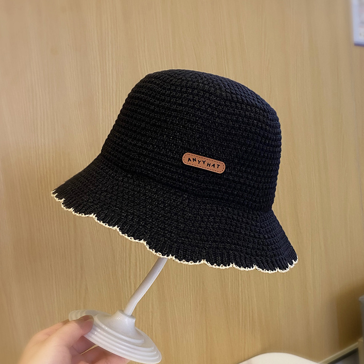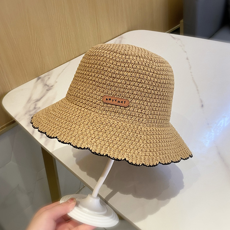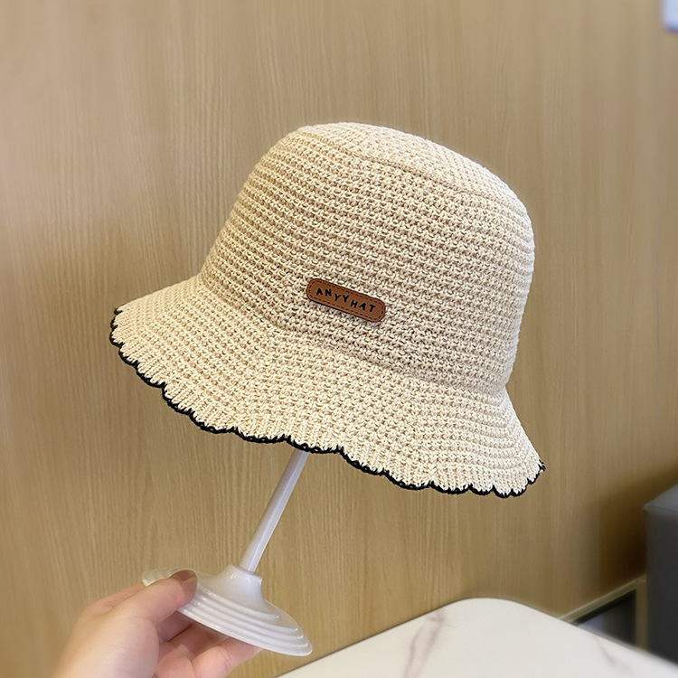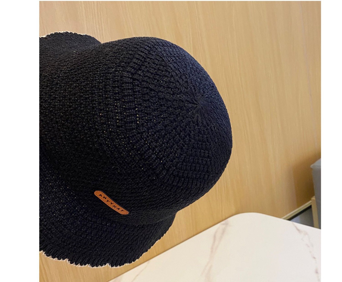 여성을위한 봄과 가을 새로운 스타일의 어부 모자 한국어 버전 솔리드 컬러 캐주얼 다목적 야외 태양 모자 분지 모자 세련된 가죽 라벨 태양 보호 모자