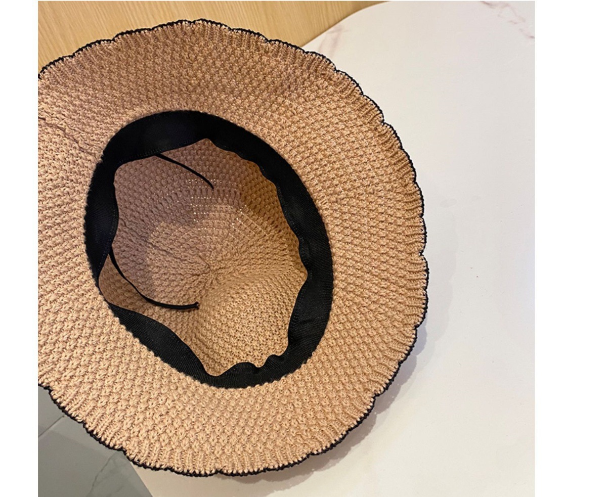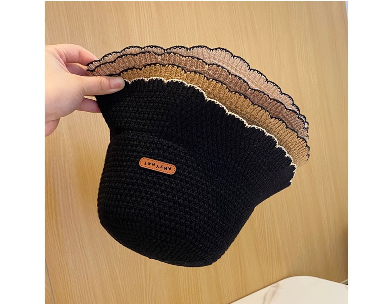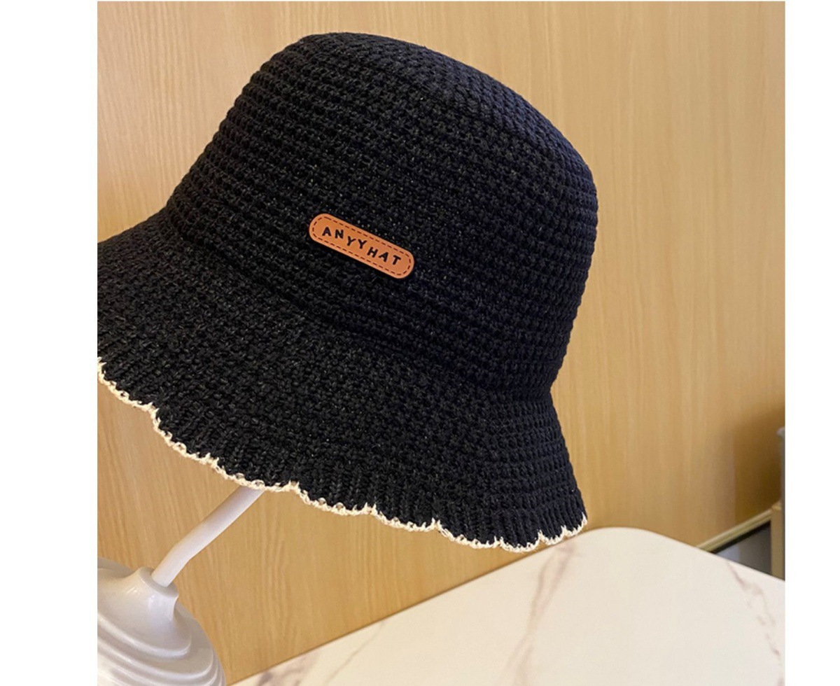 여성을위한 봄과 가을 새로운 스타일의 어부 모자 한국어 버전 솔리드 컬러 캐주얼 다목적 야외 태양 모자 분지 모자 세련된 가죽 라벨 태양 보호 모자