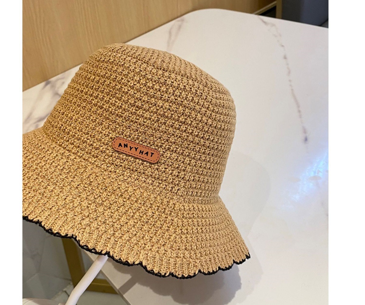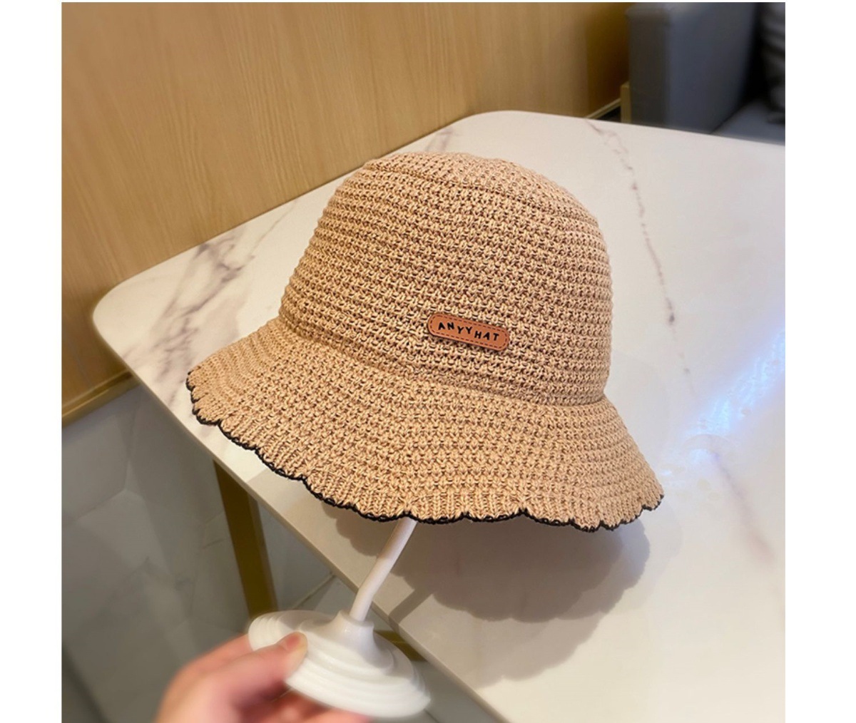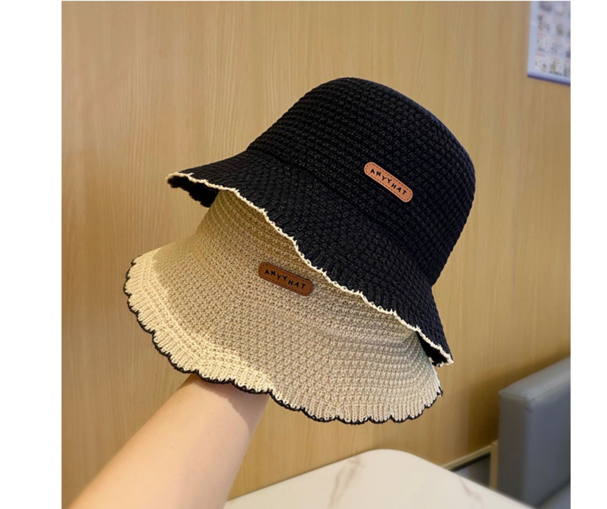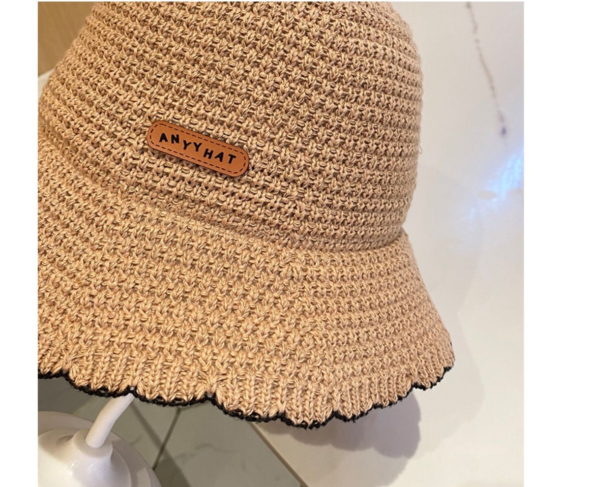 여성을위한 봄과 가을 새로운 스타일의 어부 모자 한국어 버전 솔리드 컬러 캐주얼 다목적 야외 태양 모자 분지 모자 세련된 가죽 라벨 태양 보호 모자스토어 가기
