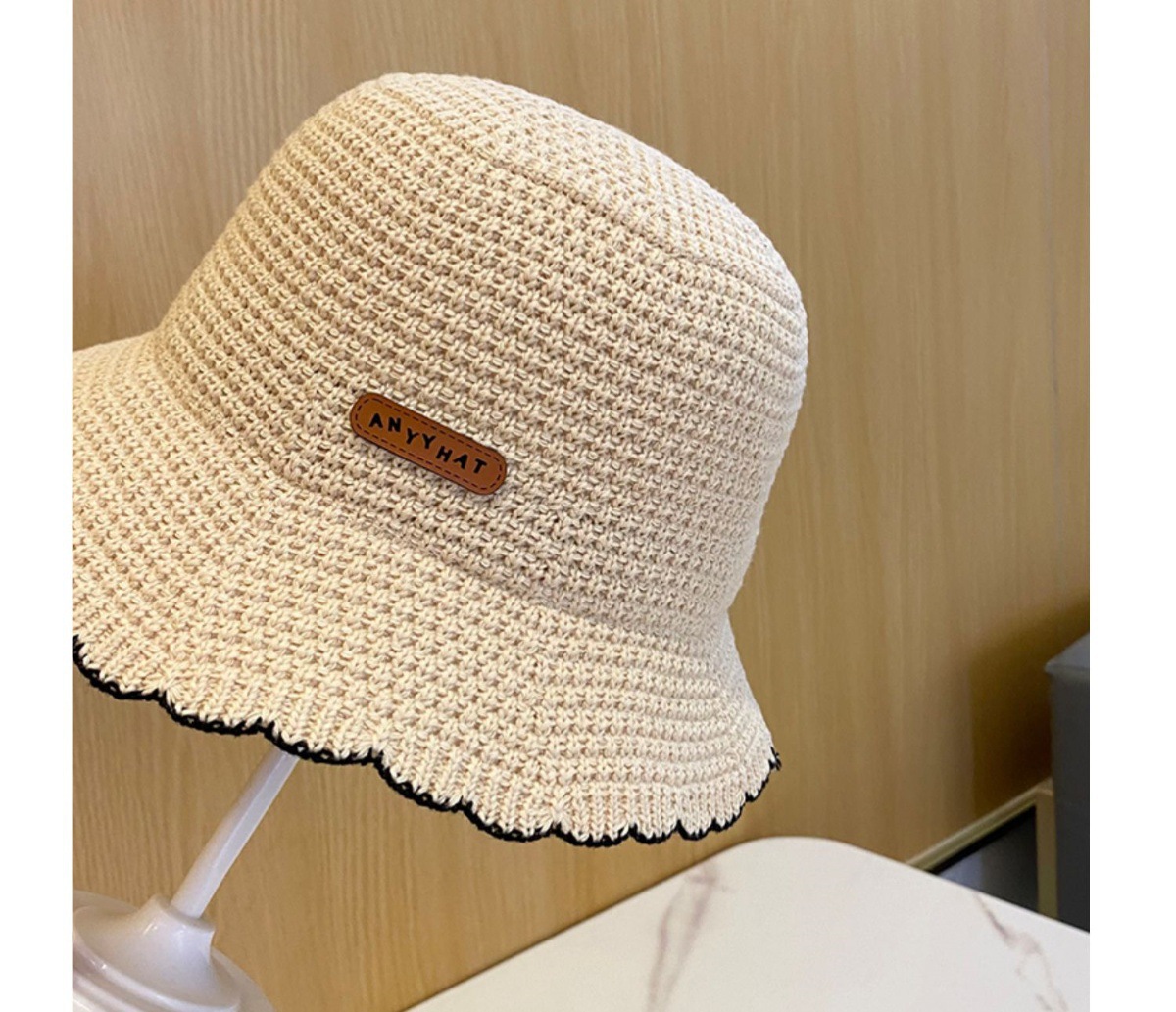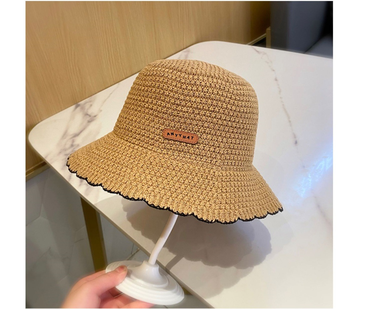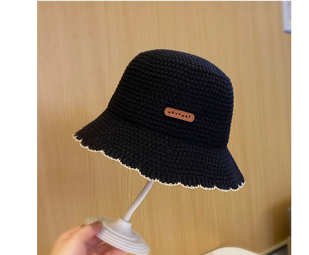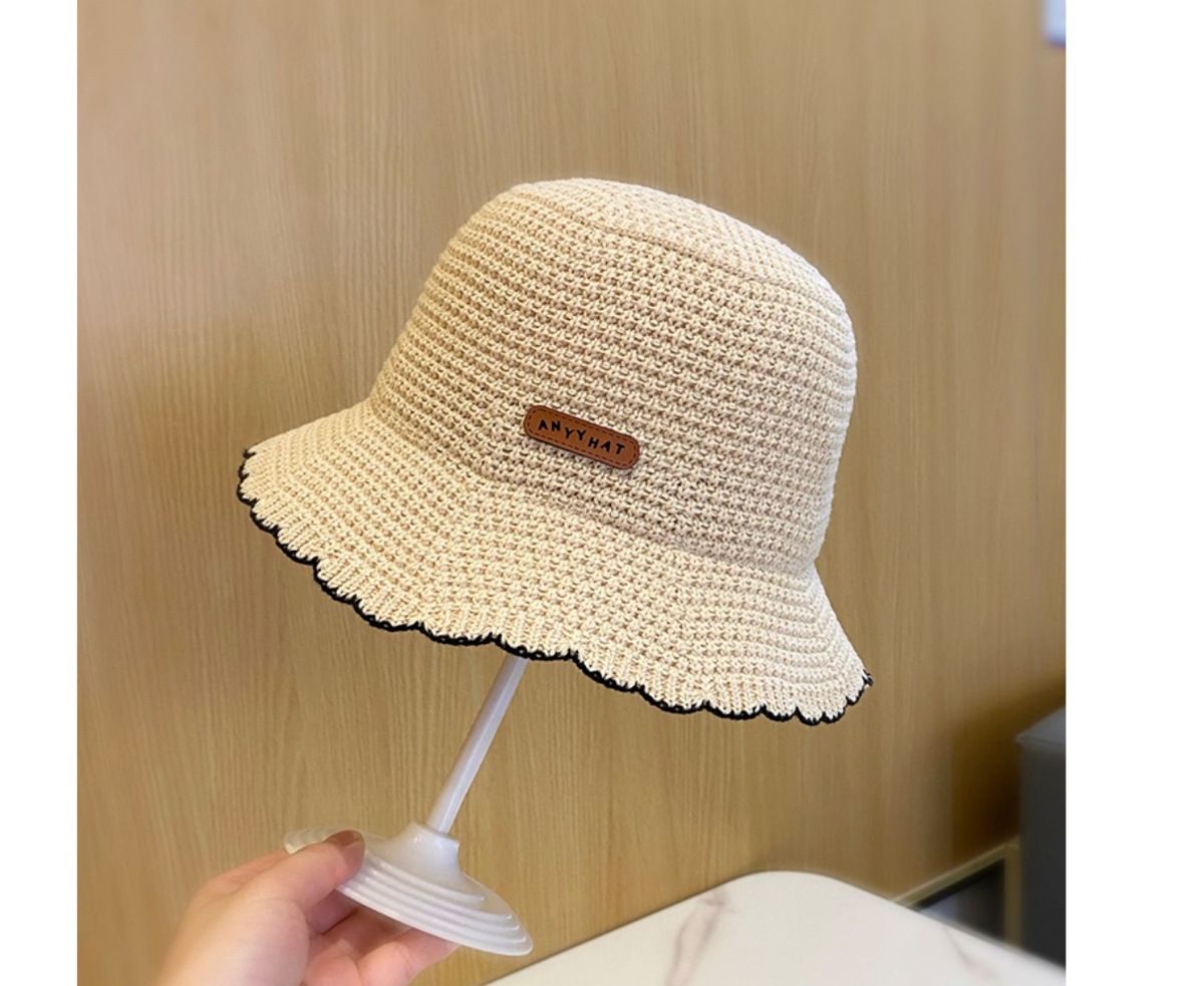 여성을위한 봄과 가을 새로운 스타일의 어부 모자 한국어 버전 솔리드 컬러 캐주얼 다목적 야외 태양 모자 분지 모자 세련된 가죽 라벨 태양 보호 모자스토어 가기