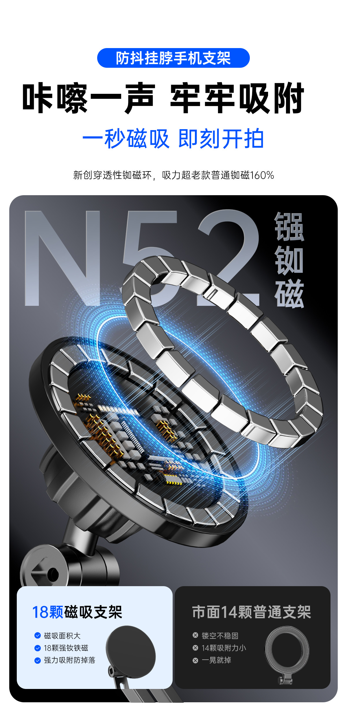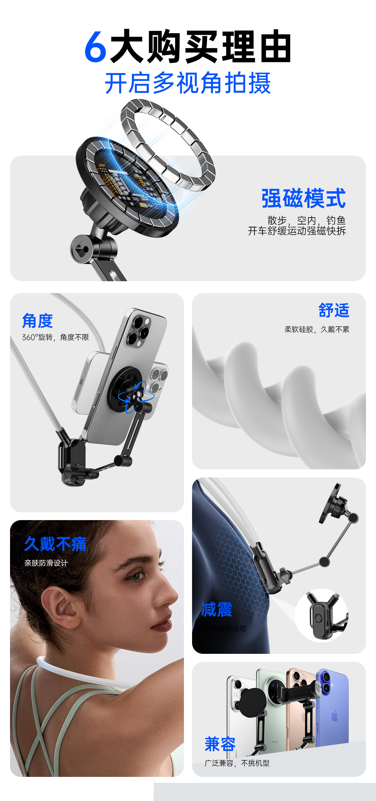 1인칭 촬영 장비, 목걸이 촬영 브래킷, 휴대폰 액션 카메라 라이딩 어댑터, 자기 목걸이 브래킷
