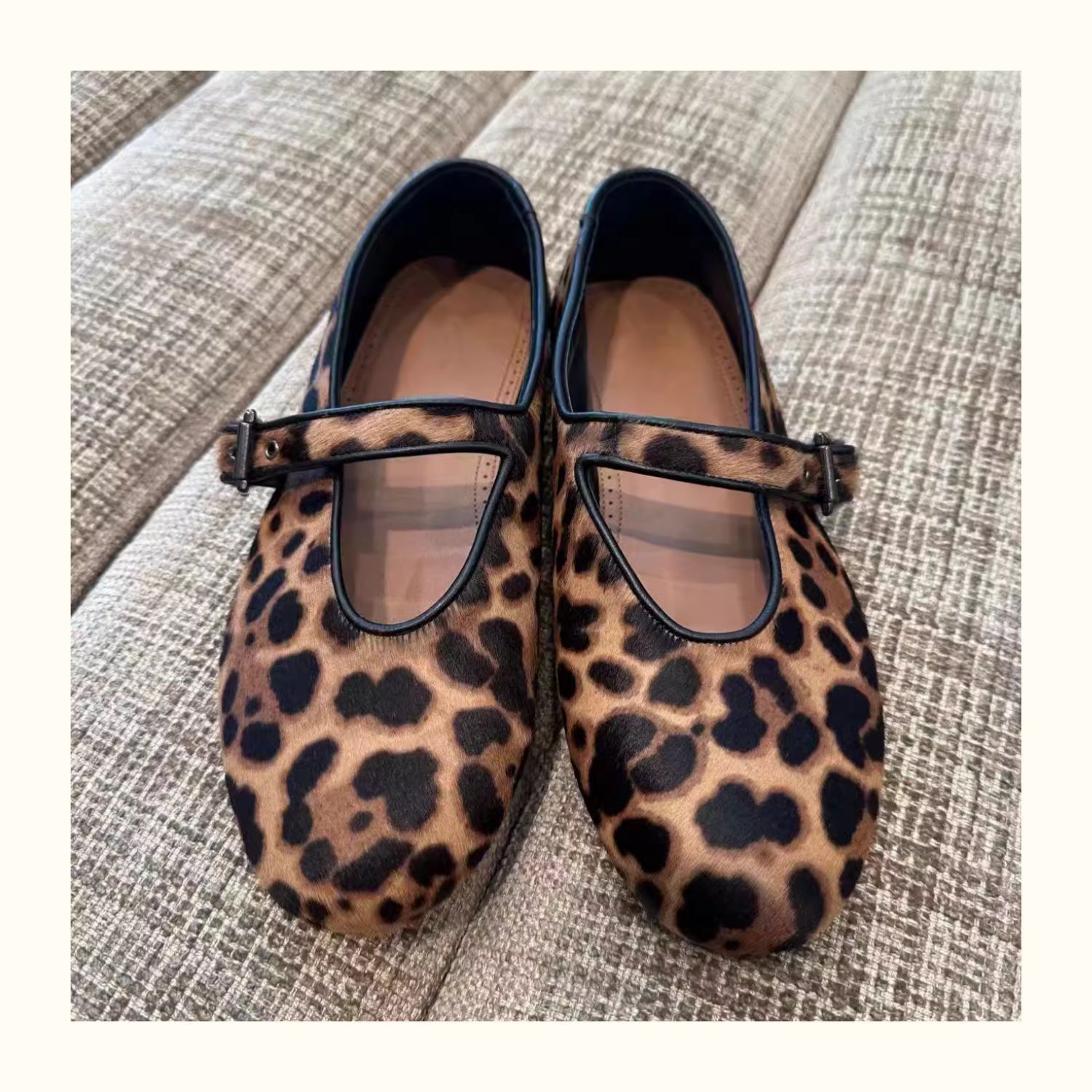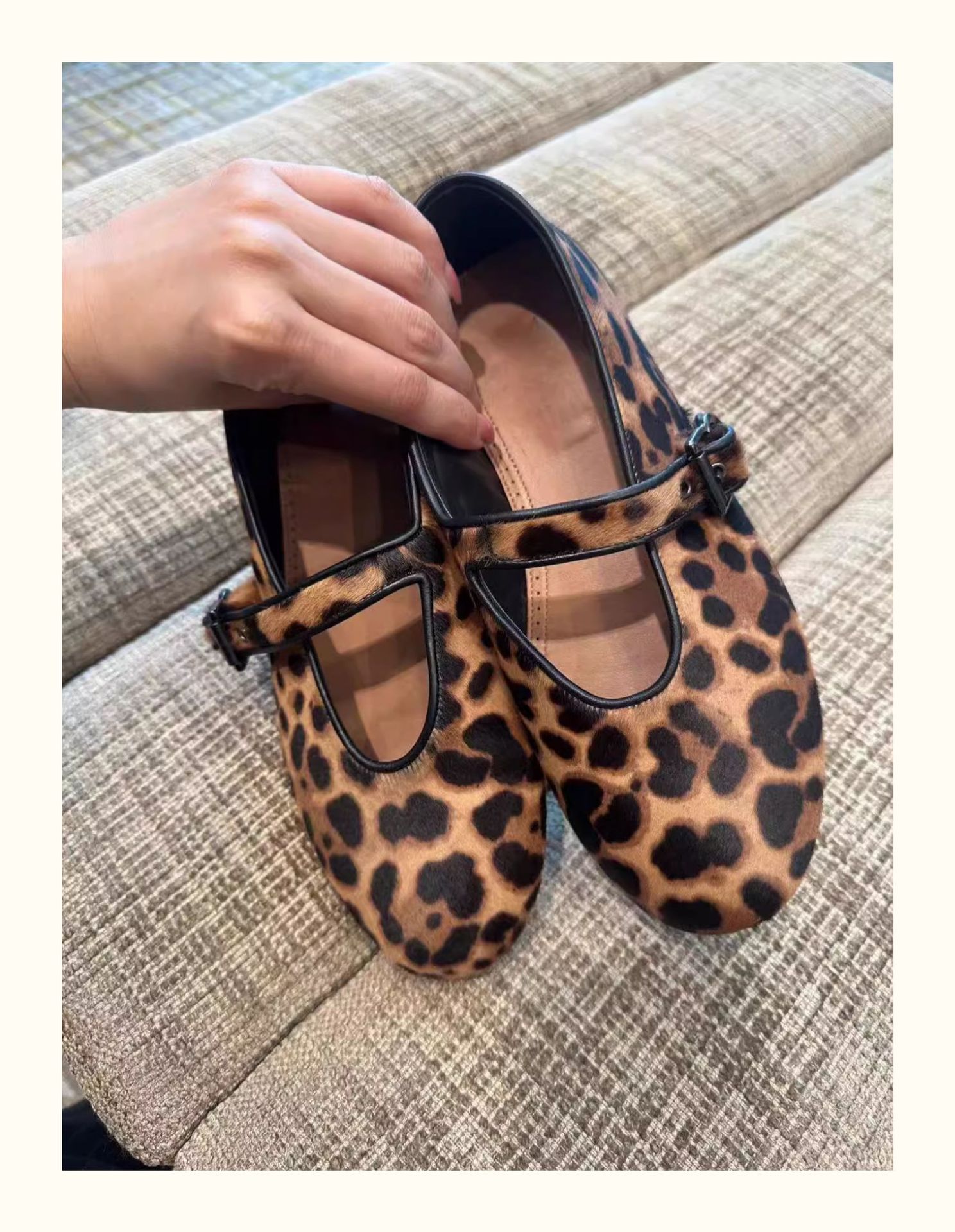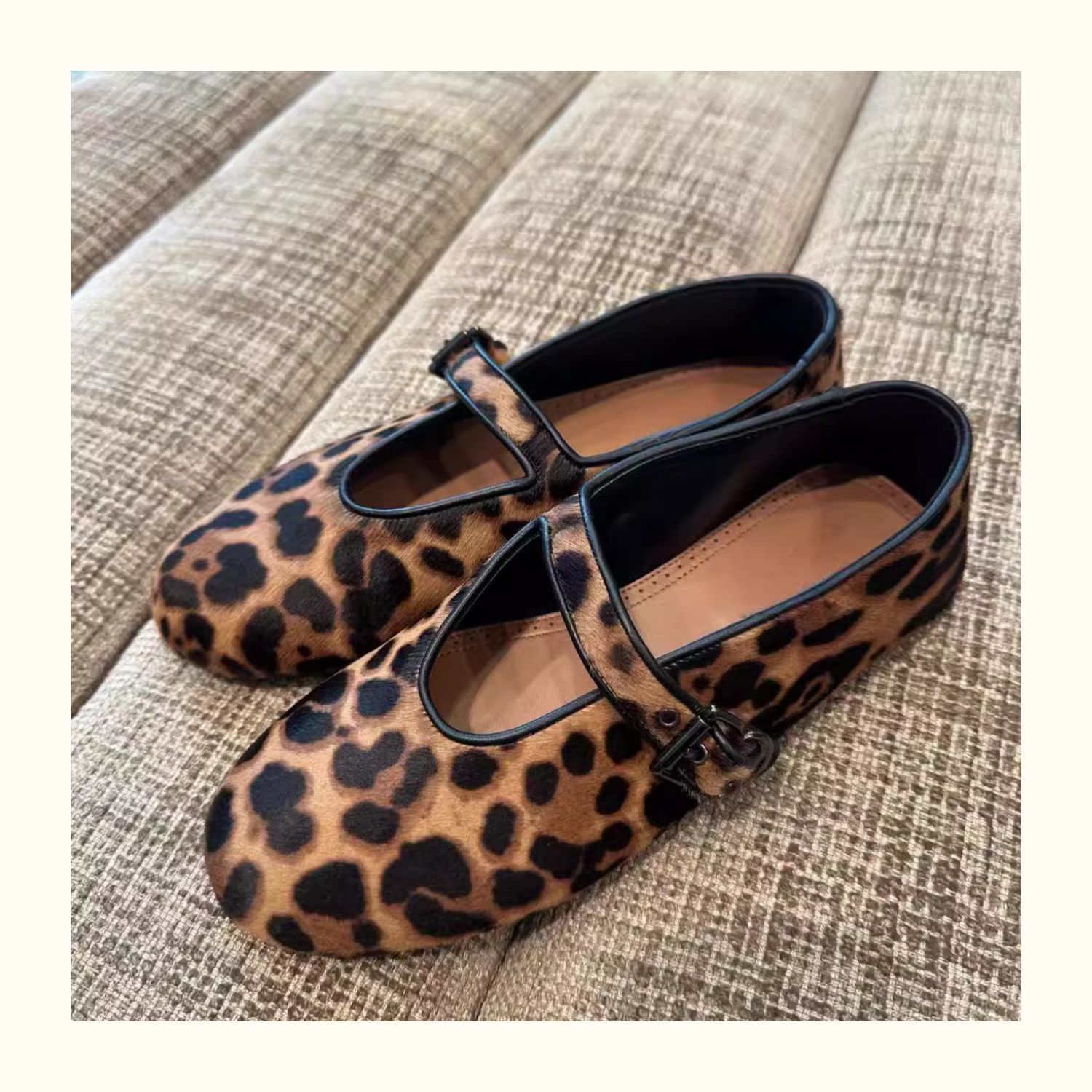 양가죽 버전 ~ 2025 새로운 틈새 표범 무늬 말털 플랫 슈즈 여성 플랫 메리 제인 여성 신발