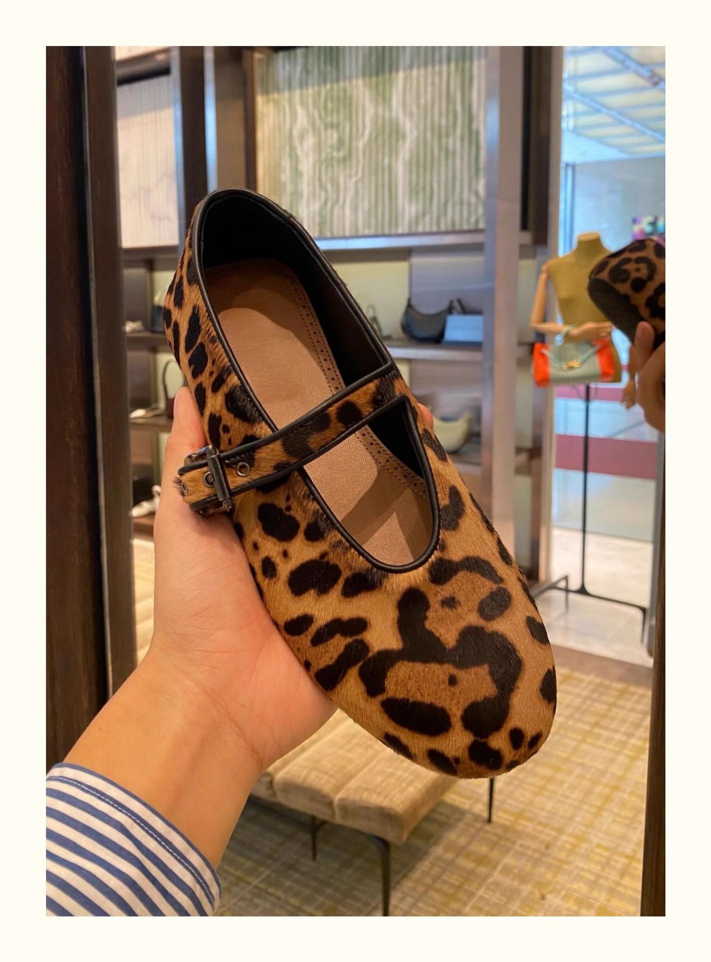 양가죽 버전 ~ 2025 새로운 틈새 표범 무늬 말털 플랫 슈즈 여성 플랫 메리 제인 여성 신발스토어 가기