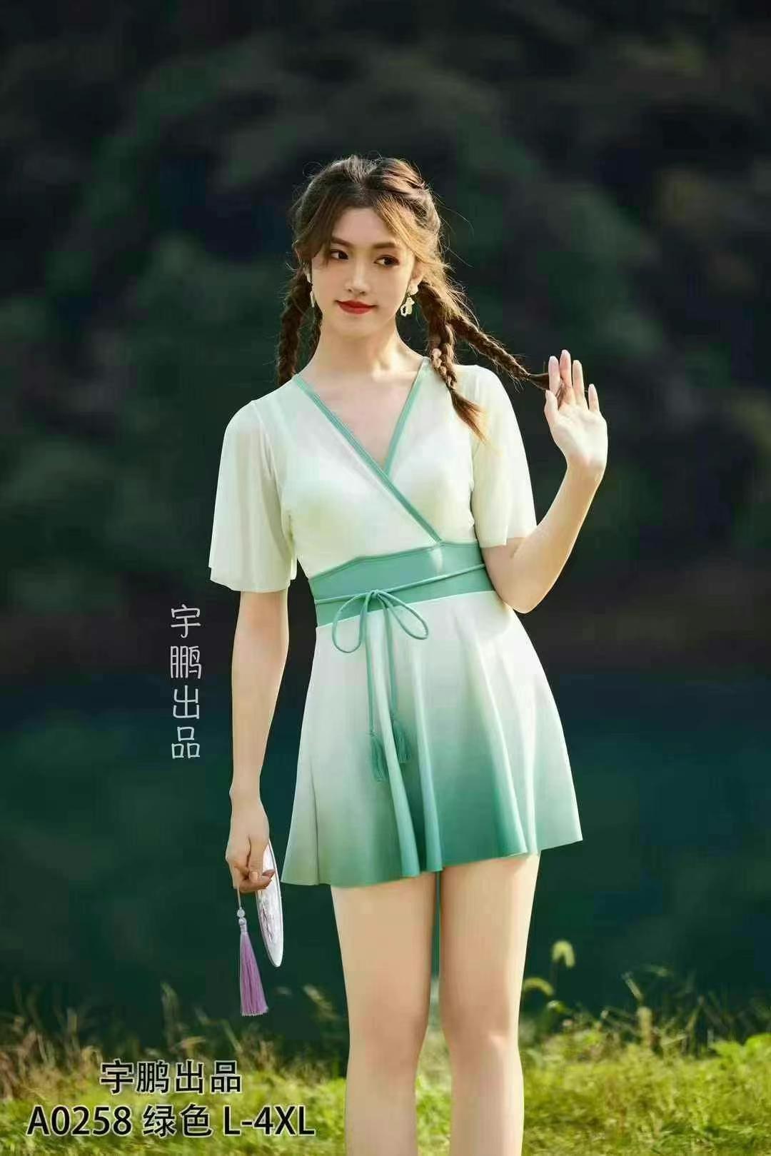재고정리 45원 여성용 원피스 수영복 중국풍 배 가리기 슬림 보정 단정한 온천 수영복
