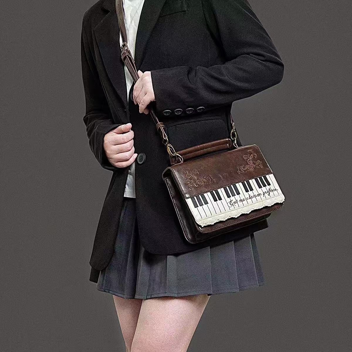 레트로 문학 피아노 레이스 크로스백, 고급스럽고 활용도 높은 핸드백, 심플한 백팩, 서류가방, 숄더백