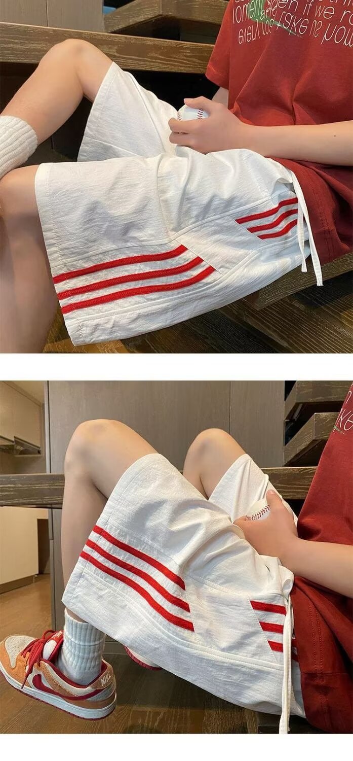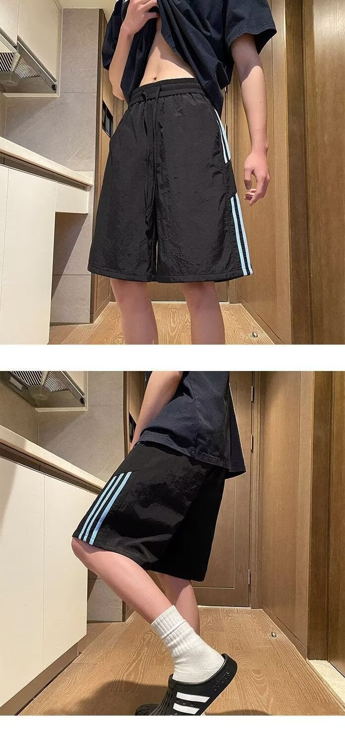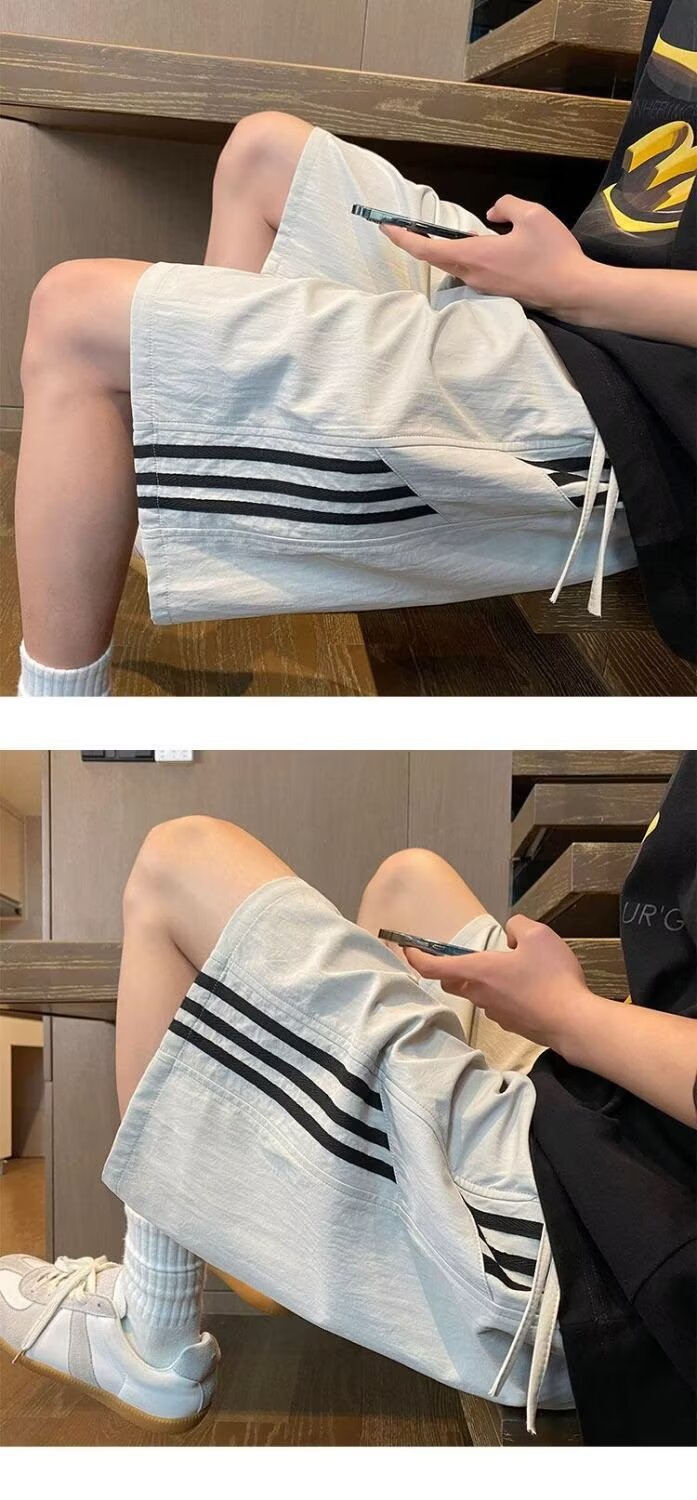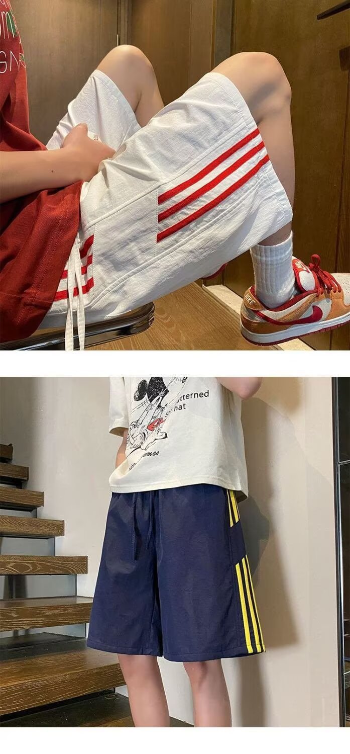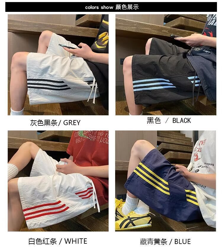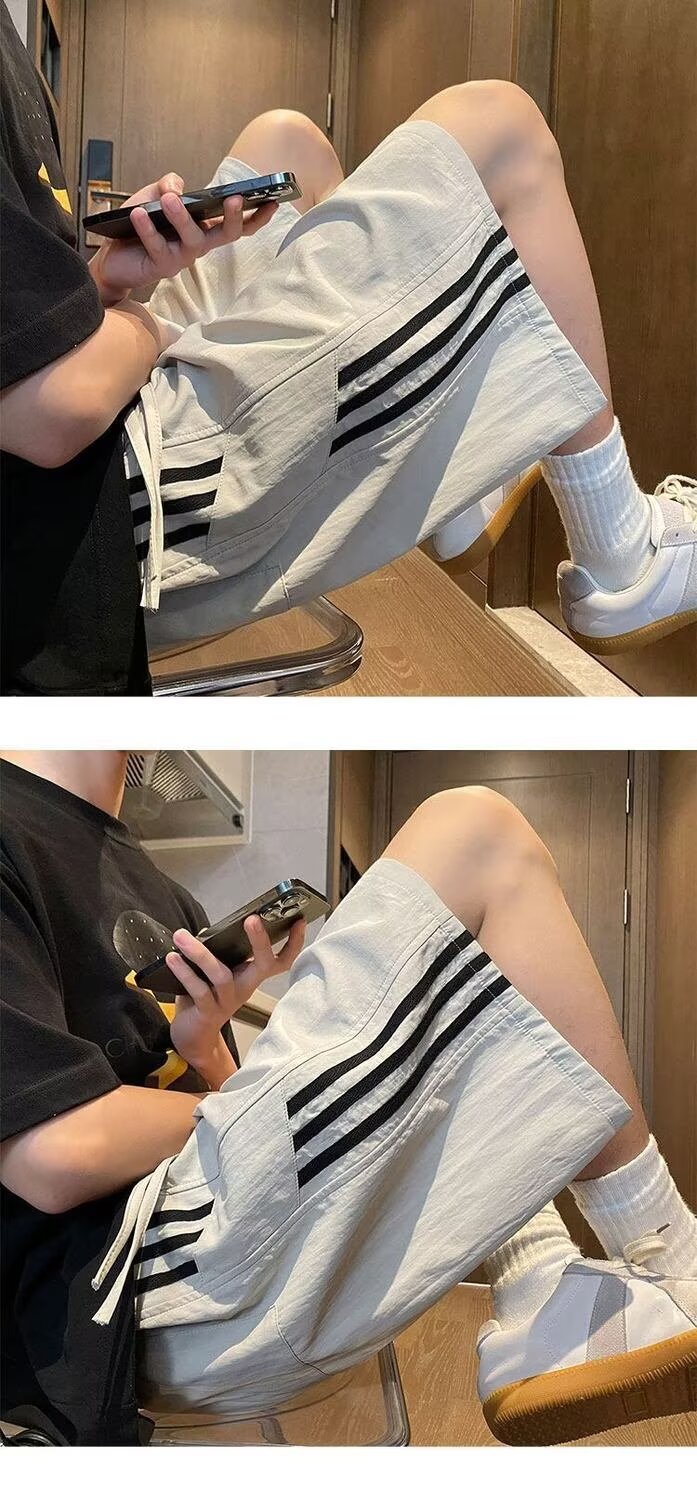 세 줄무늬 디자인 속건성 스포츠 캐주얼 반바지 남성 바지 여름 신작 루즈한 5부 바지 아메리칸 스웨트팬츠스토어 가기