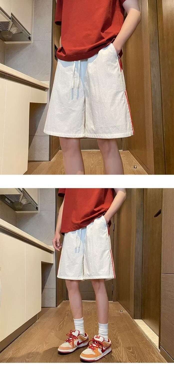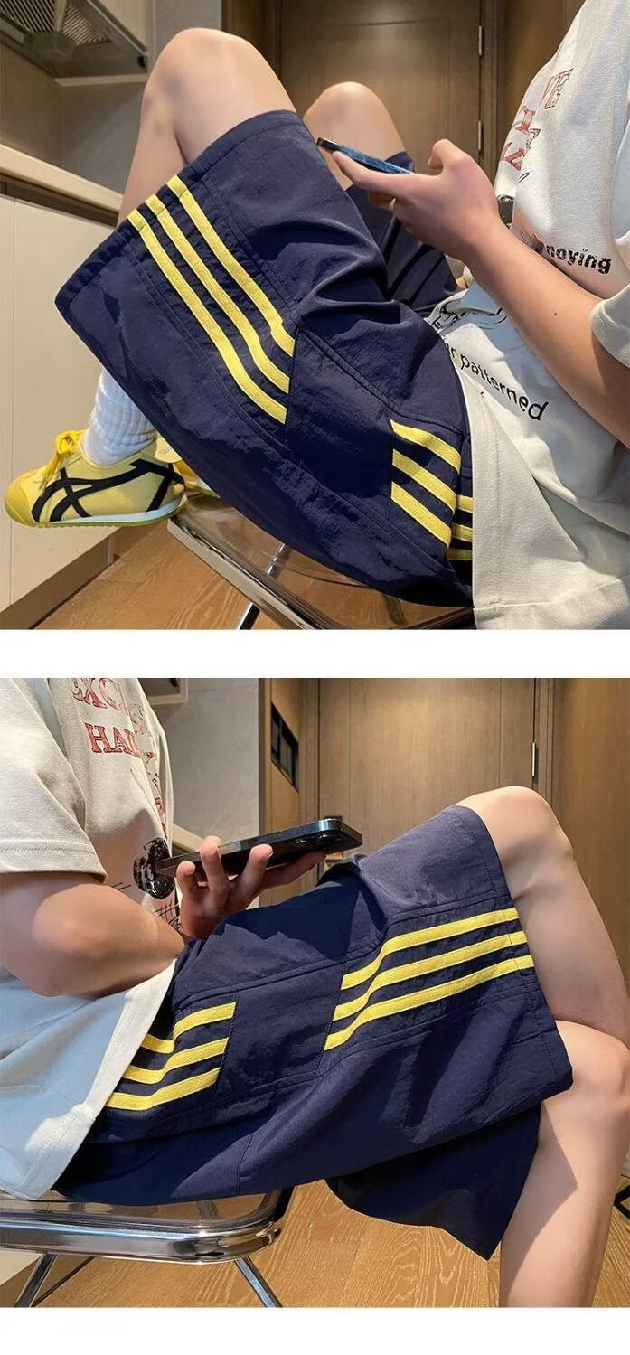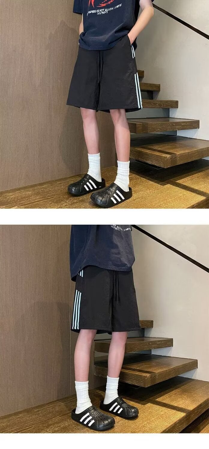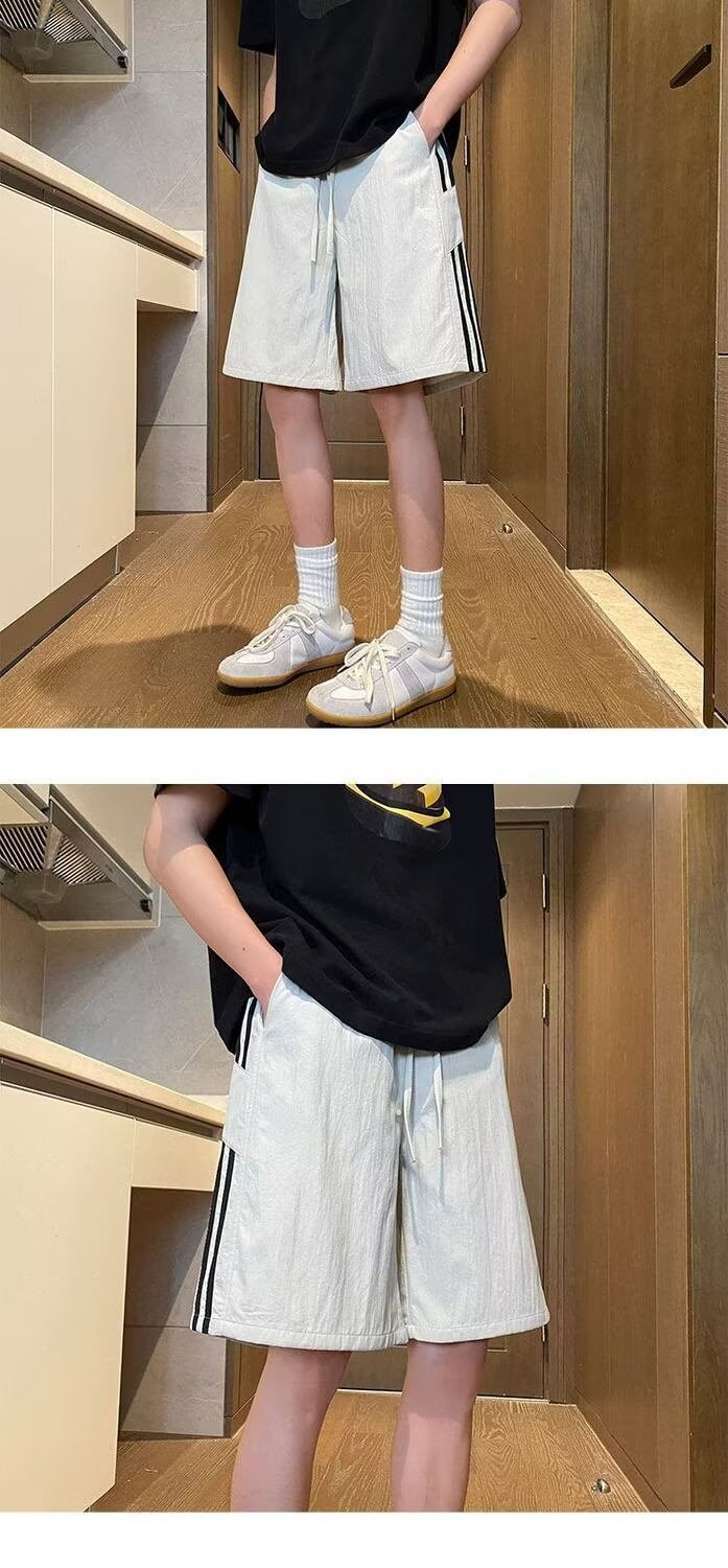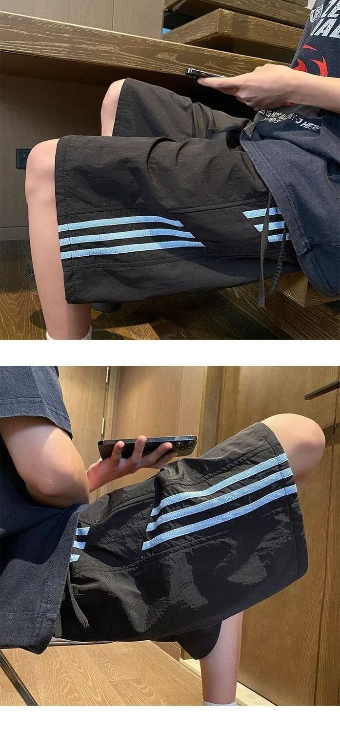 세 줄무늬 디자인 속건성 스포츠 캐주얼 반바지 남성 바지 여름 신작 루즈한 5부 바지 아메리칸 스웨트팬츠스토어 가기