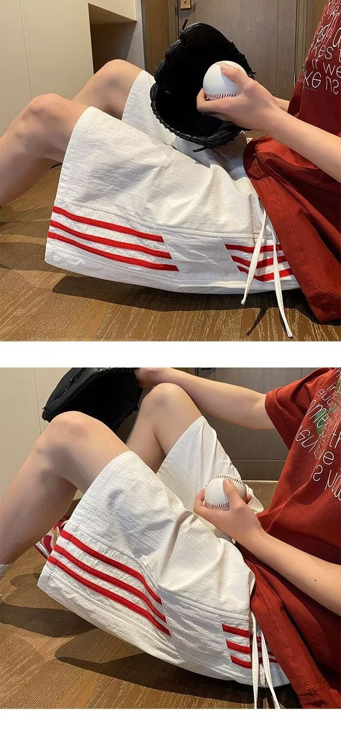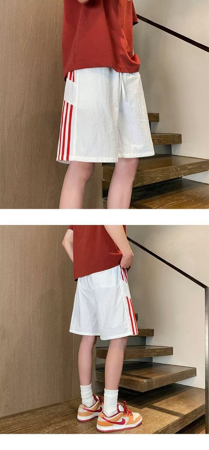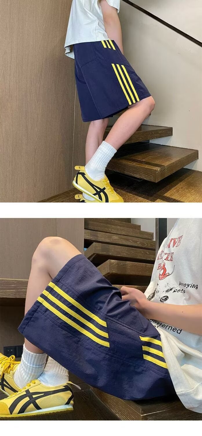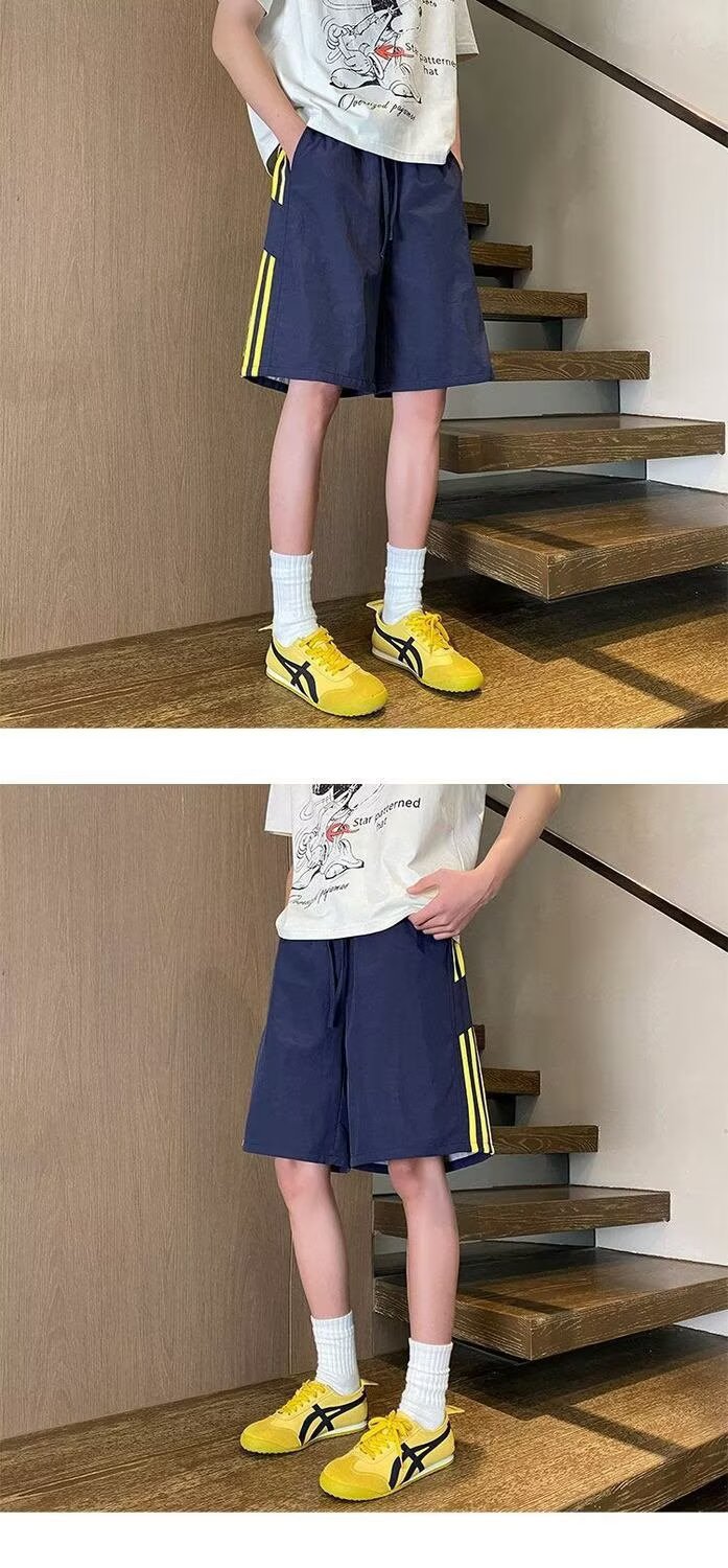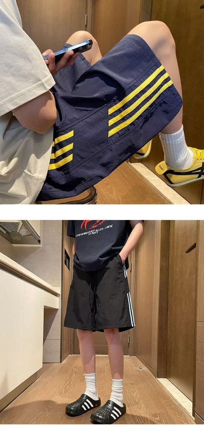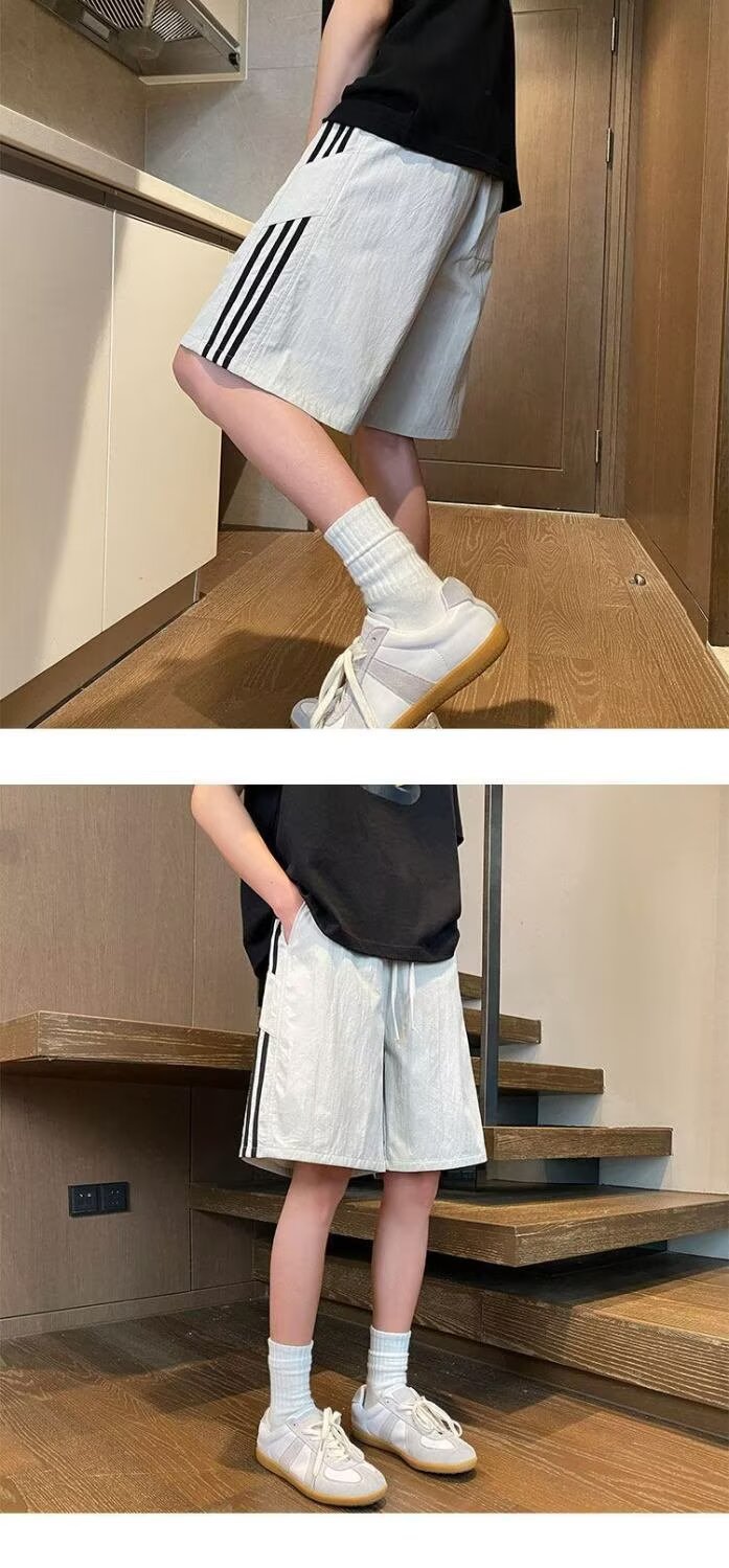 세 줄무늬 디자인 속건성 스포츠 캐주얼 반바지 남성 바지 여름 신작 루즈한 5부 바지 아메리칸 스웨트팬츠스토어 가기
