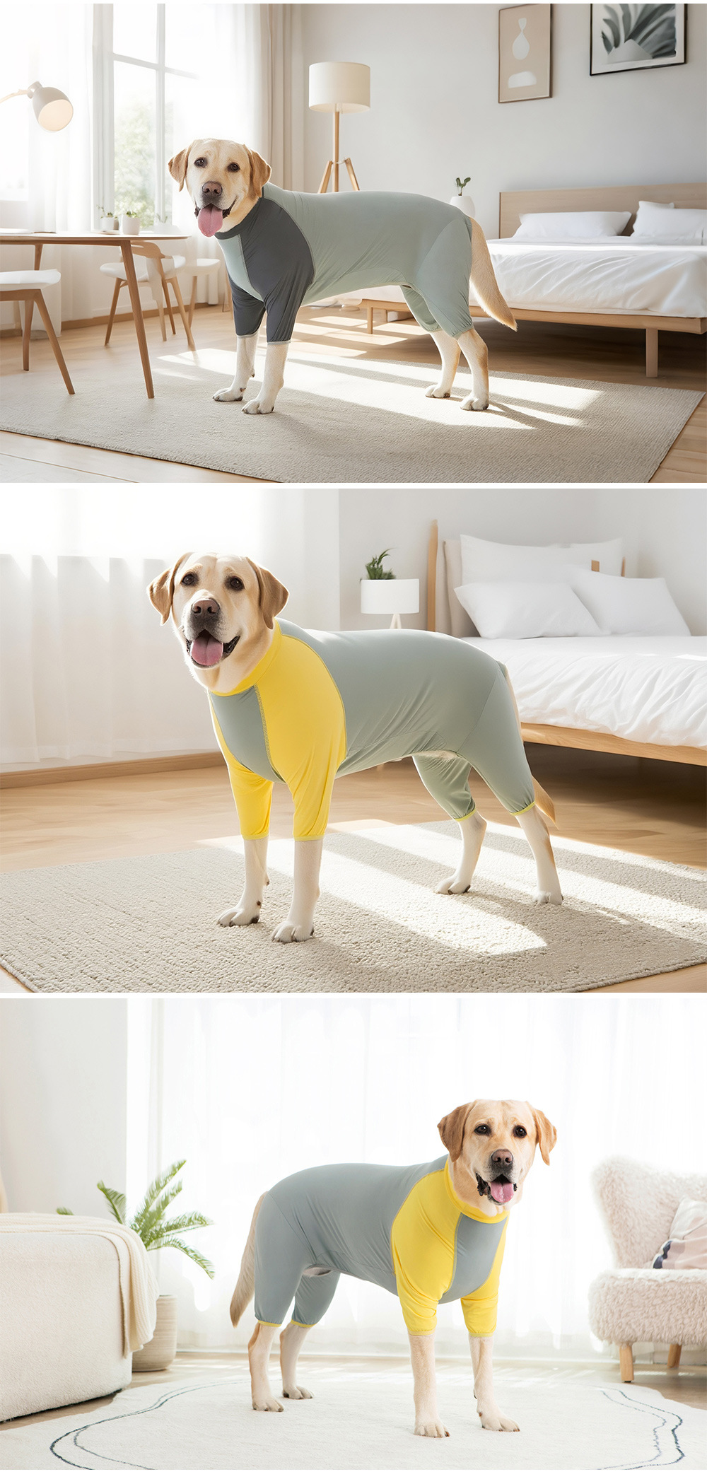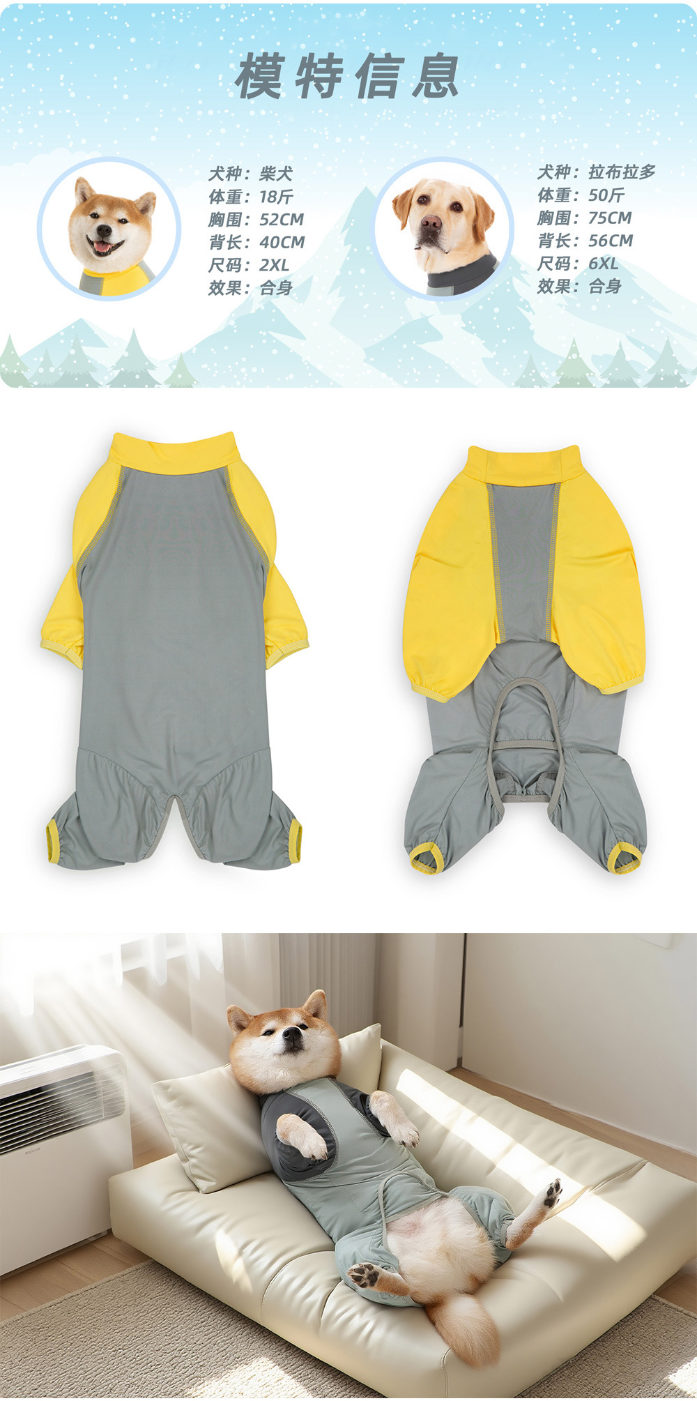 아마존 크로스보더 중대형견 봄, 여름, 가을 배 커버 배색 아이스 실크 속건성 자외선 차단제 쿨링 의류 개옷