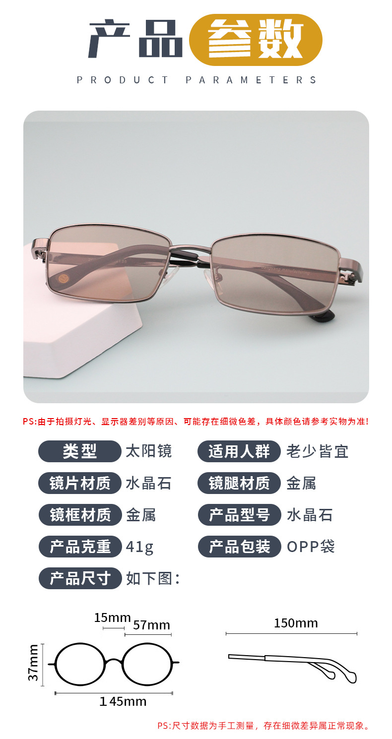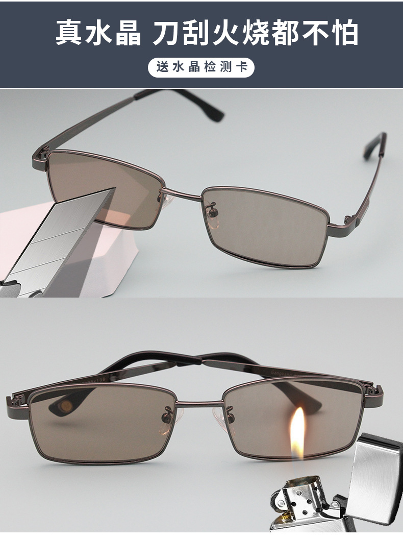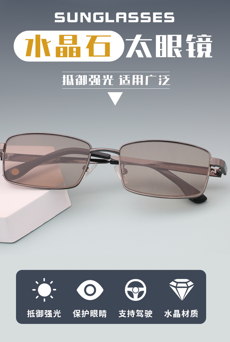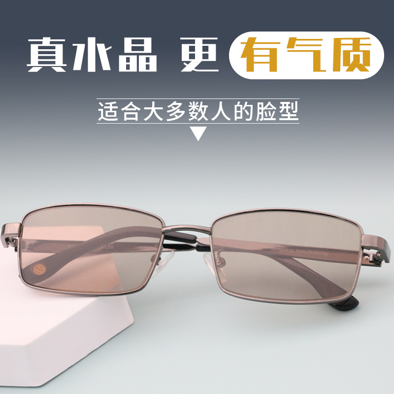 제조업체 무료 배송 남성용 선글라스 크리스탈 스톤 렌즈 풀 프레임 선글라스 중년 및 노인 눈 보호 선글라스
