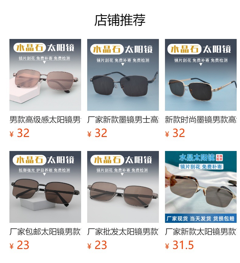 제조업체 무료 배송 남성용 선글라스 크리스탈 스톤 렌즈 풀 프레임 선글라스 중년 및 노인 눈 보호 선글라스스토어 가기