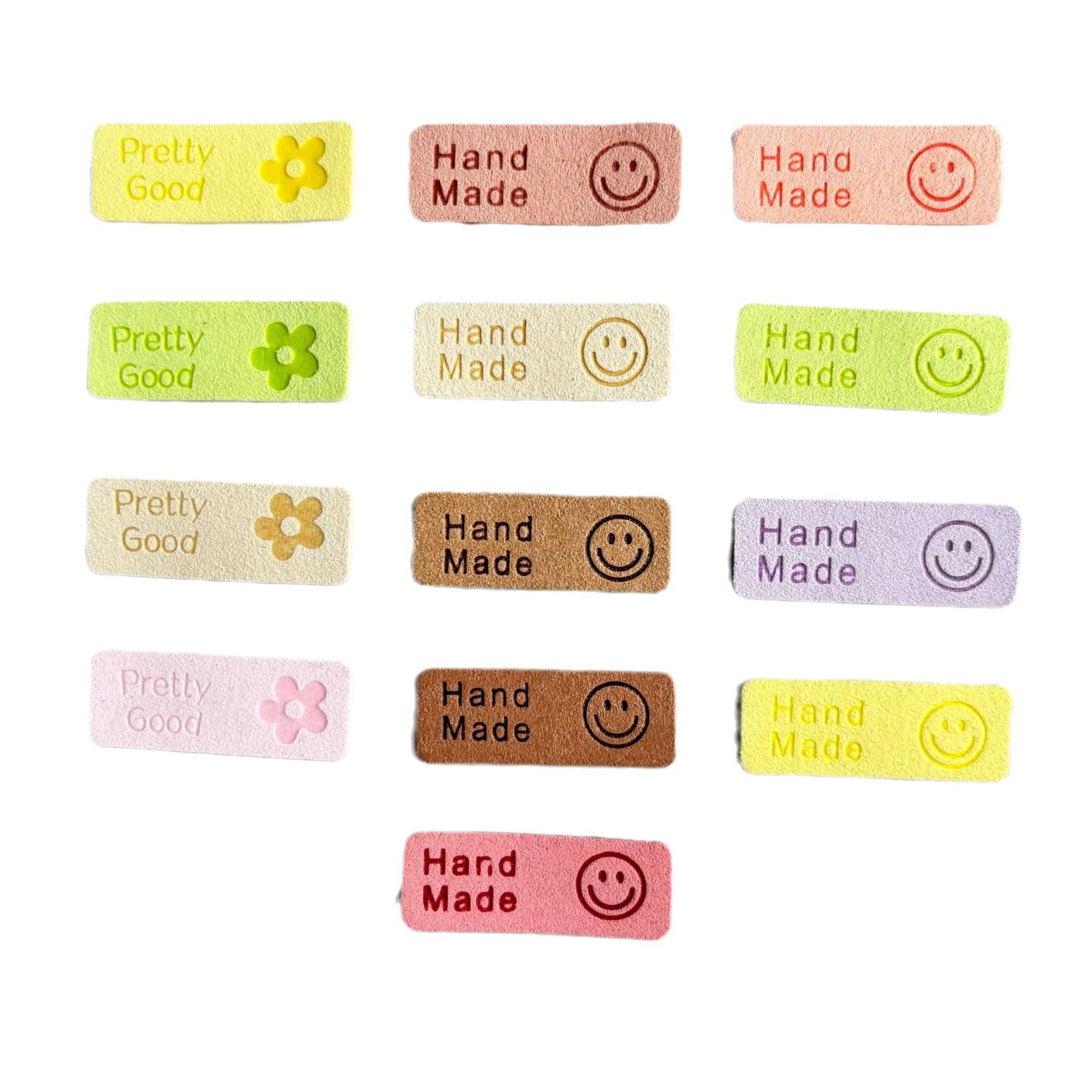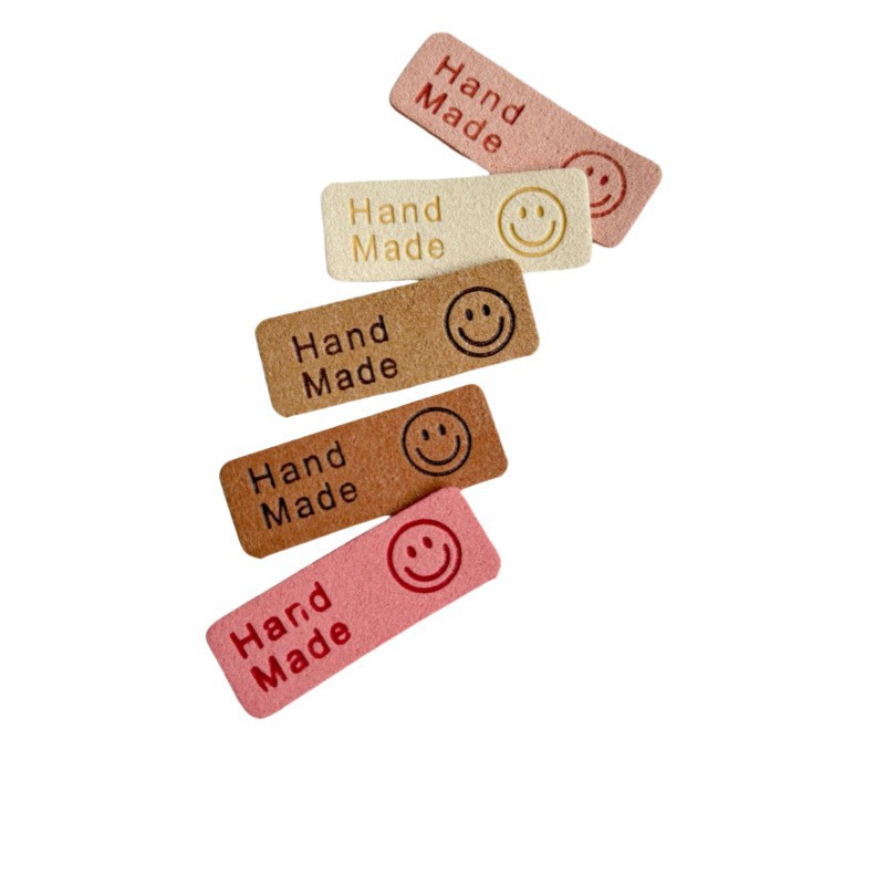 스마일리 슈퍼파이버 가죽 라벨 의류 액세서리 두꺼운 스타일 패션 핸드메이드 스마일리 기성품 모자 스카프 얇은 스타일