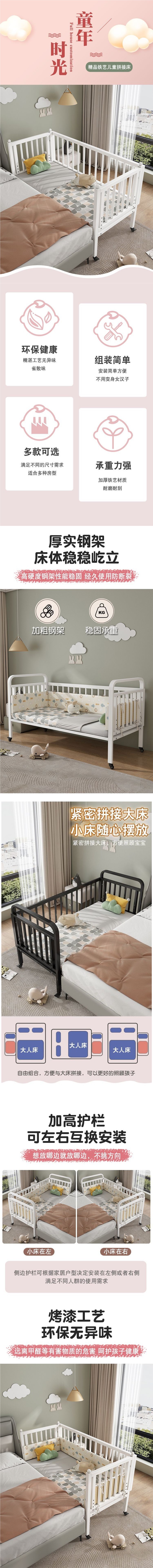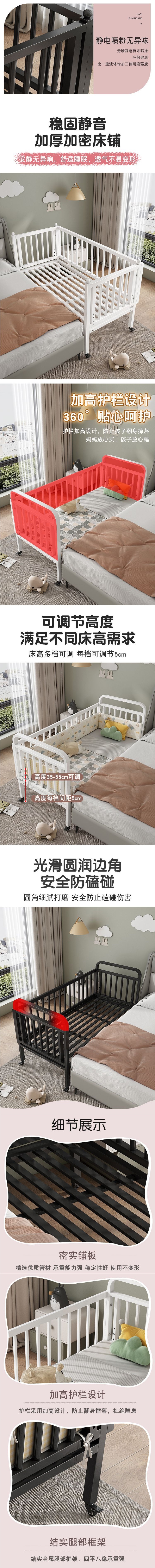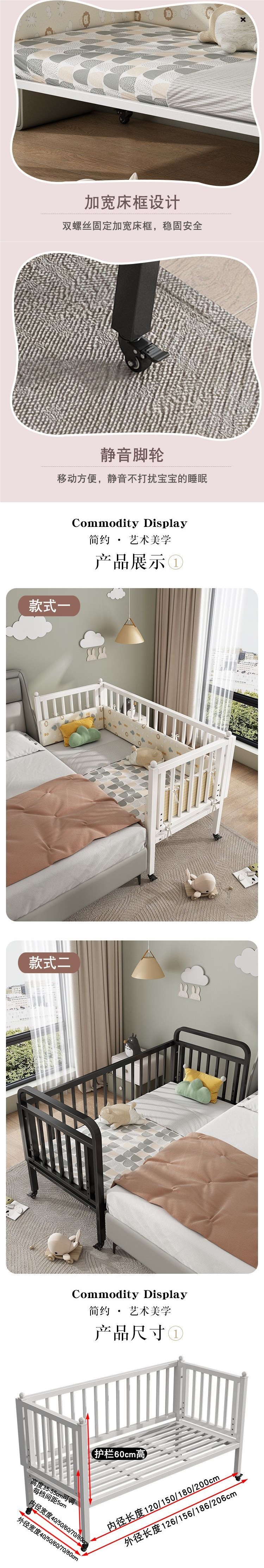 단철 어린이 침대 접합 침대 이동식 유아용 침대 유아용 침대 범용 휠이 있는 강철 프레임 싱글 침대 접합 침대