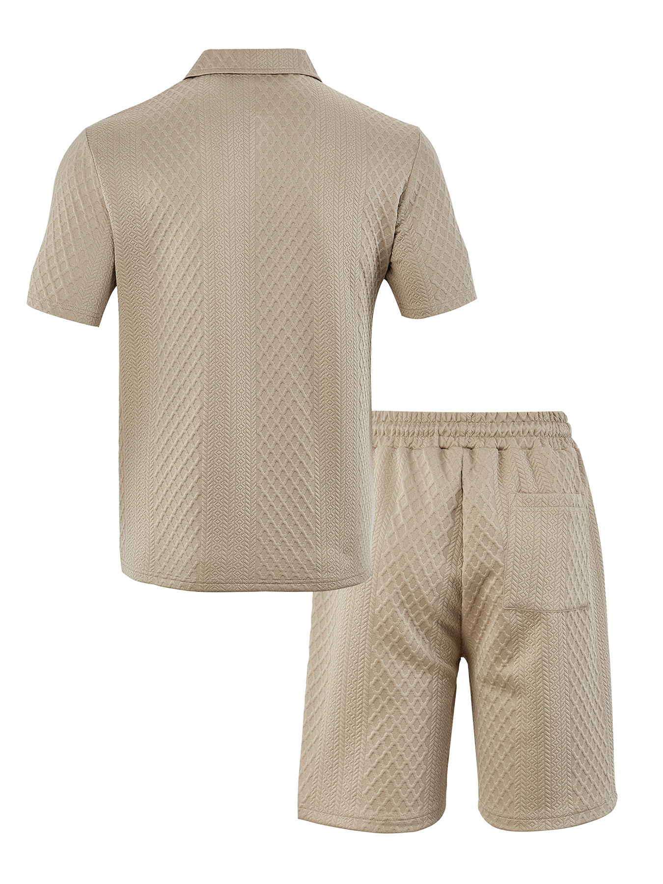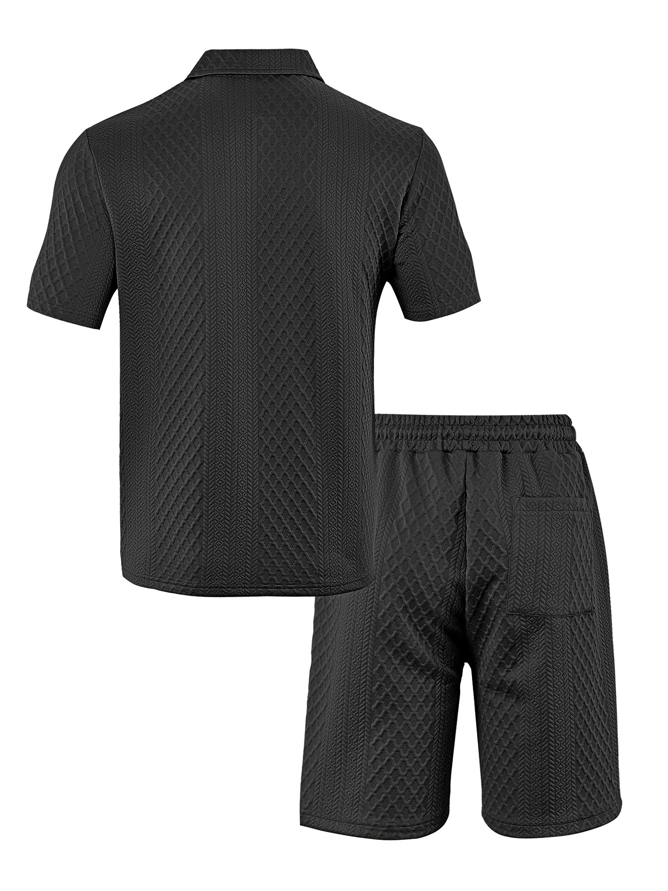 아마존 베스트셀러 남성 캐주얼 정장 자카드 폴로 셔츠 반바지 투피스 세트 크로스보더 남성복 TK 신규 도매