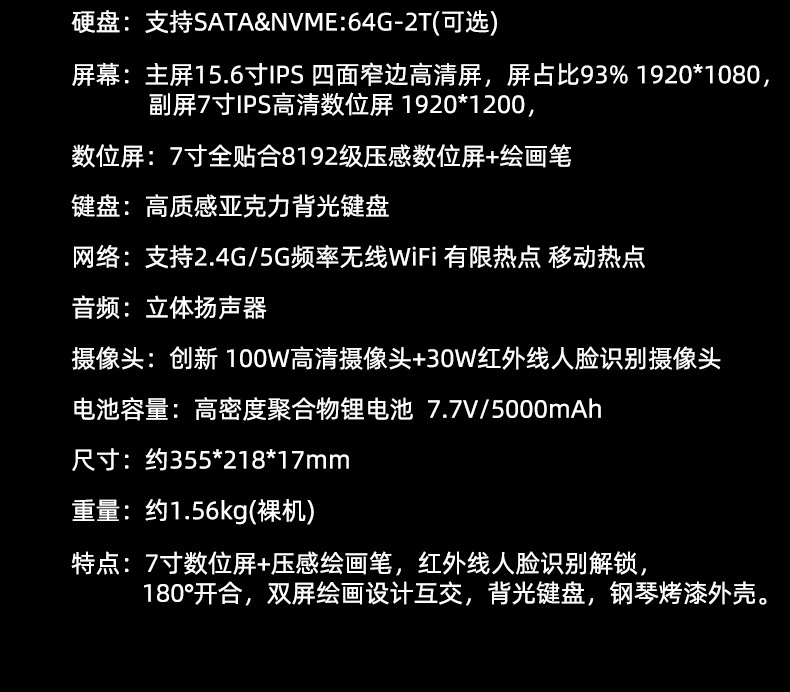 제조업체 게임 사무실 15.6inch + 7inch 디지털 스크린 아티스트 프로 노트북 그림 책 공장 도매스토어 가기