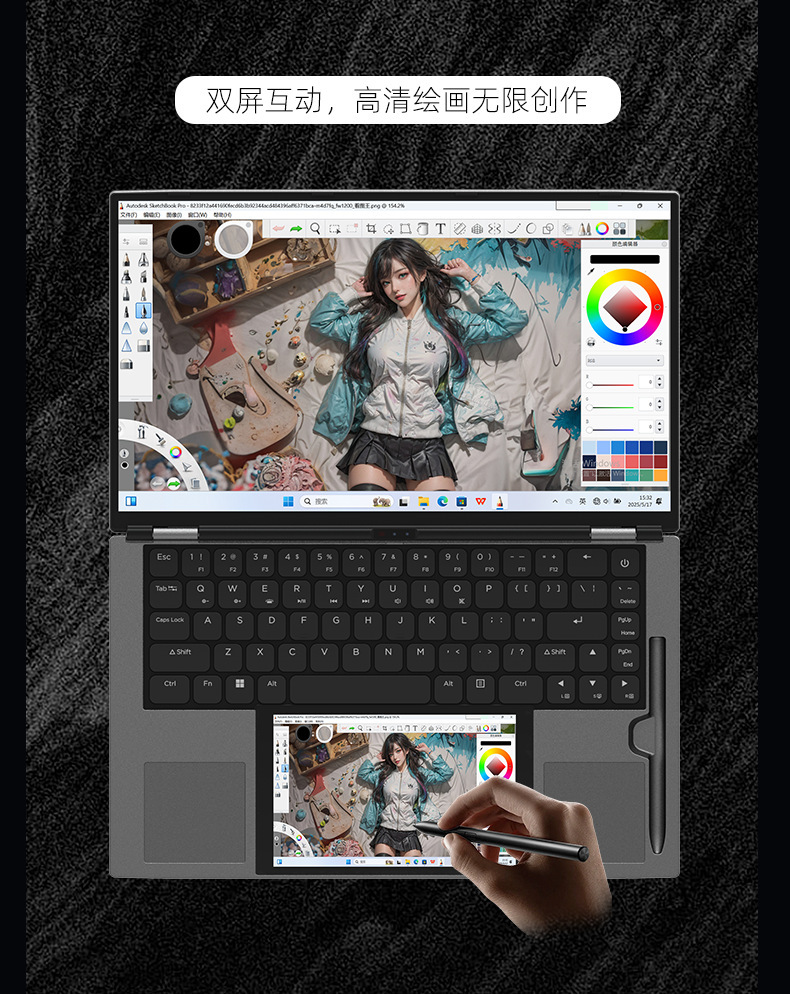제조업체 게임 사무실 15.6inch + 7inch 디지털 스크린 아티스트 프로 노트북 그림 책 공장 도매