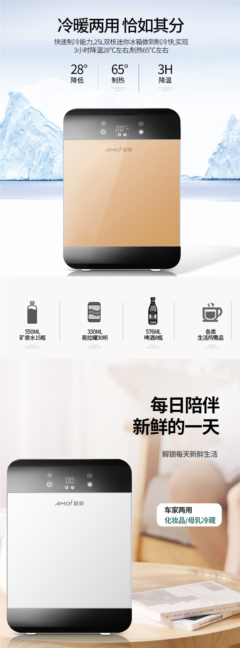 • 듀얼 코어 25L 블랙 골드 유리 모델(자동차 및 가정용 겸용)