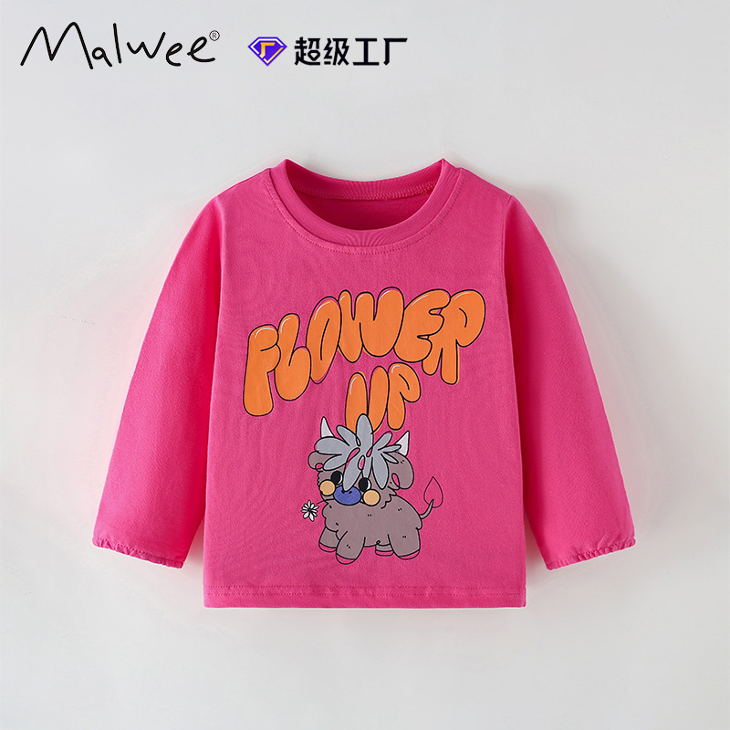 국경 간 malwee 여아 티셔츠 가을, 겨울 라운드 넥 셔츠 유럽과 미국의 어린이 긴팔 바닥 트렌디 캐주얼 아동상의스토어 가기