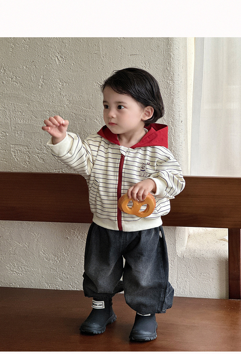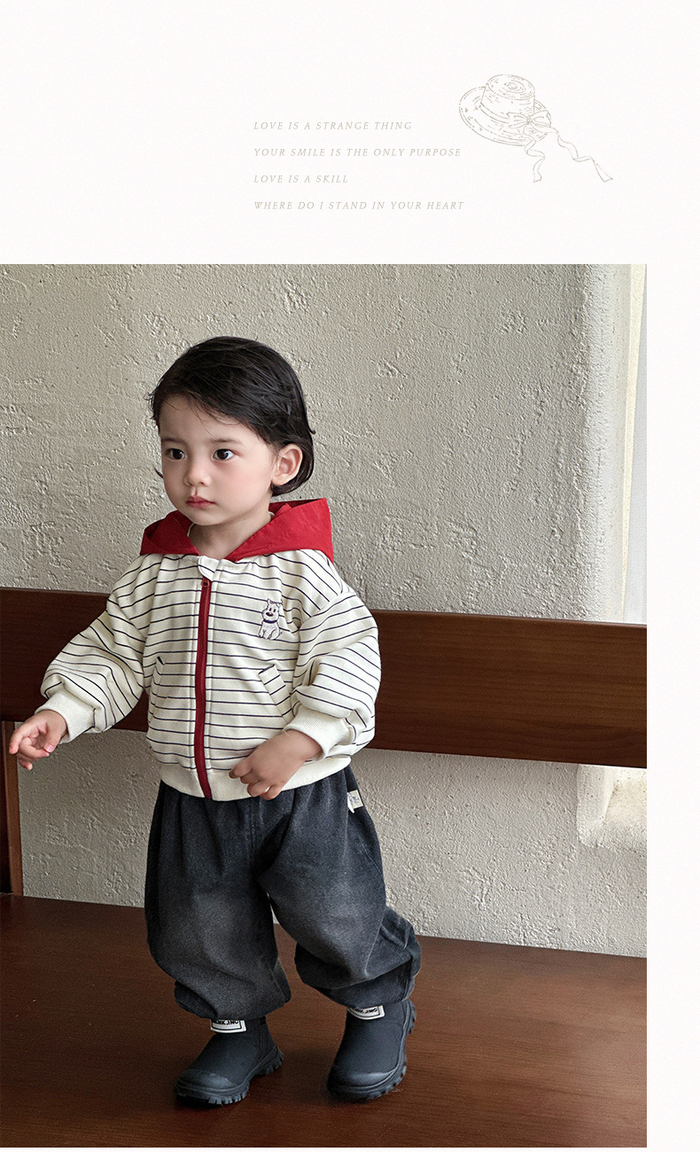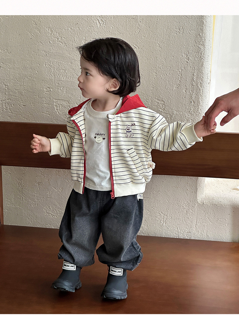 2026 신상품 가을 남아 자켓, 청바지 세트, 봄 가을 스타일 남아 외출복 3종 세트스토어 가기
