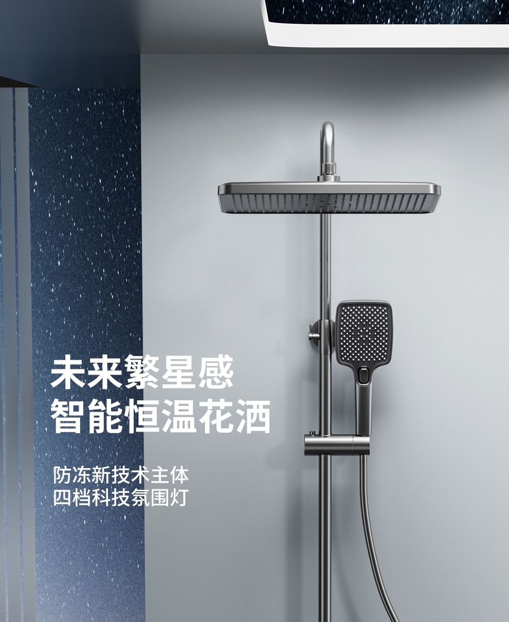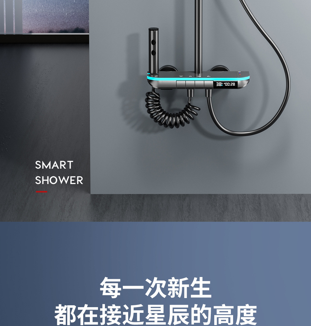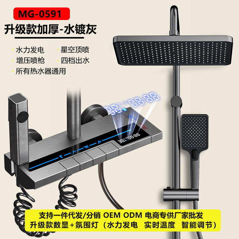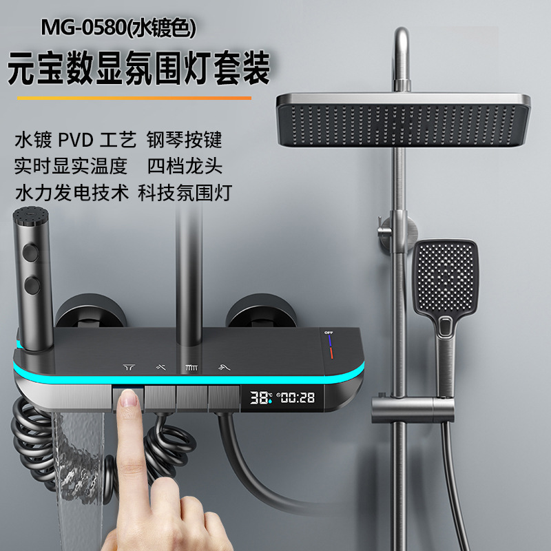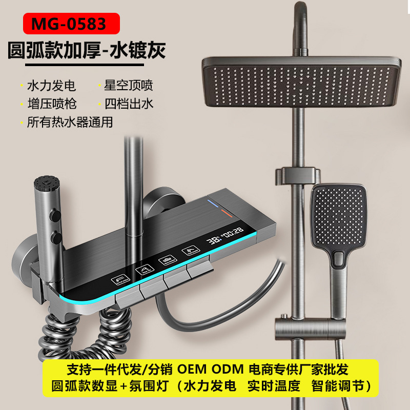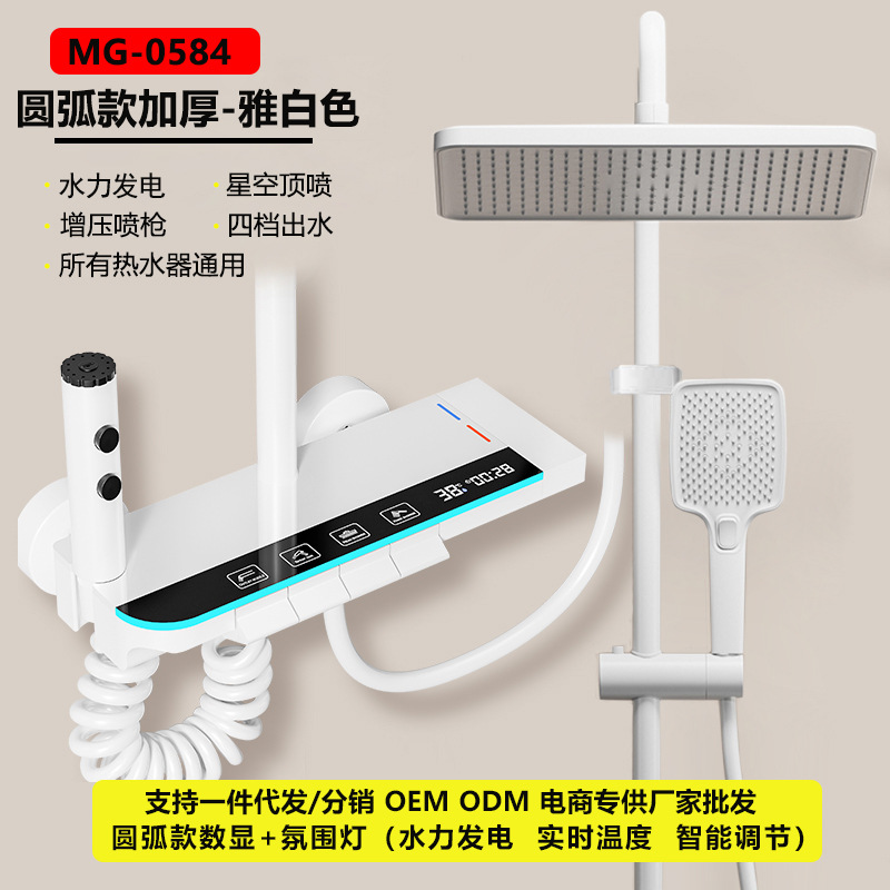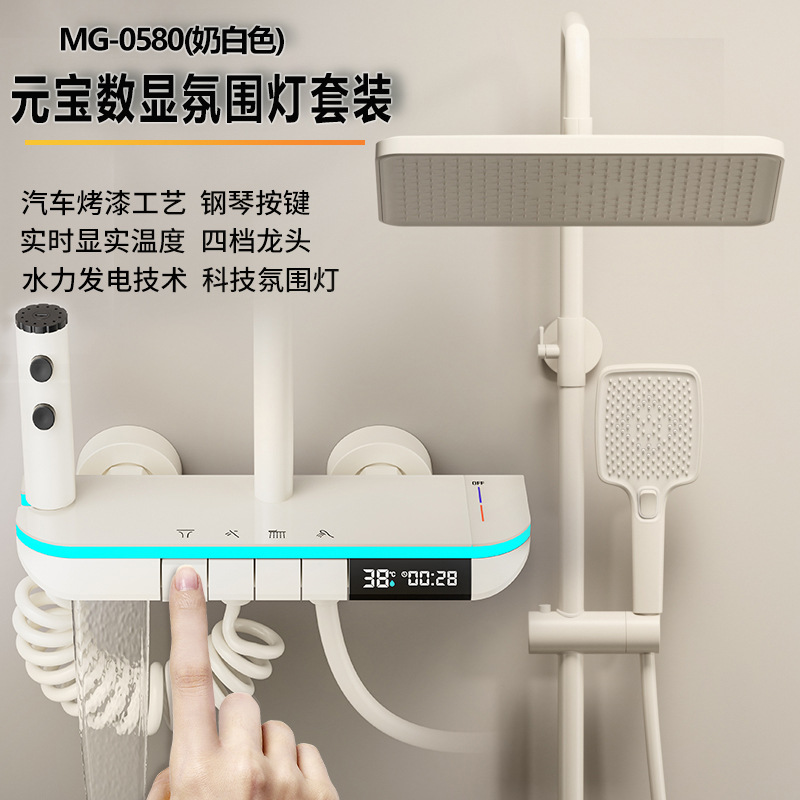 맞춤형 건조 샤워기 세트 디지털 디스플레이 분위기 조명 밀크 화이트 욕실 가정용 고압 샤워기