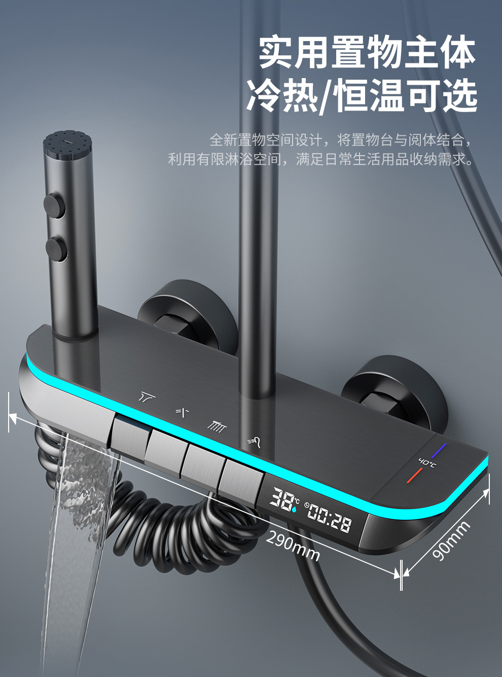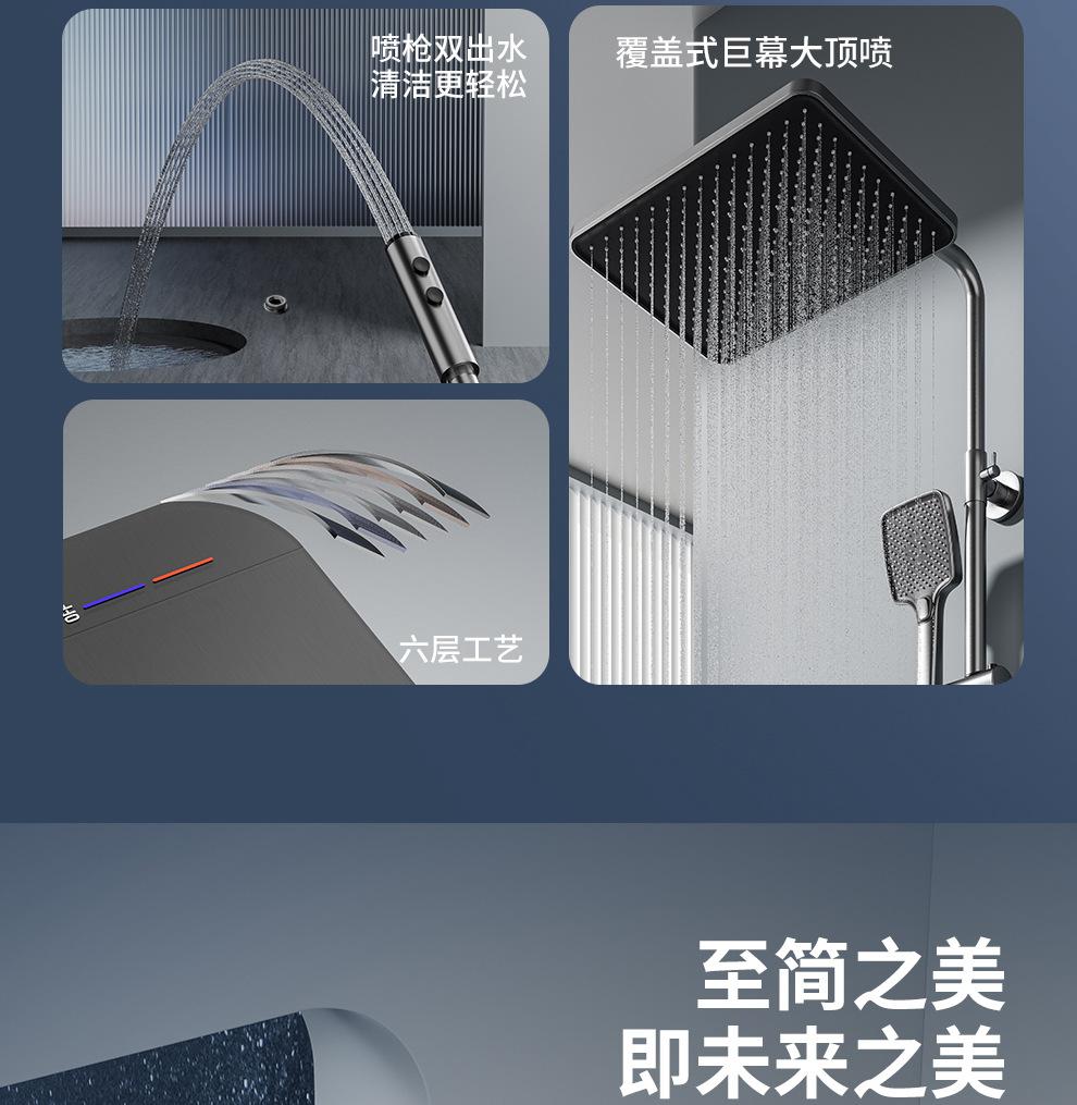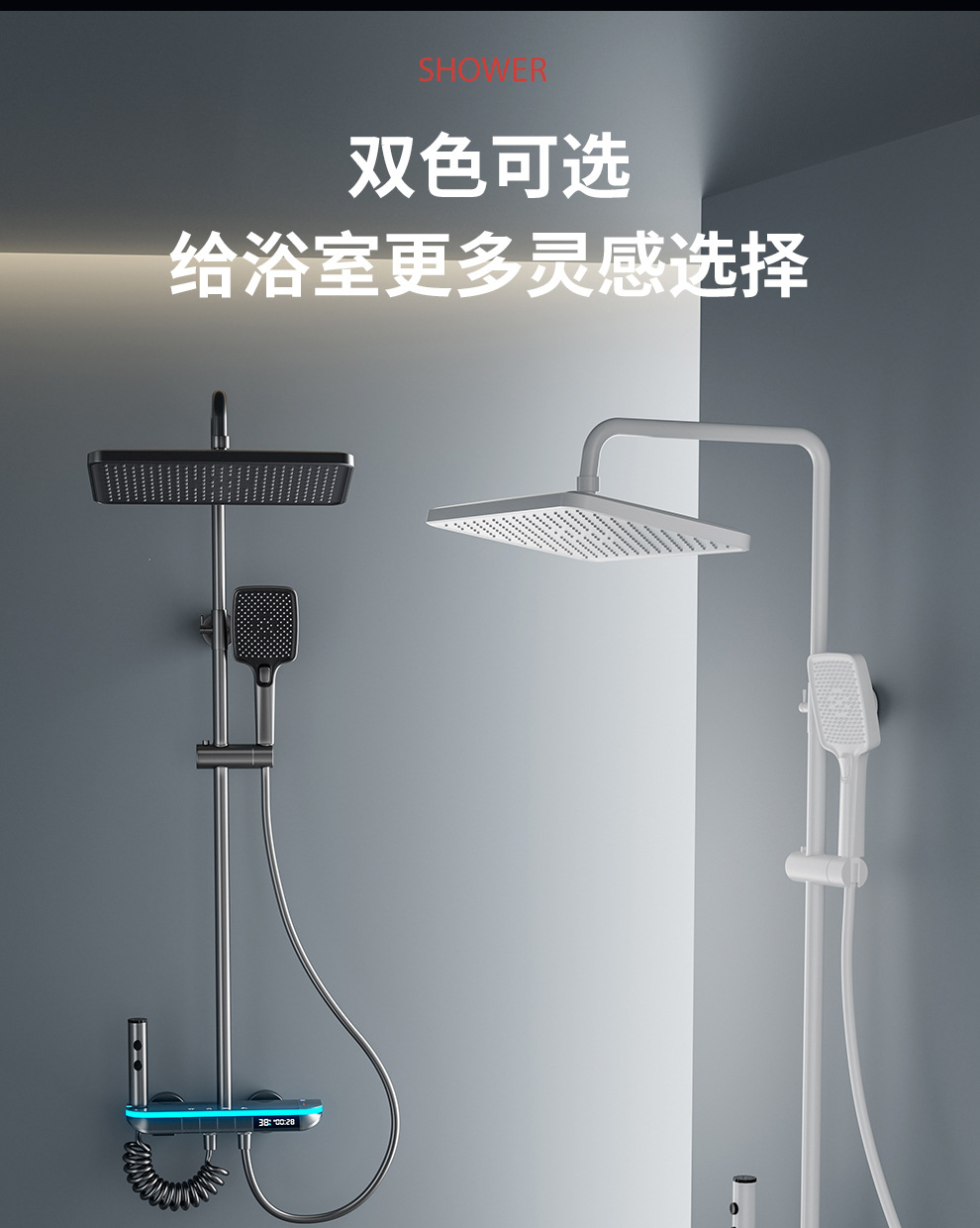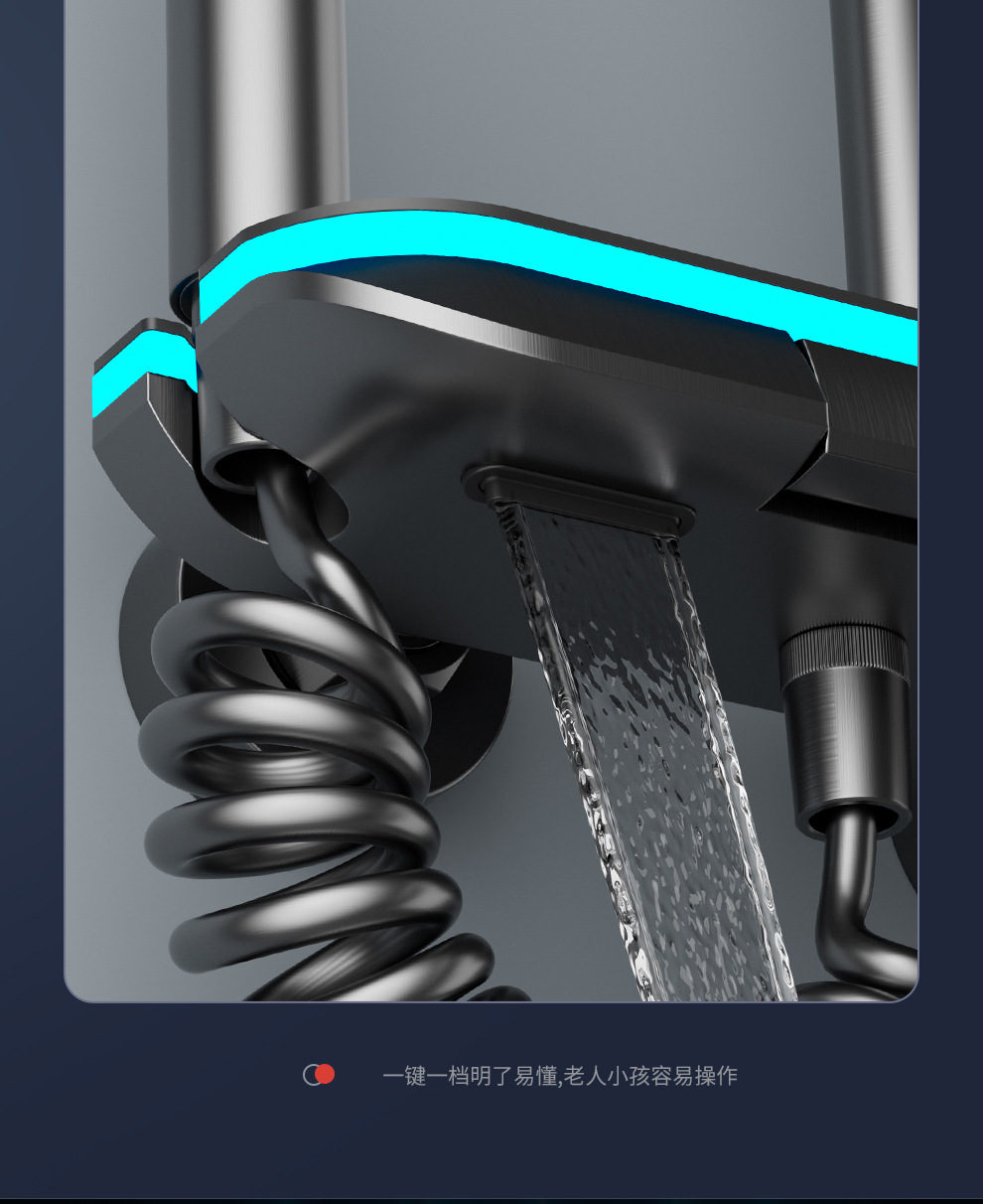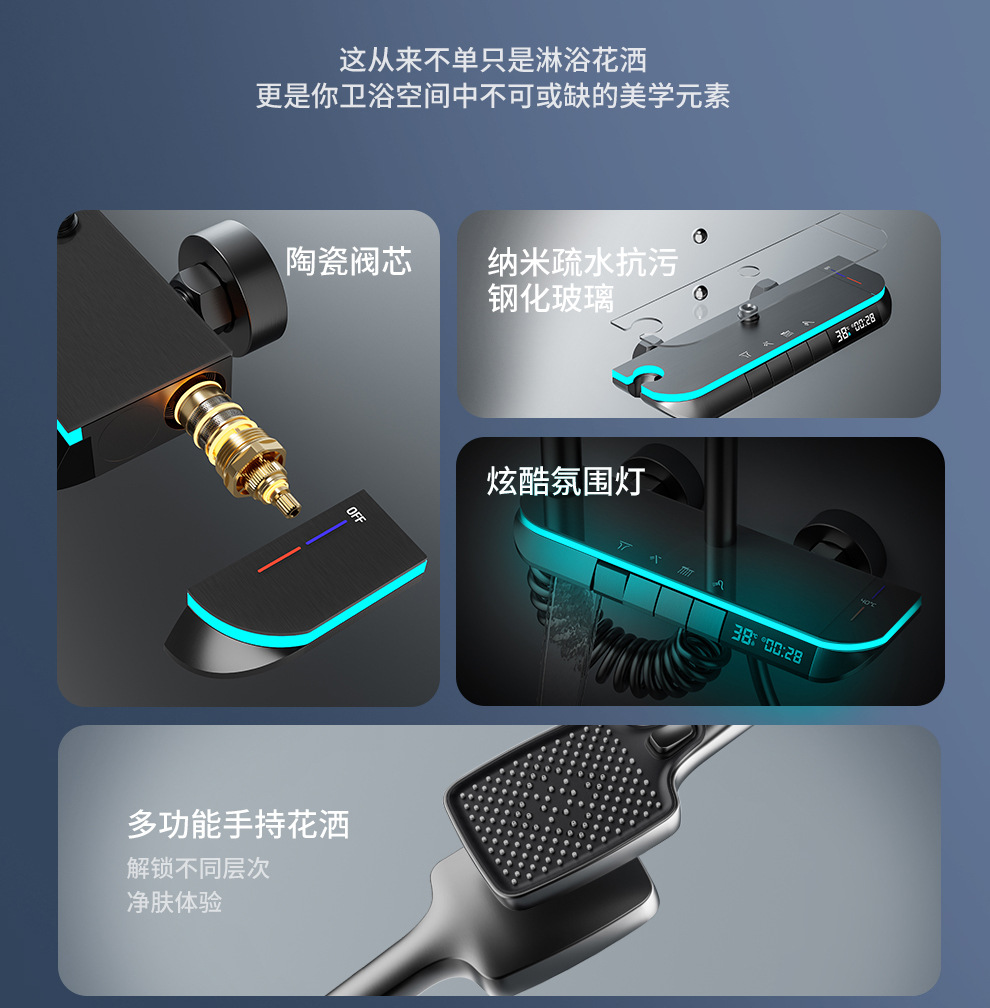 맞춤형 건조 샤워기 세트 디지털 디스플레이 분위기 조명 밀크 화이트 욕실 가정용 고압 샤워기