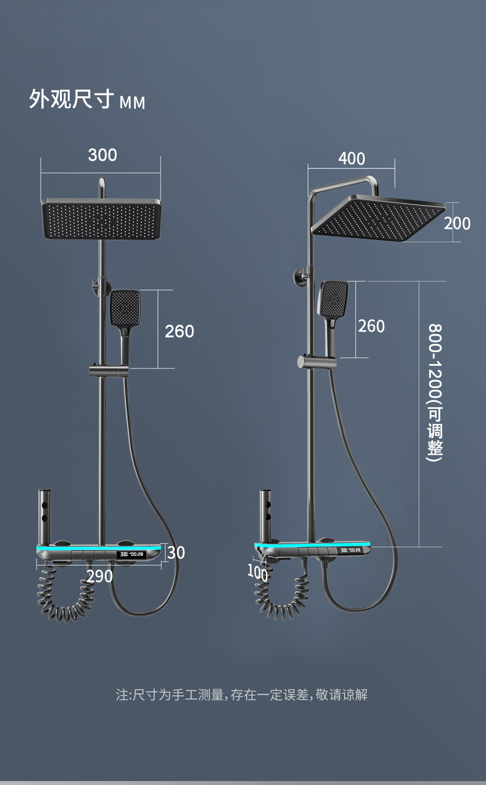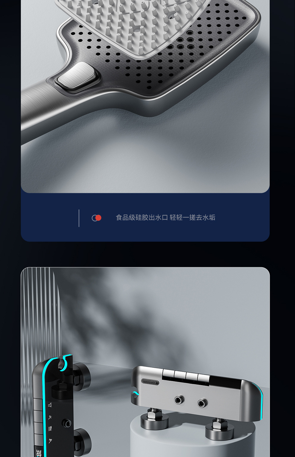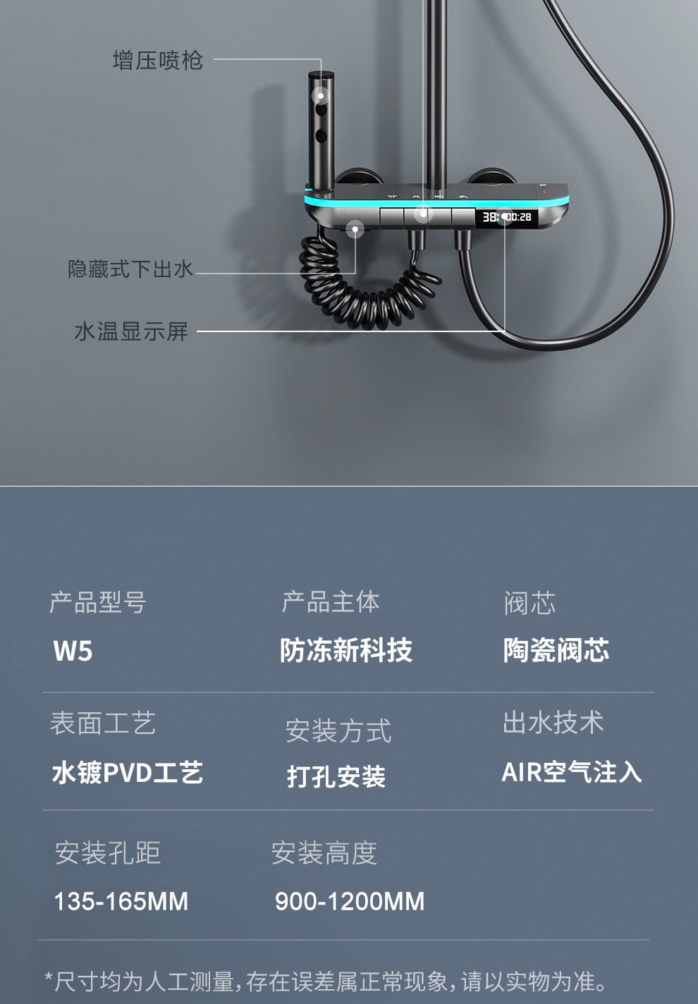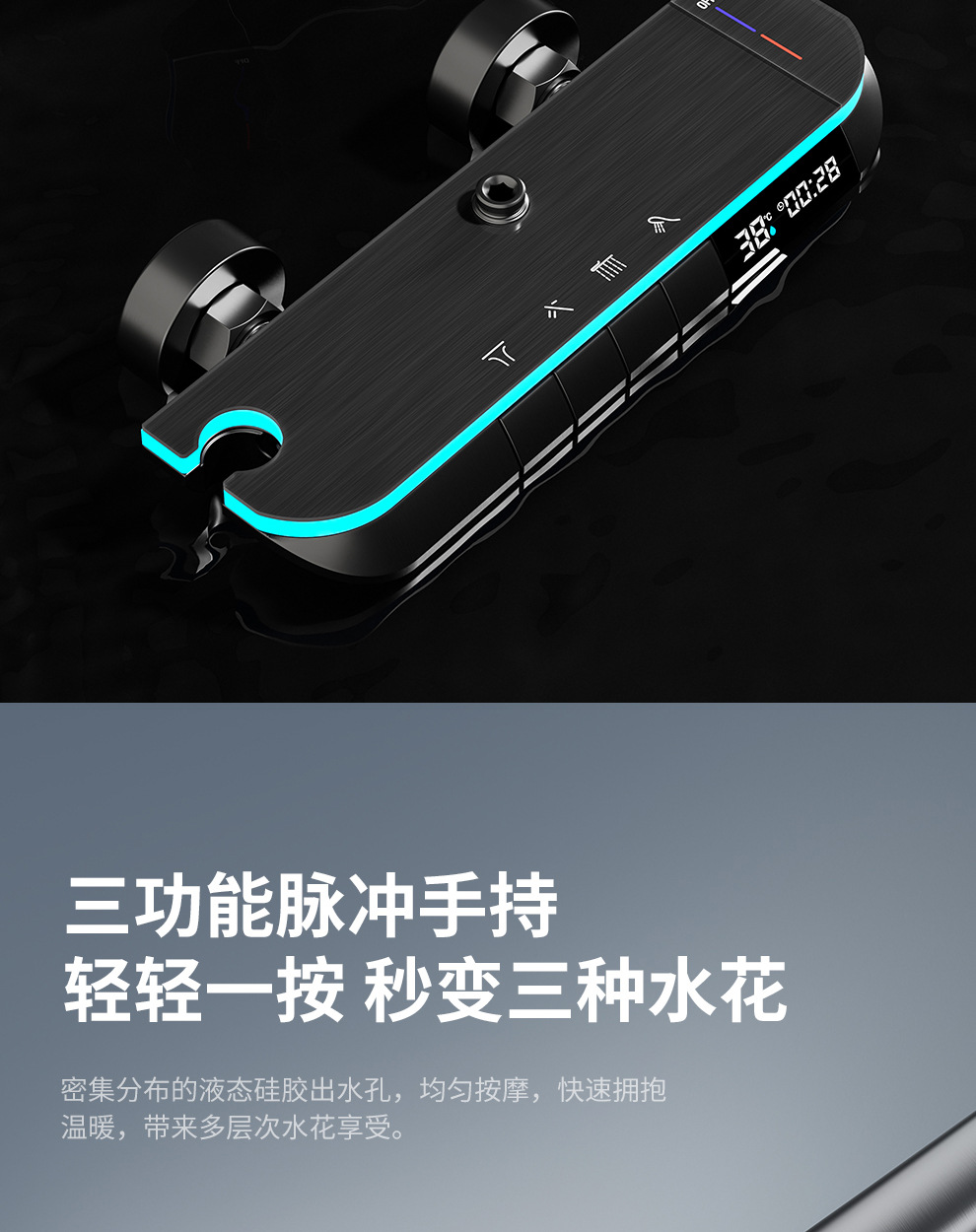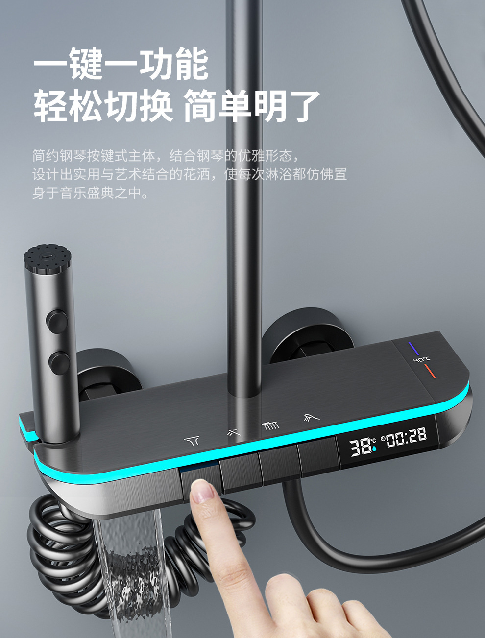 맞춤형 건조 샤워기 세트 디지털 디스플레이 분위기 조명 밀크 화이트 욕실 가정용 고압 샤워기