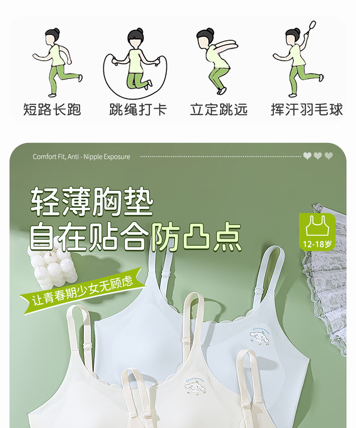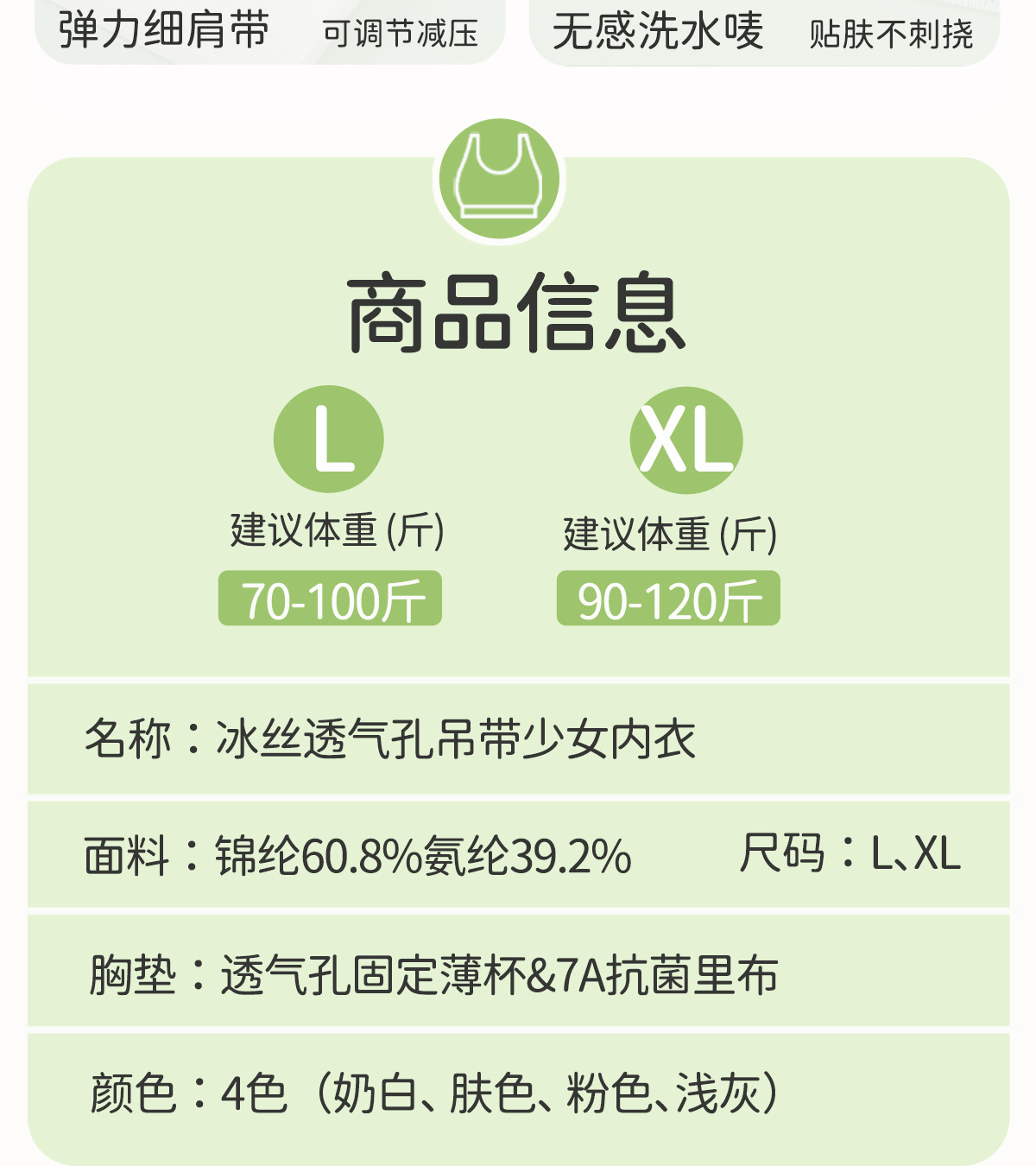 스포츠 서스펜더 여아 속옷 아이스 실크 심리스 와이어 프리 편안하고 통기성이 좋은 조끼 스타일 중학생 및 고등학생 브라스토어 가기