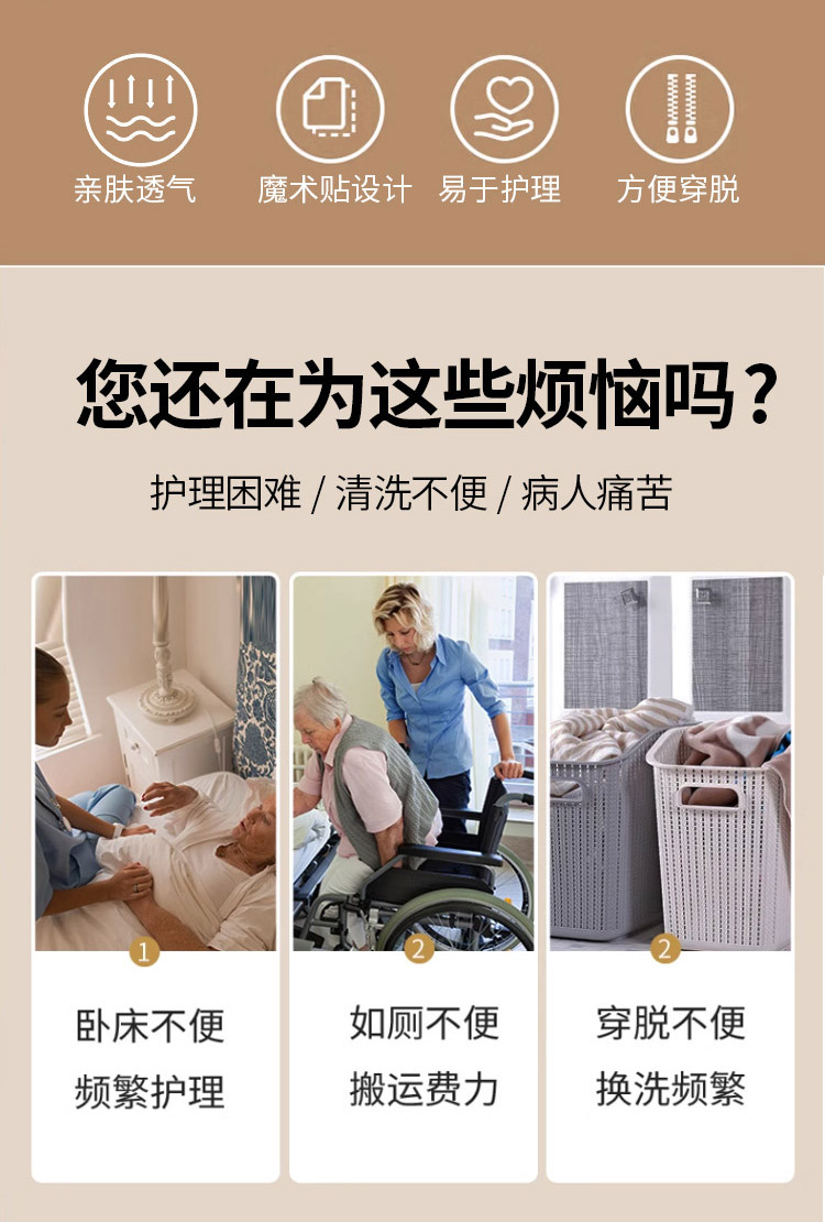 누워있는 환자, 요실금 환자, 골절 환자, 벨크로 사이드 오픈 반바지, 남녀공용 순면 삼각 팬티, 착탈이 용이함스토어 가기